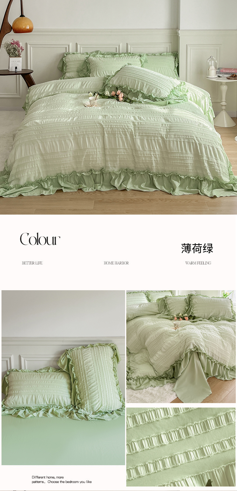 商品名称:顾里家纺 2024新款韩系大花边泡泡纱套件 薄荷绿
