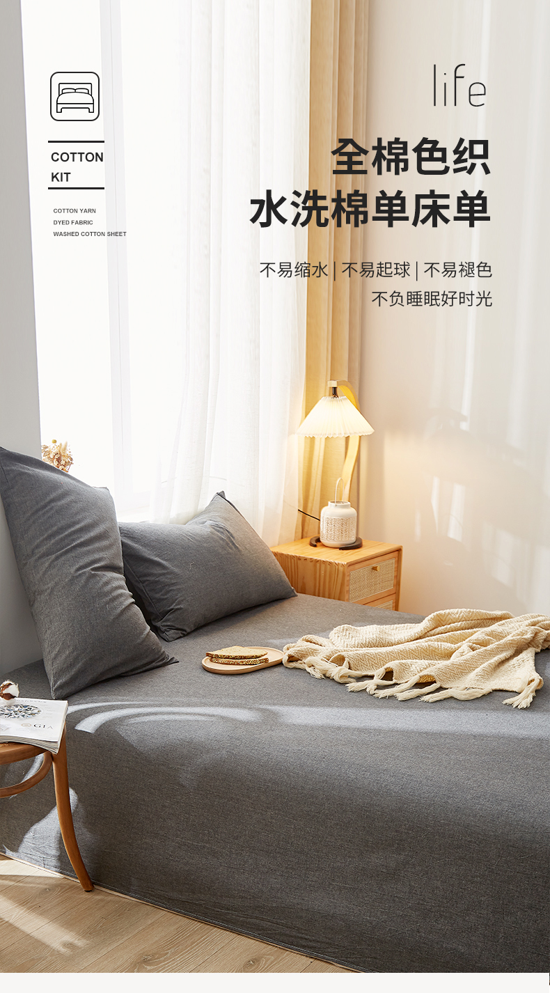 商品名称:暖阳 2025新款全棉水洗棉单床单 深邃灰