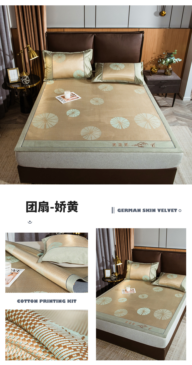 当前位置: 91家纺网 > 商品网购 > 床上用品 > 凉席 > 其他凉席 > 全季家居 2024新款加厚加密宽边刺绣提花冰藤凉席 扇叶-娇黄(床席款)