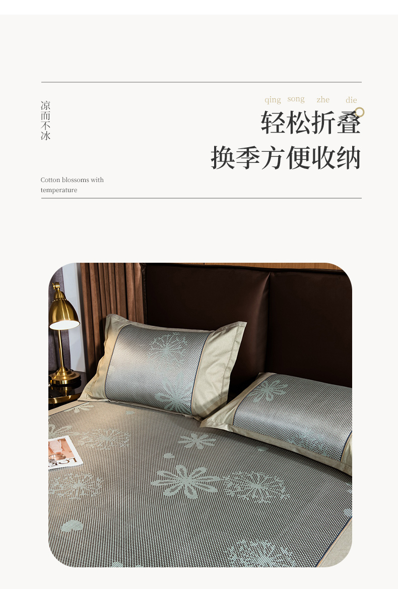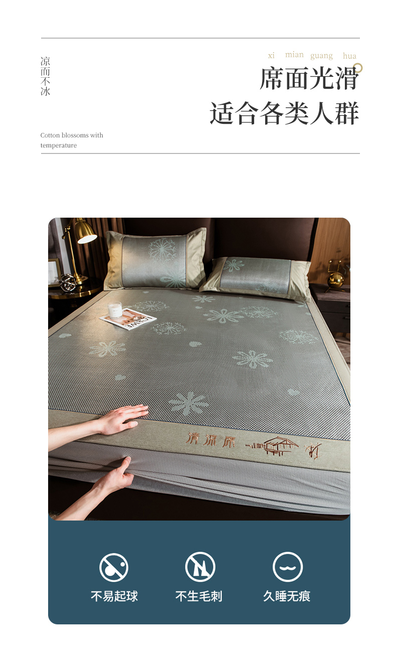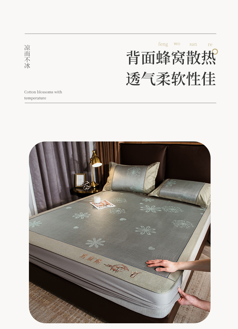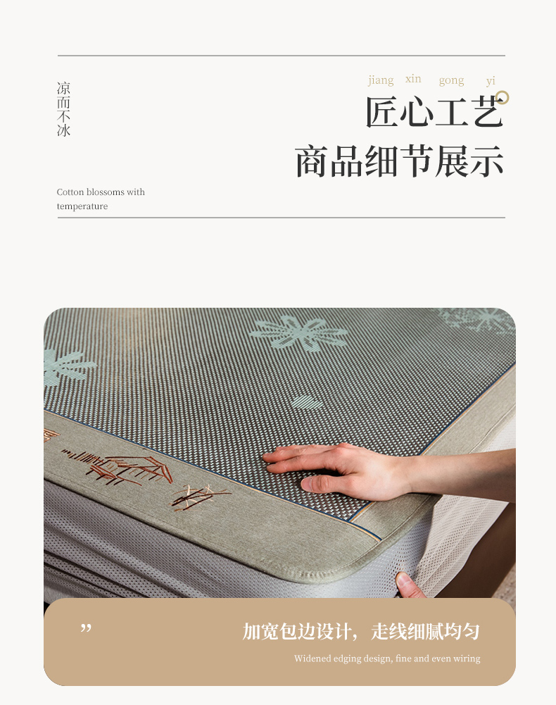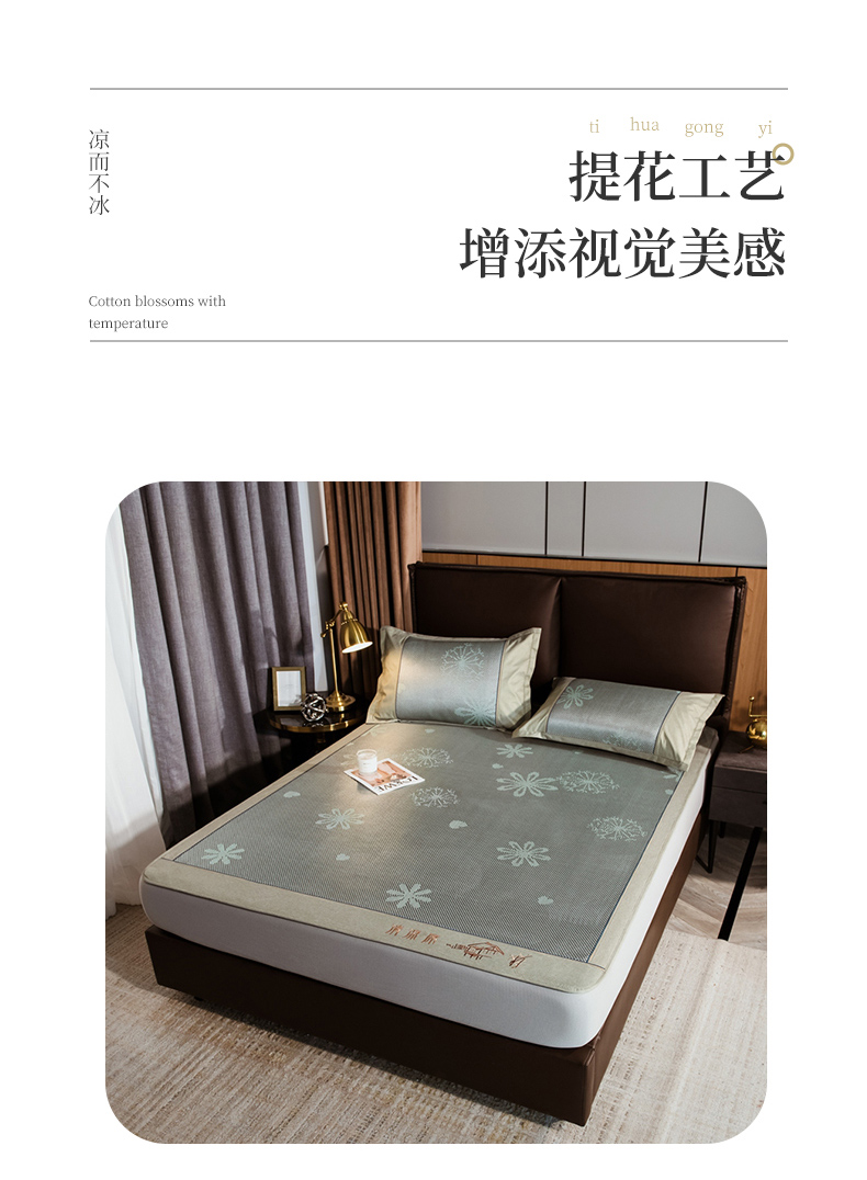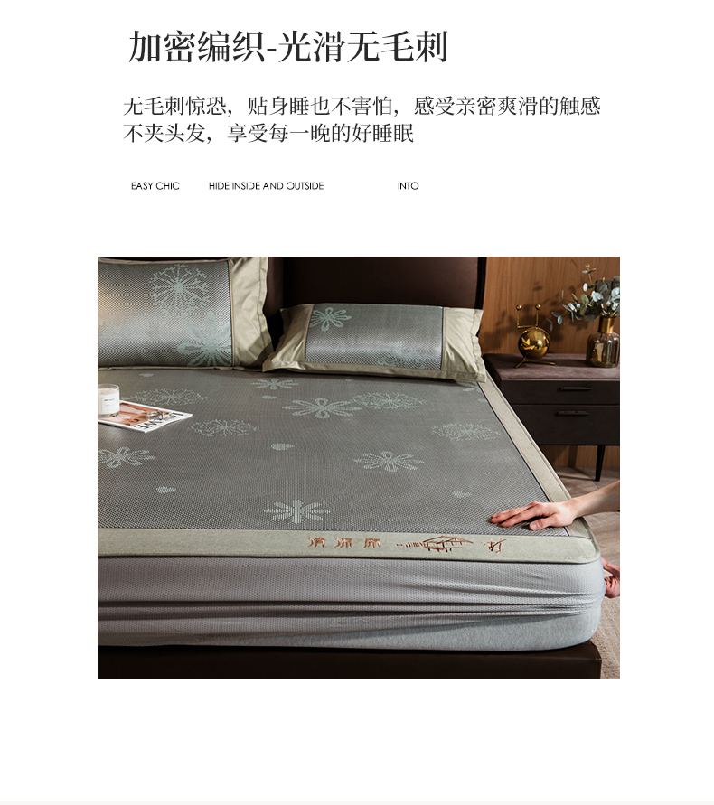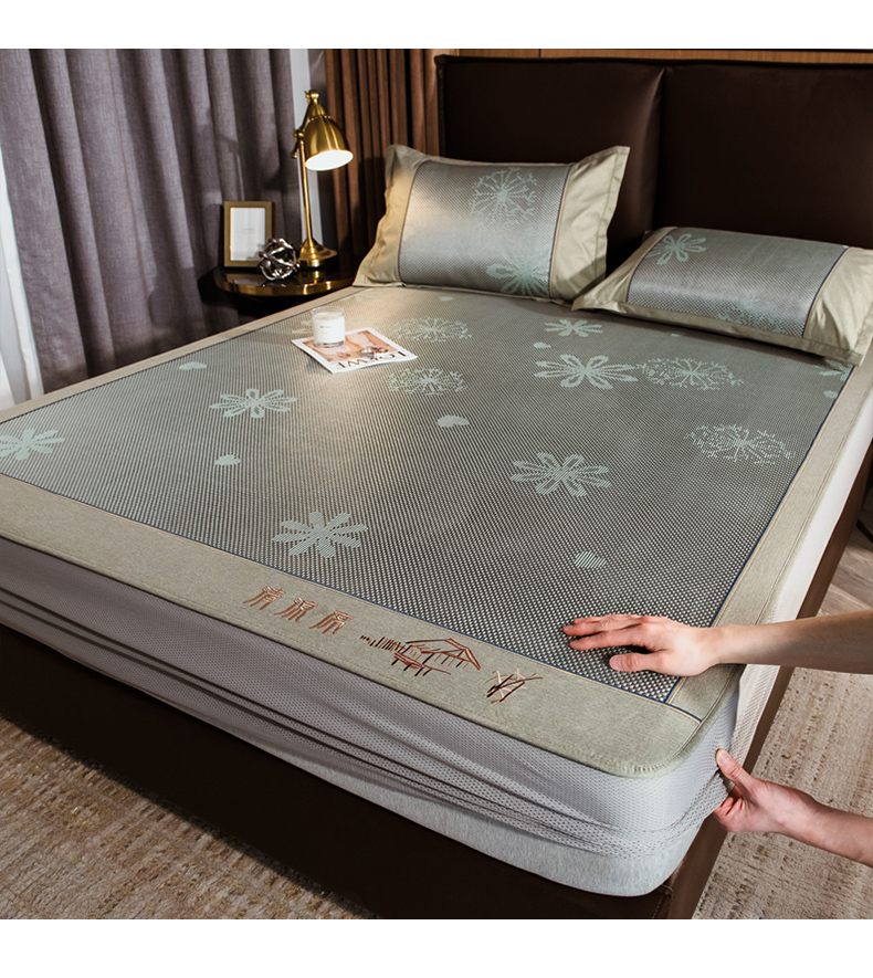 当前位置: 91家纺网 > 商品网购 > 床上用品 > 凉席 > 其他凉席 > 全季家居 2024新款加厚加密宽边刺绣提花冰藤凉席 飘雪-水绿(床笠款)
