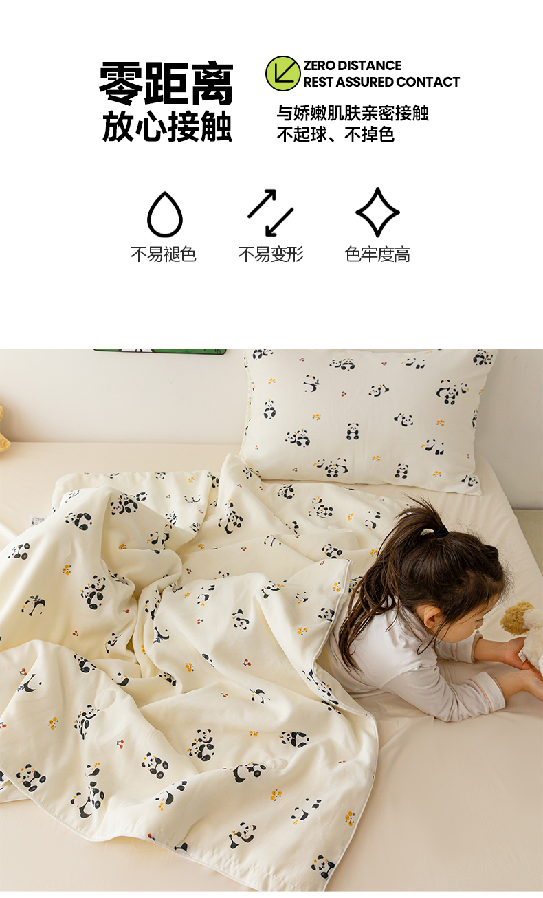 寐眠 2024新款双层纱大豆儿童夏被 熊猫世界