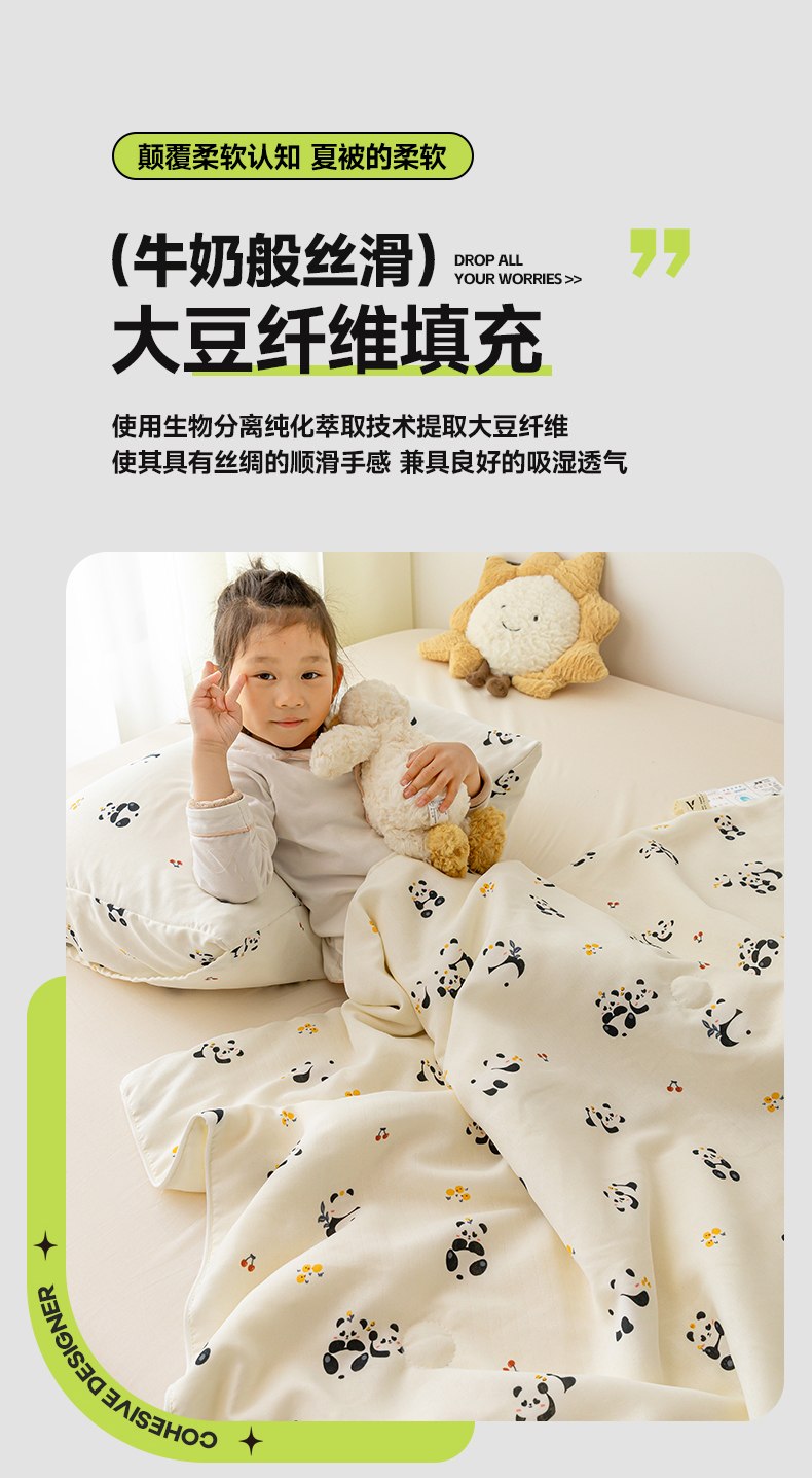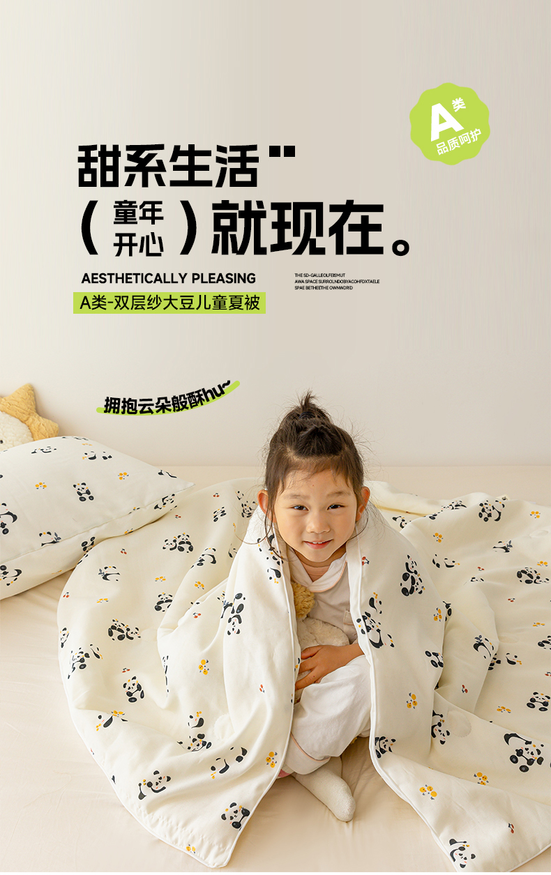 商品名称:寐眠 2024新款双层纱大豆儿童夏被 熊猫世界