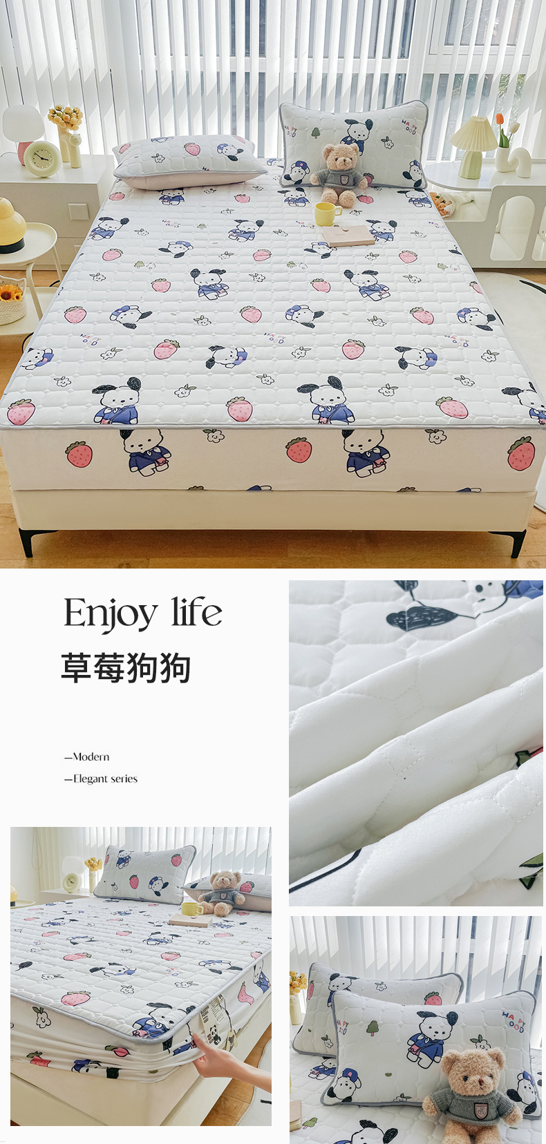 恒尚居 2024新款小清新印花水洗棉大豆夹棉床笠 草莓狗狗