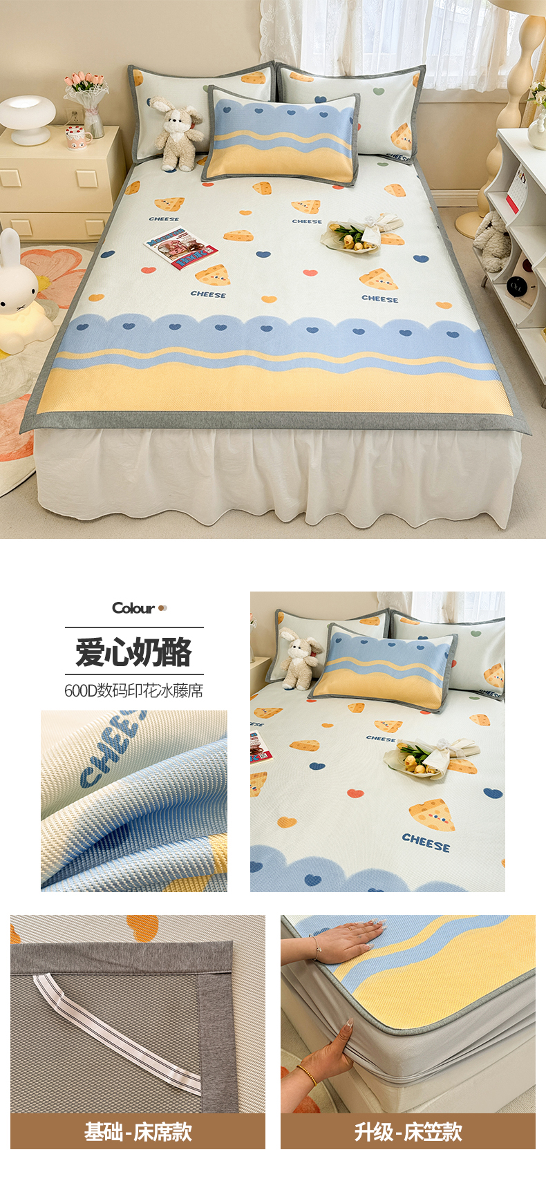 商品名称:懒猫家纺 2024新款600D数码印花冰藤凉席-床单款 爱心奶酪