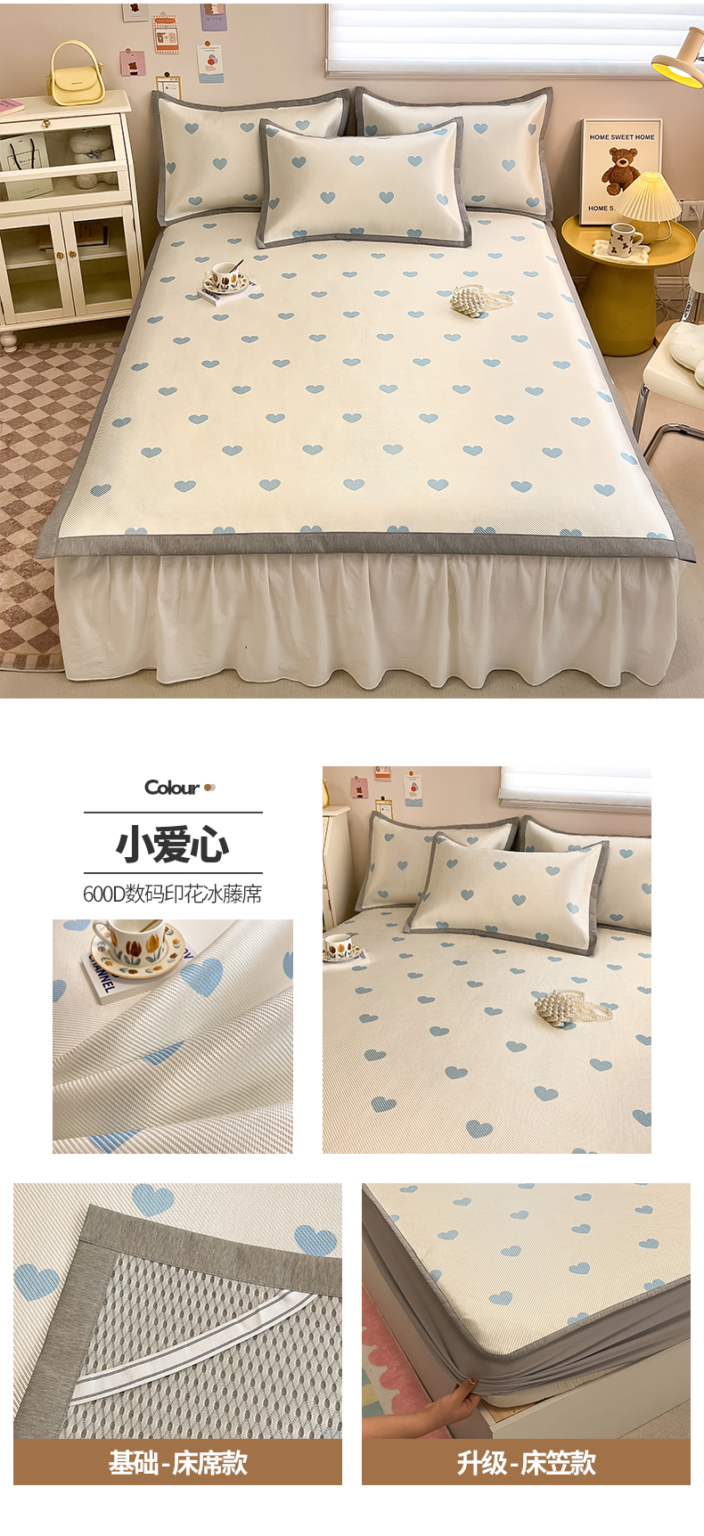 懒猫家纺 2024新款600D数码印花冰藤凉席-床单款 小爱心