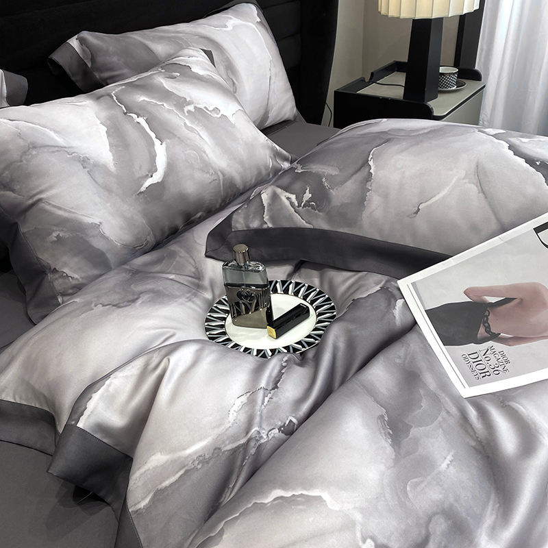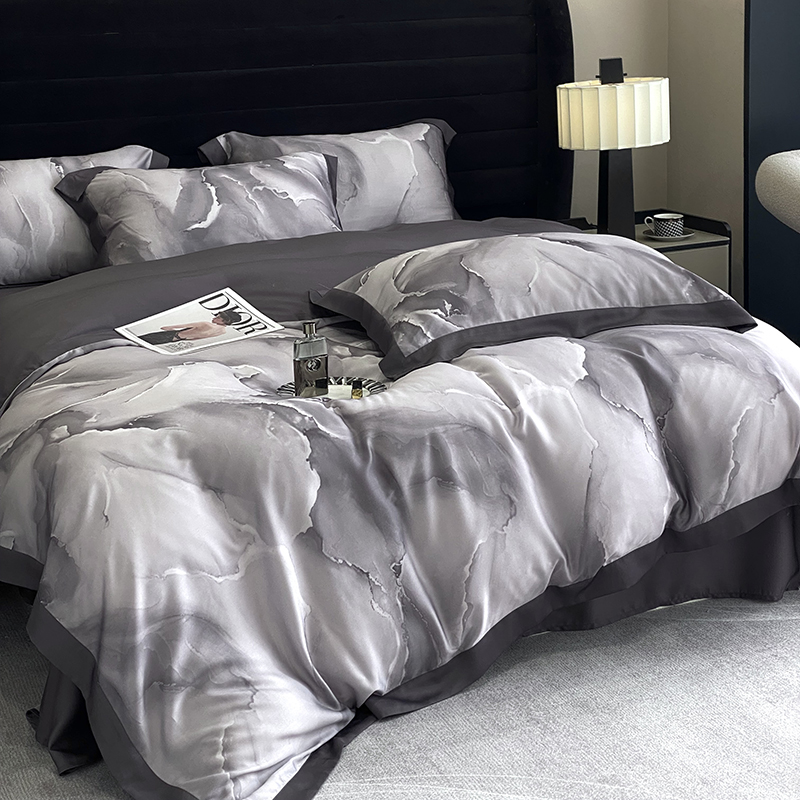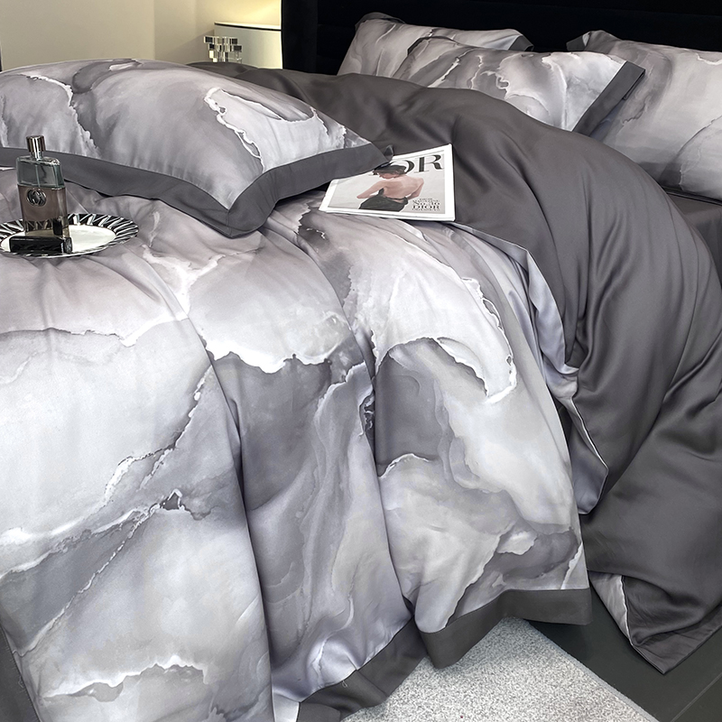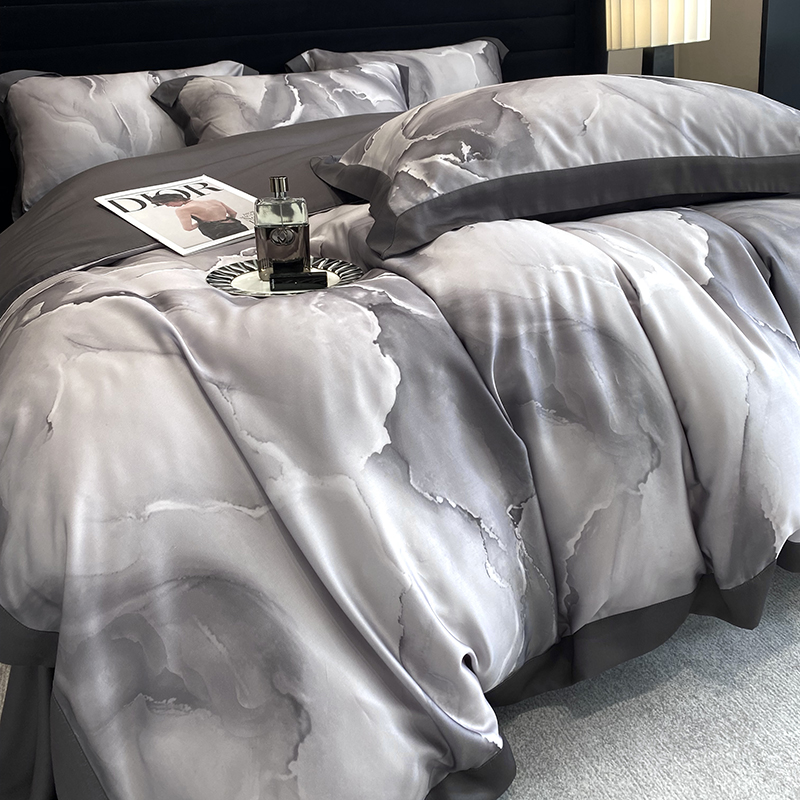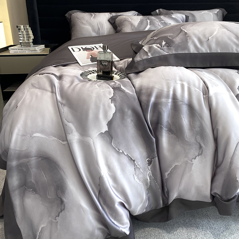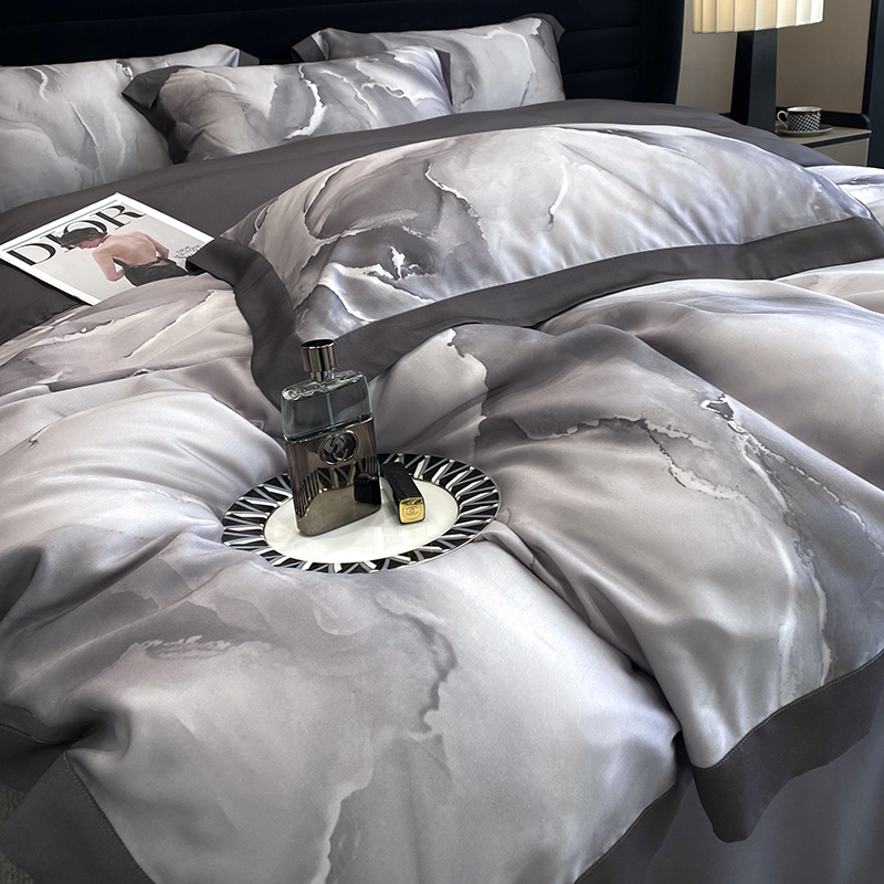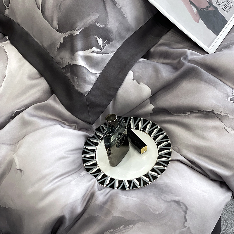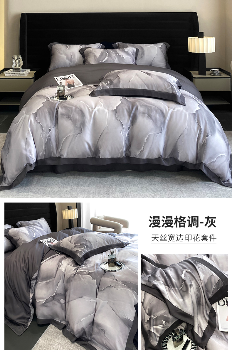 商品名称:优悦生活馆 2024新款轻奢天丝印花宽边拼角四件套系列-漫漫格调 漫漫格调-灰