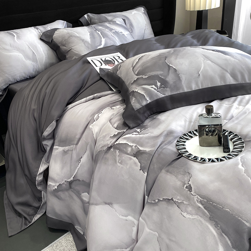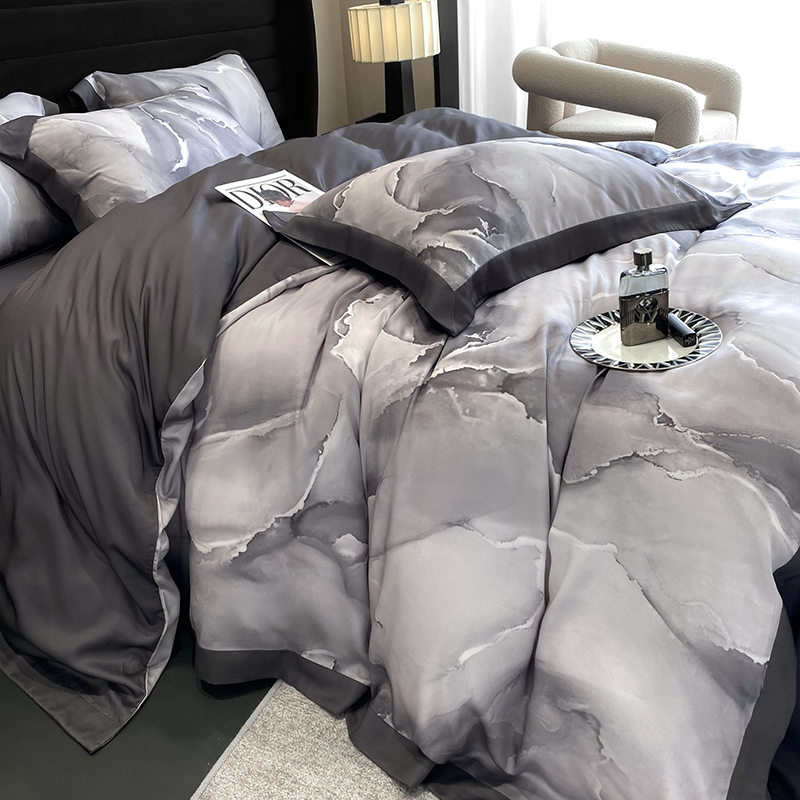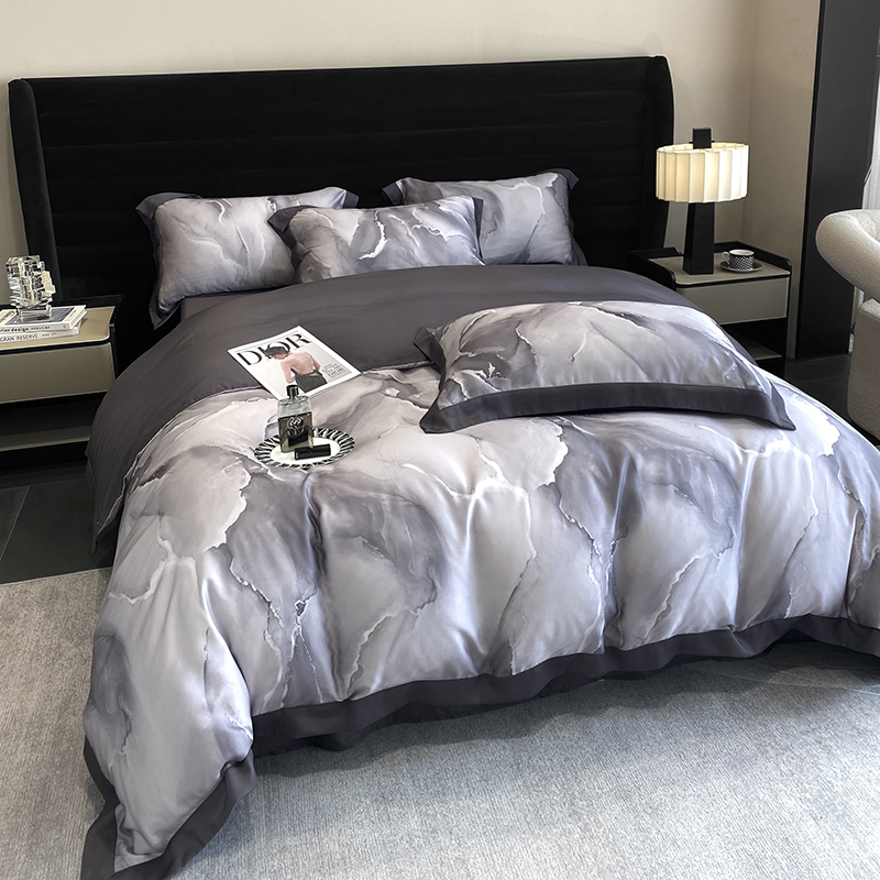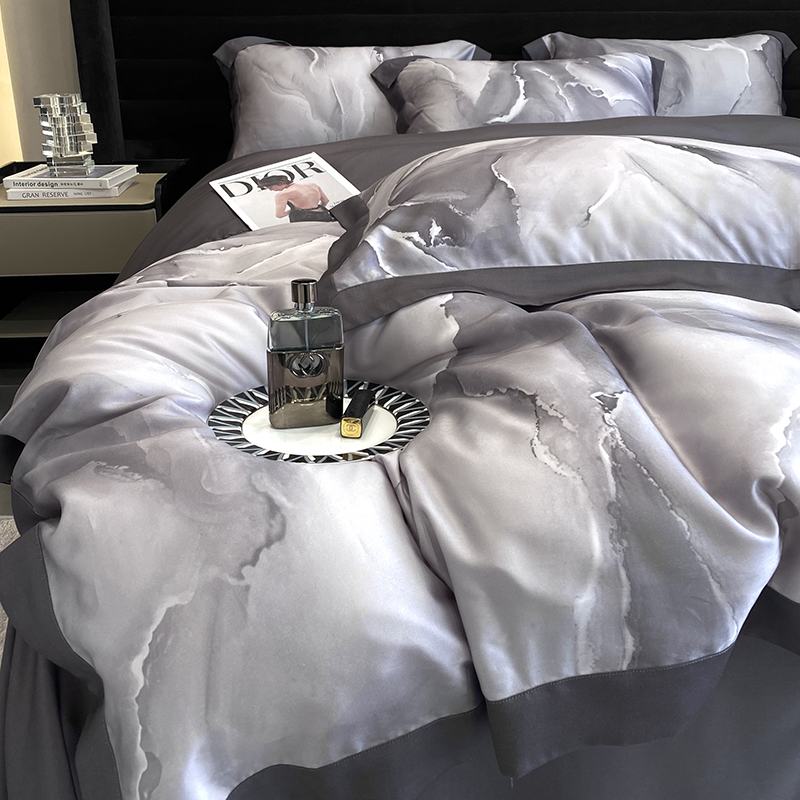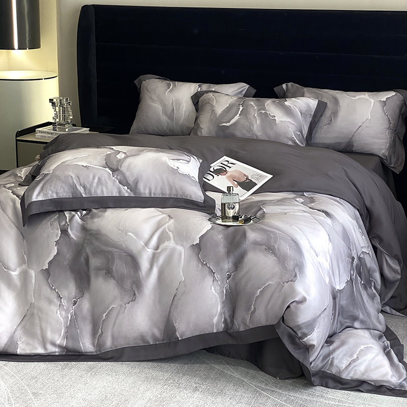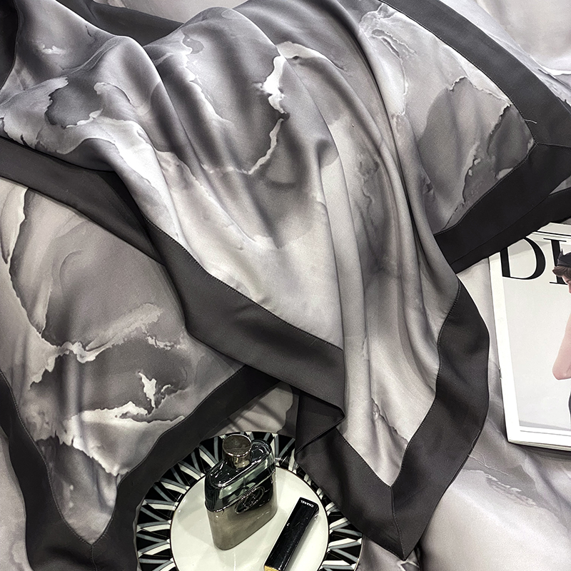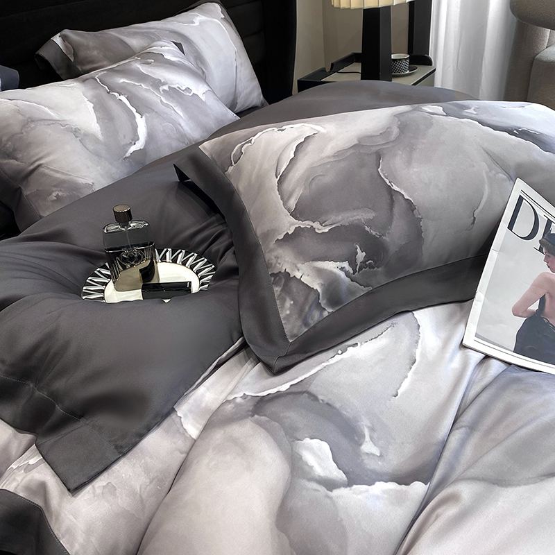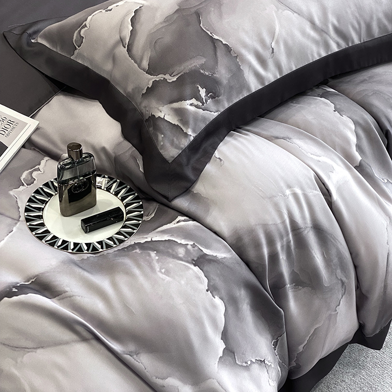 商品名称:优悦生活馆 2024新款轻奢天丝印花宽边拼角四件套系列-漫漫格调 漫漫格调-灰