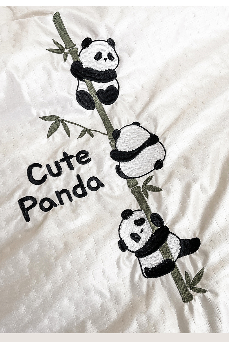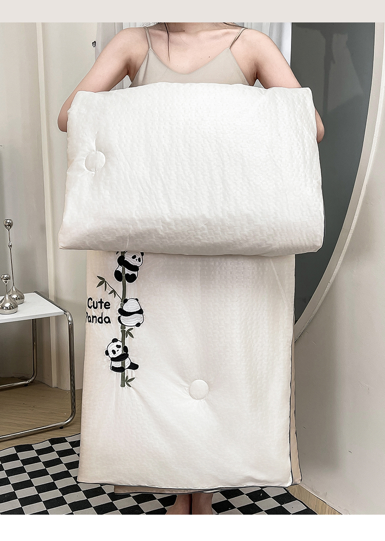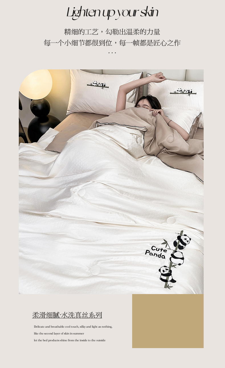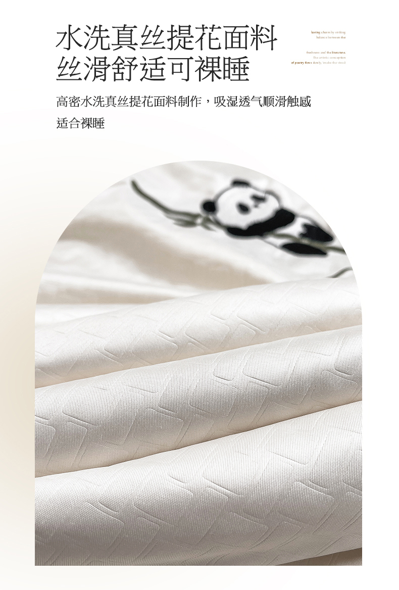 商品名称:古吉梦 2024新款水洗真丝提花夏被-熊猫 奶昔白+奶茶