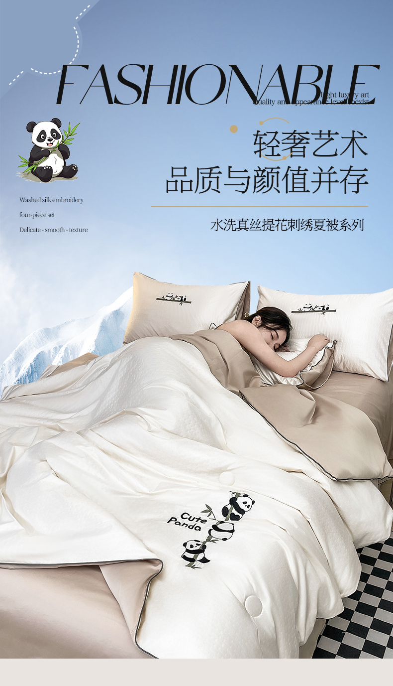 (总)古吉梦 2024新款水洗真丝提花夏被-熊猫,宾利蓝+奶茶,高级灰,海青+山灰,奶昔白+奶茶,浅豆沙+山灰,山灰+中灰,星空蓝