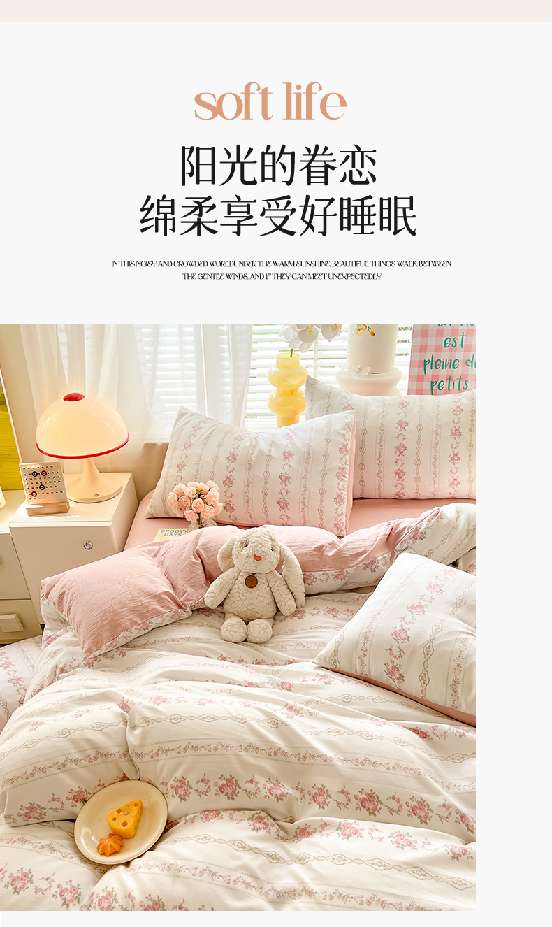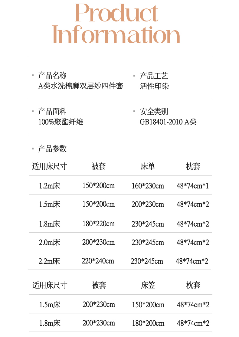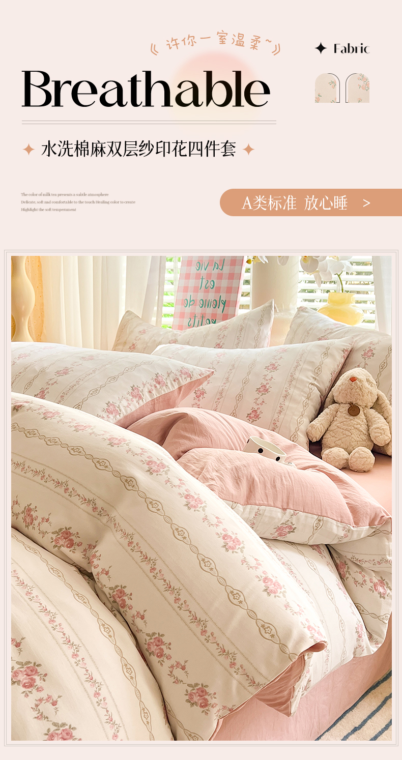 当前位置: 91家纺网 > 商品网购 > 床品套件 > 四件套 > 双层纱四件套 > 多品 2024新款水洗棉双层纱四件套 白薇