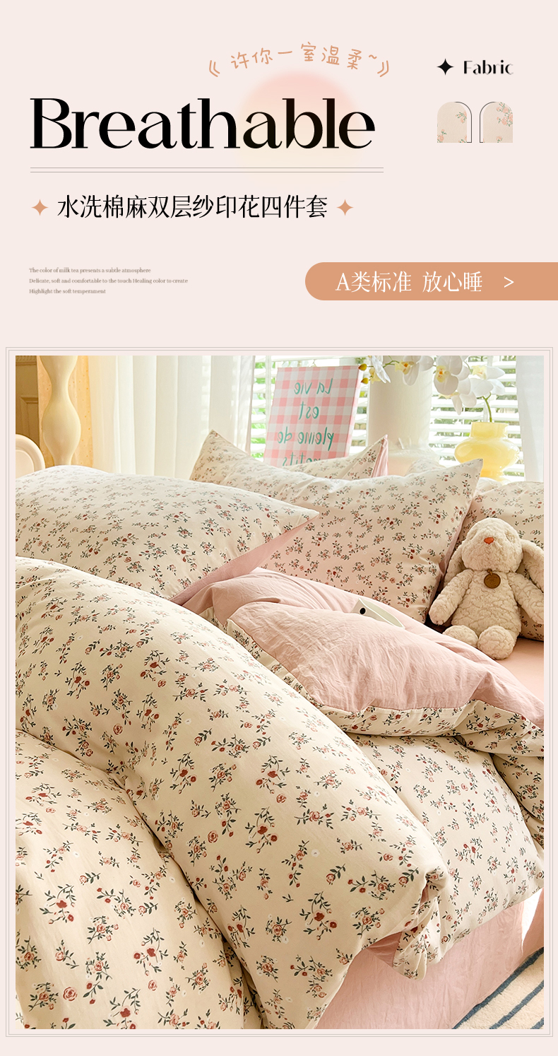 当前位置: 91家纺网 > 商品网购 > 床品套件 > 四件套 > 双层纱四件套 > 多品 2024新款水洗棉双层纱四件套 沫冉