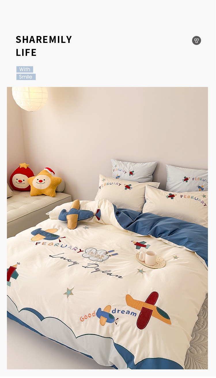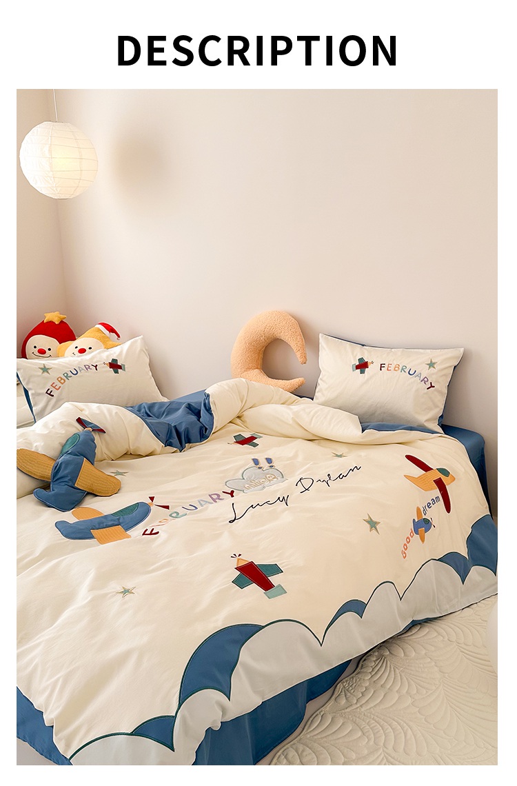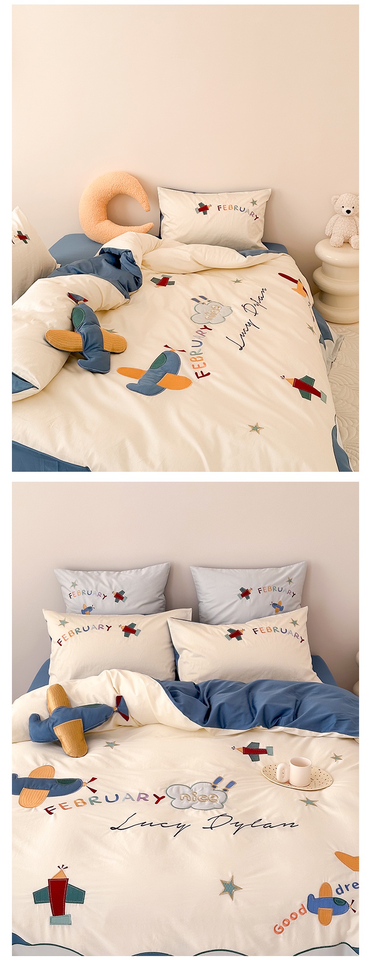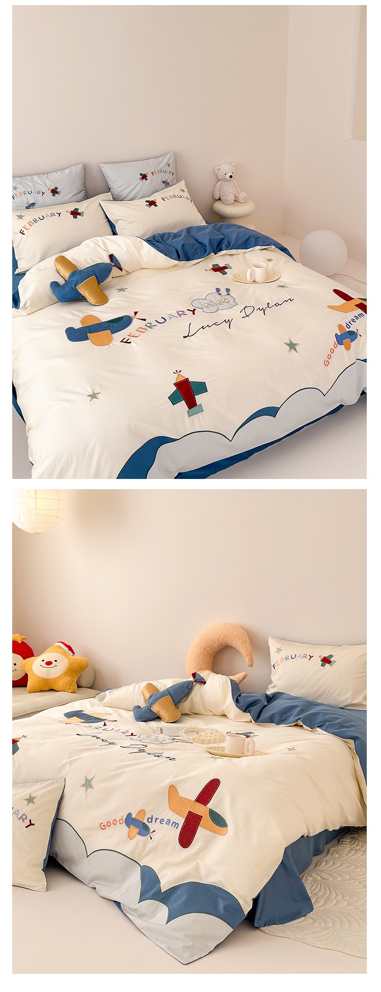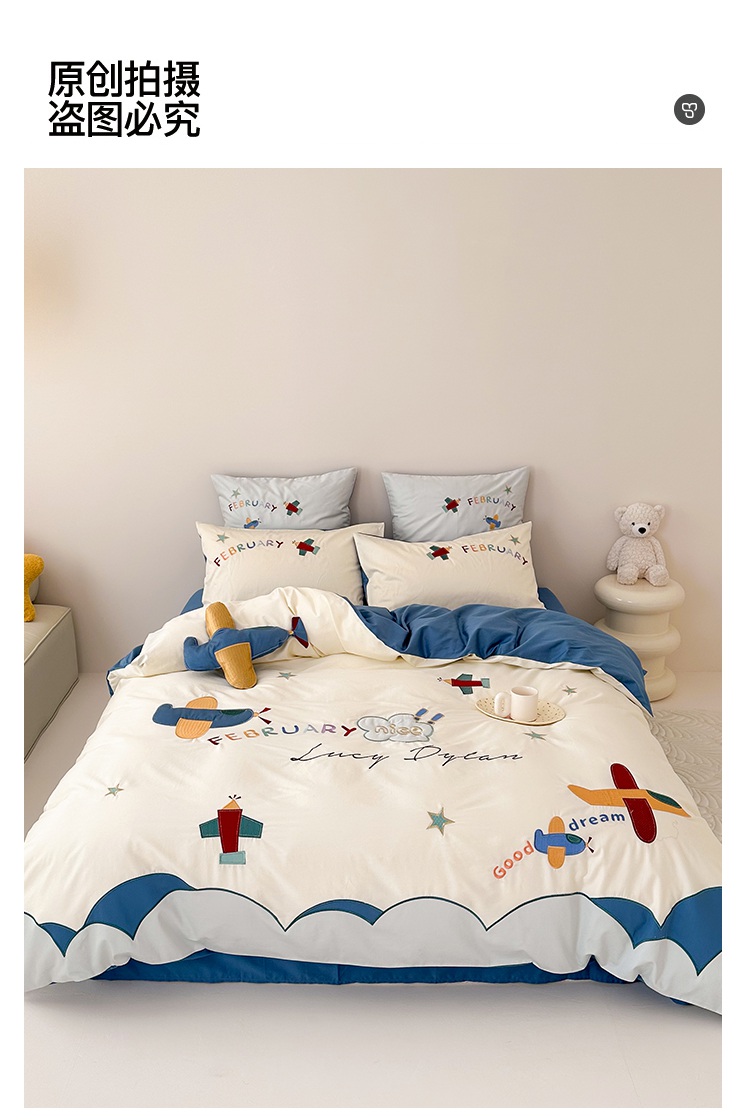 (总)西西家居2024新款100支长绒棉精致绣花四件套-纸飞机