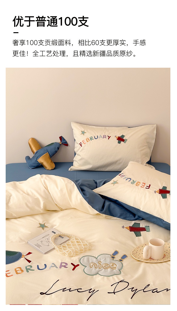 商品名称:(总)西西家居2024新款100支长绒棉精致绣花四件套-纸飞机