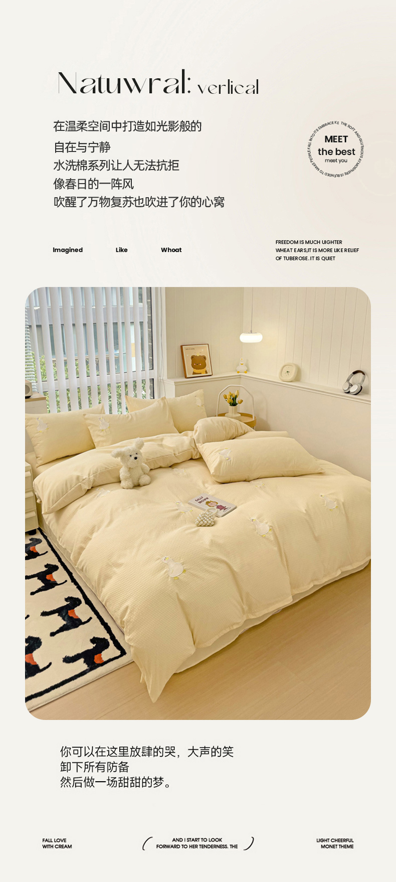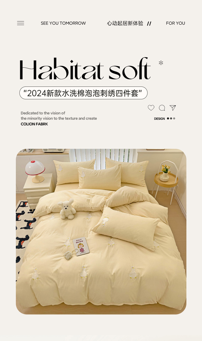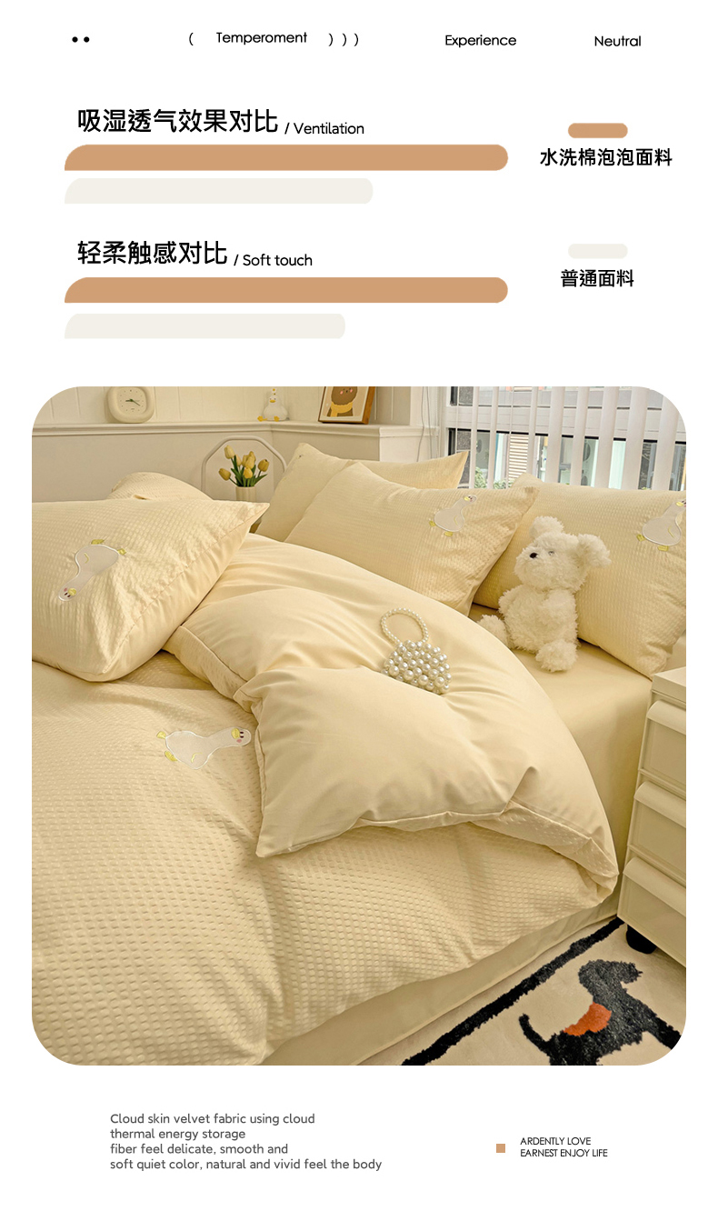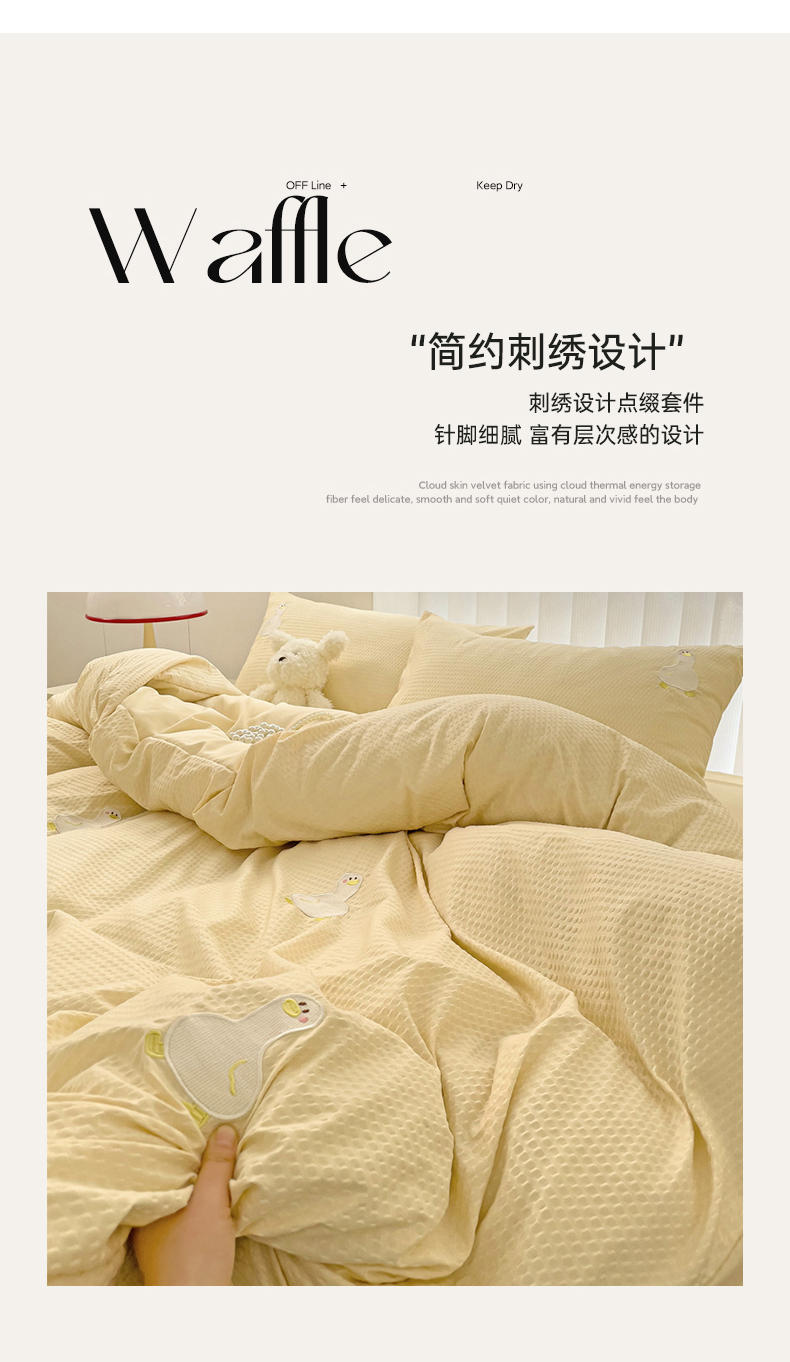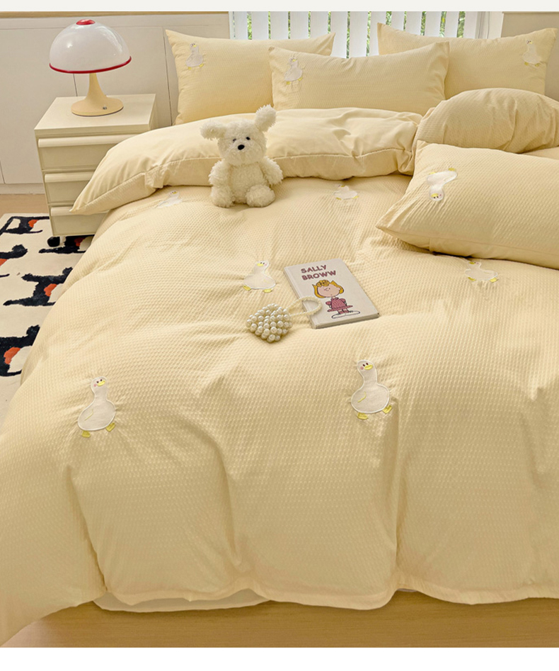 商品名称:N先生 2025新款水洗棉泡泡刺绣四件套 可爱鸭