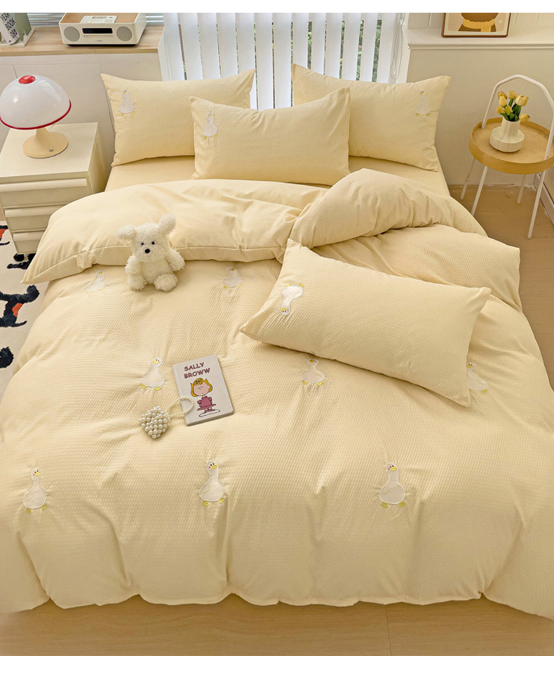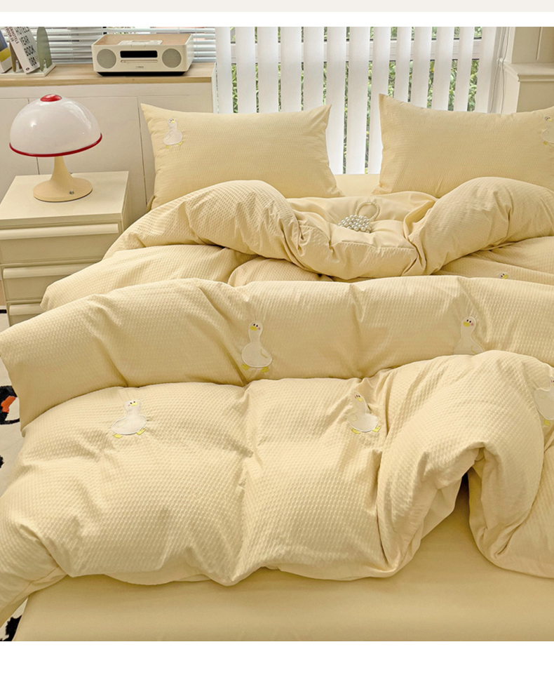 N先生 2025新款水洗棉泡泡刺绣四件套 可爱鸭