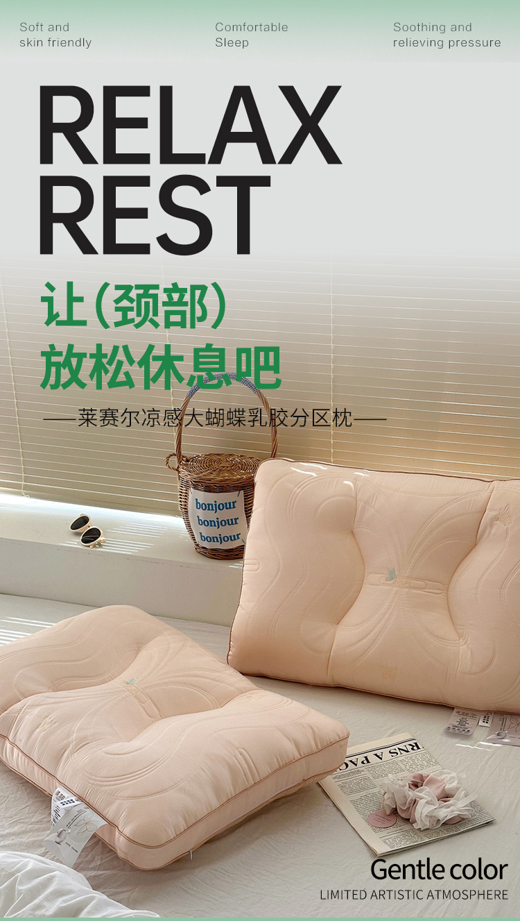 当前位置: 91家纺网 > 商品网购 > 枕头/枕芯/保健枕/颈椎枕 > 乳胶枕 > (总)伟邦 2024新款天丝凉感大蝴蝶乳胶分区枕