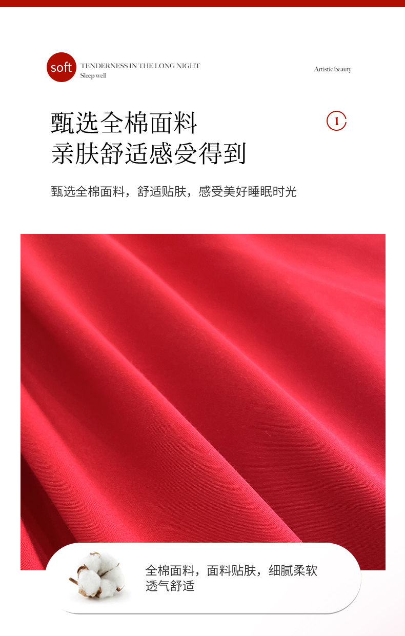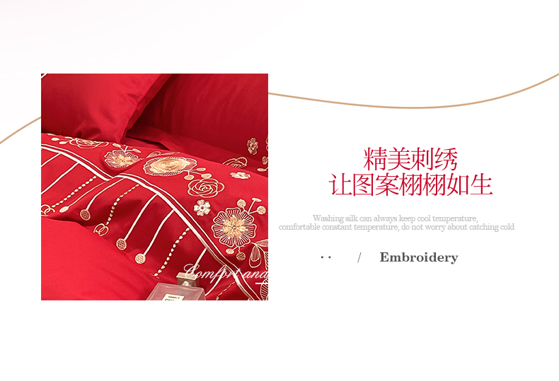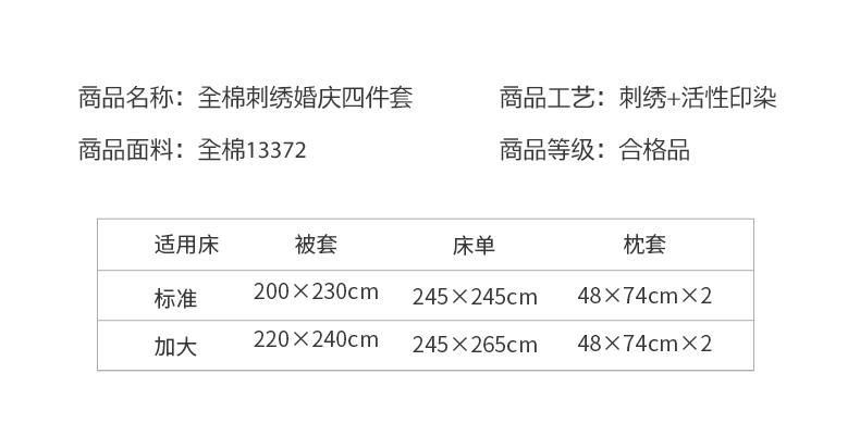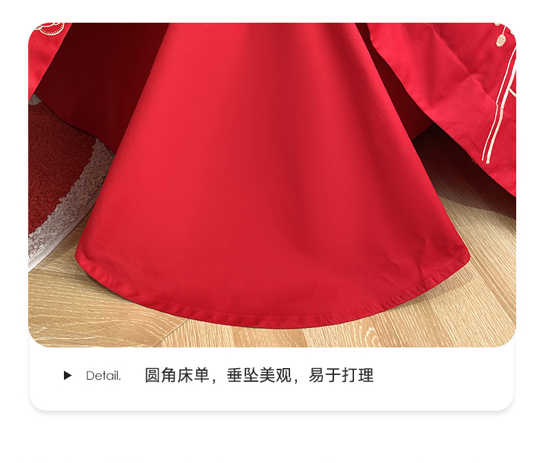 商品名称:遇见家居生活馆 2024新款全棉刺绣婚庆四件套 浪漫相随-大红