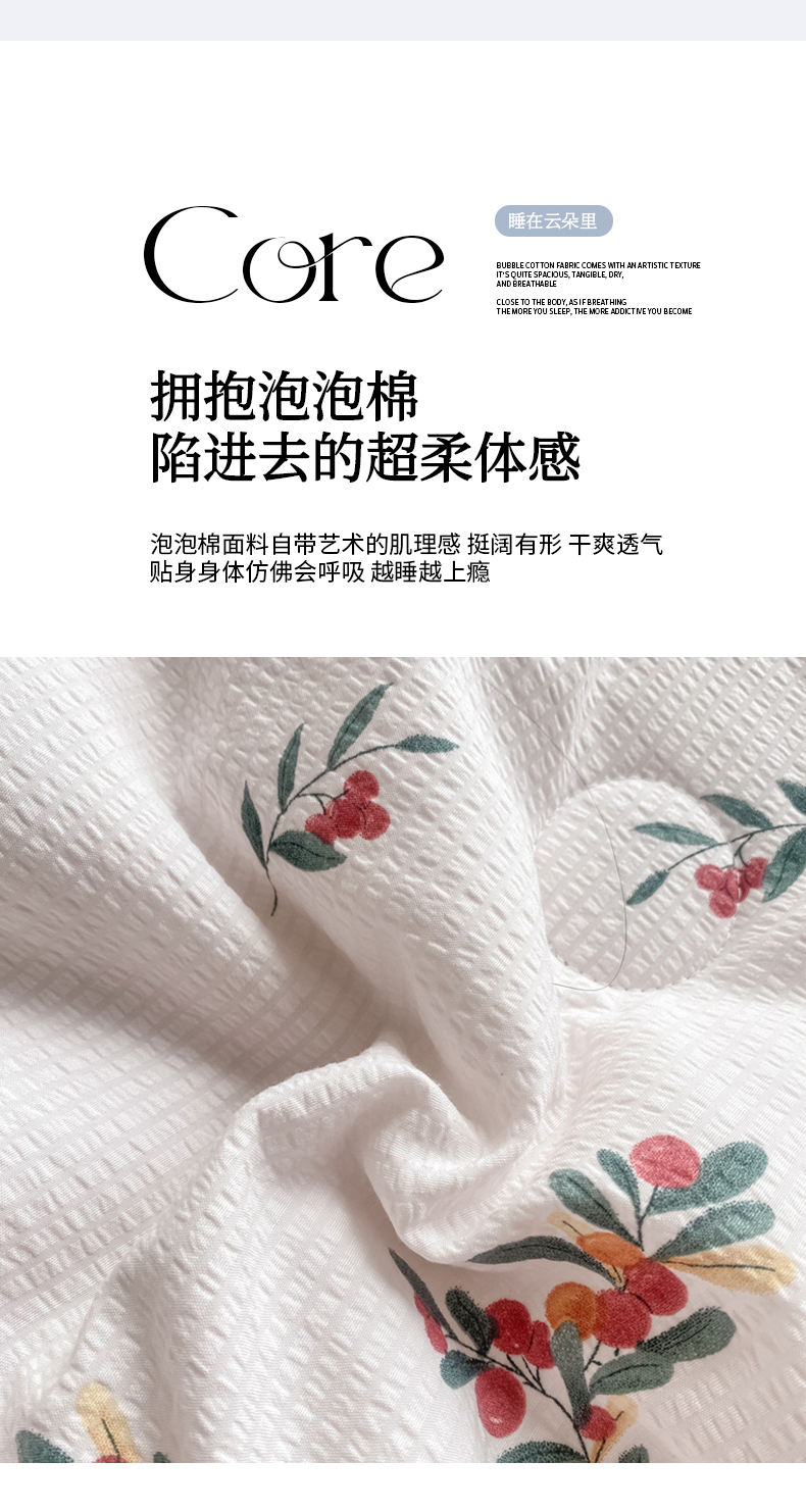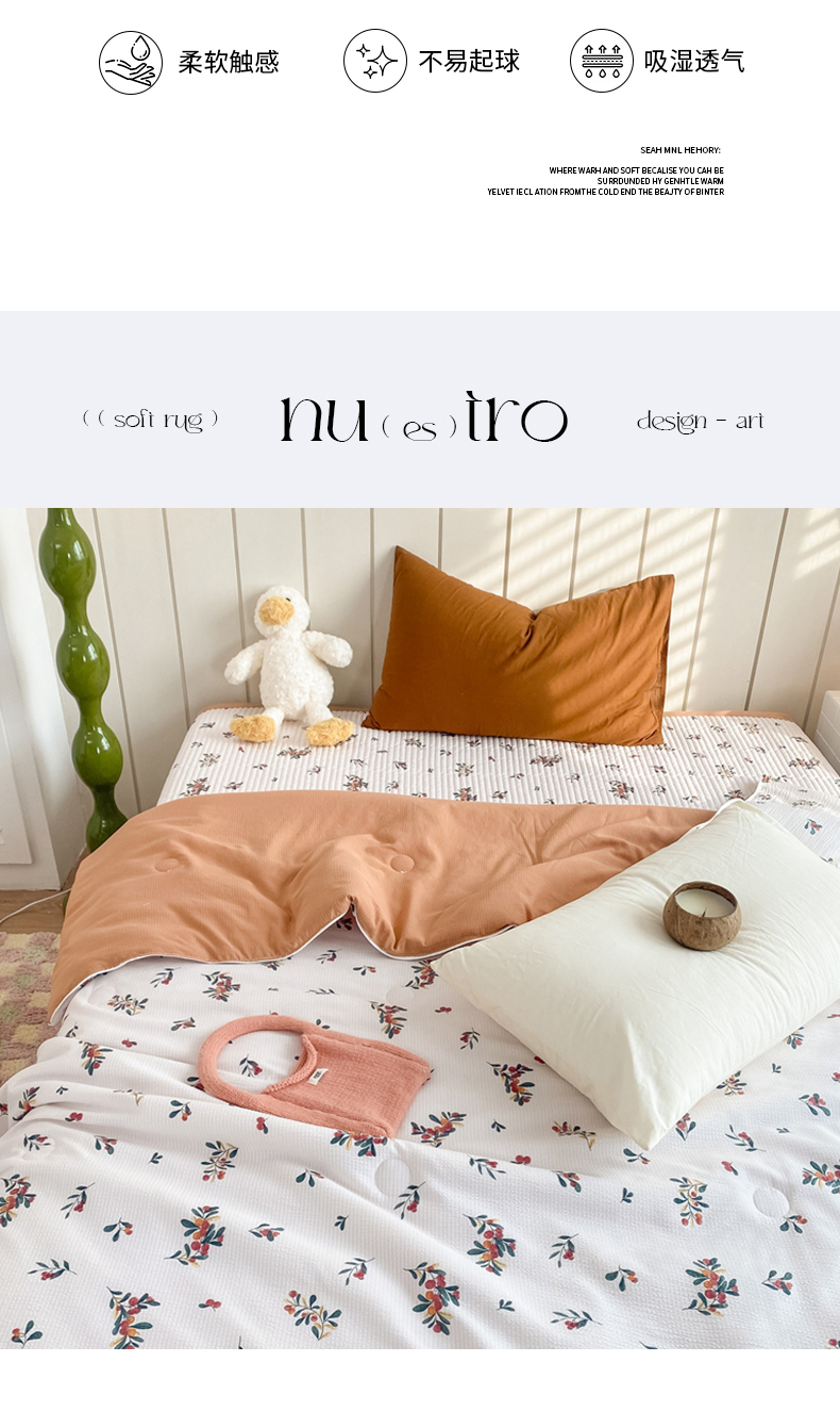 商品名称:羋多家纺 2024新款麻绳印花小米棉夏被云感泡芙棉被子泡泡纱单夏被(另有单独床盖)繁华