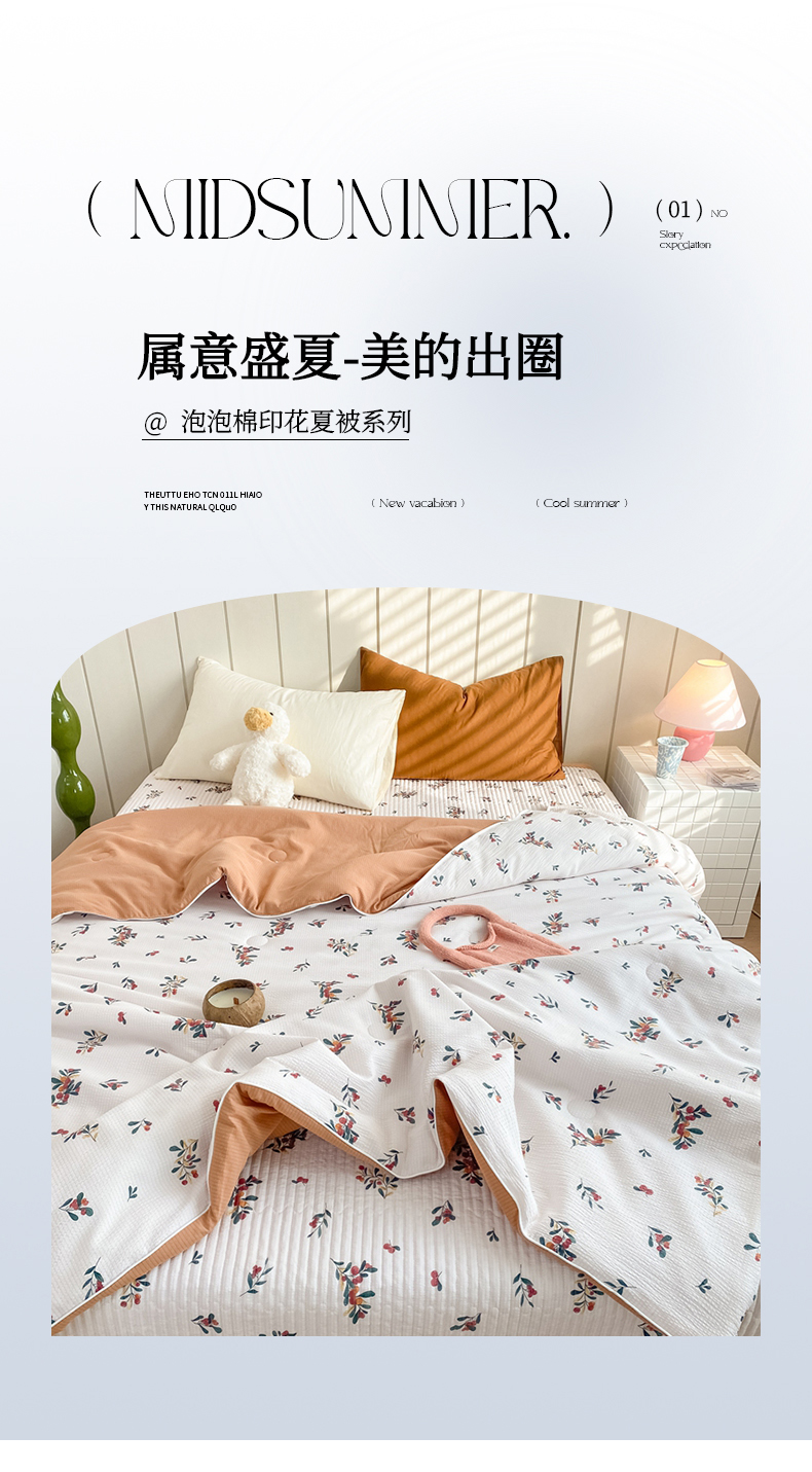 羋多家纺 2024新款麻绳印花小米棉夏被云感泡芙棉被子泡泡纱单夏被(另有单独床盖)繁华