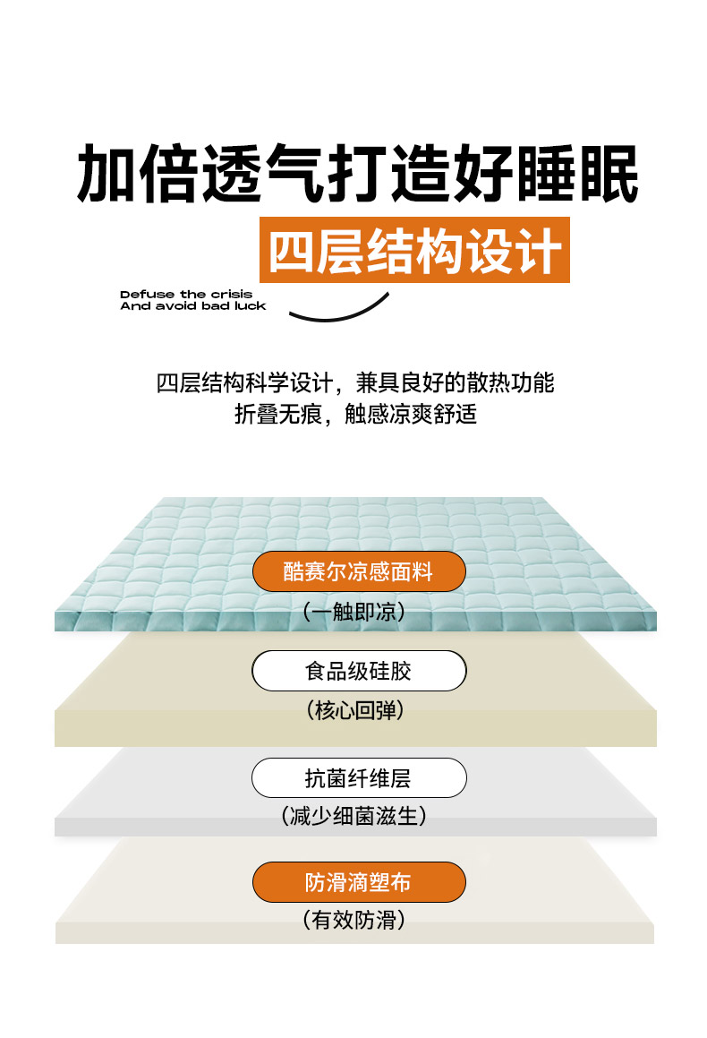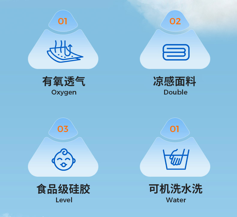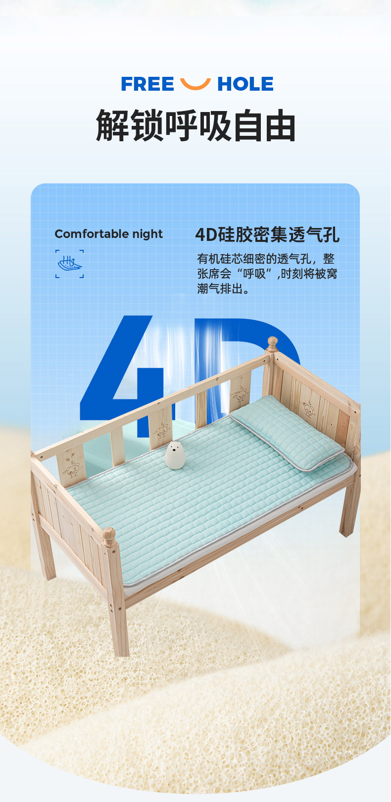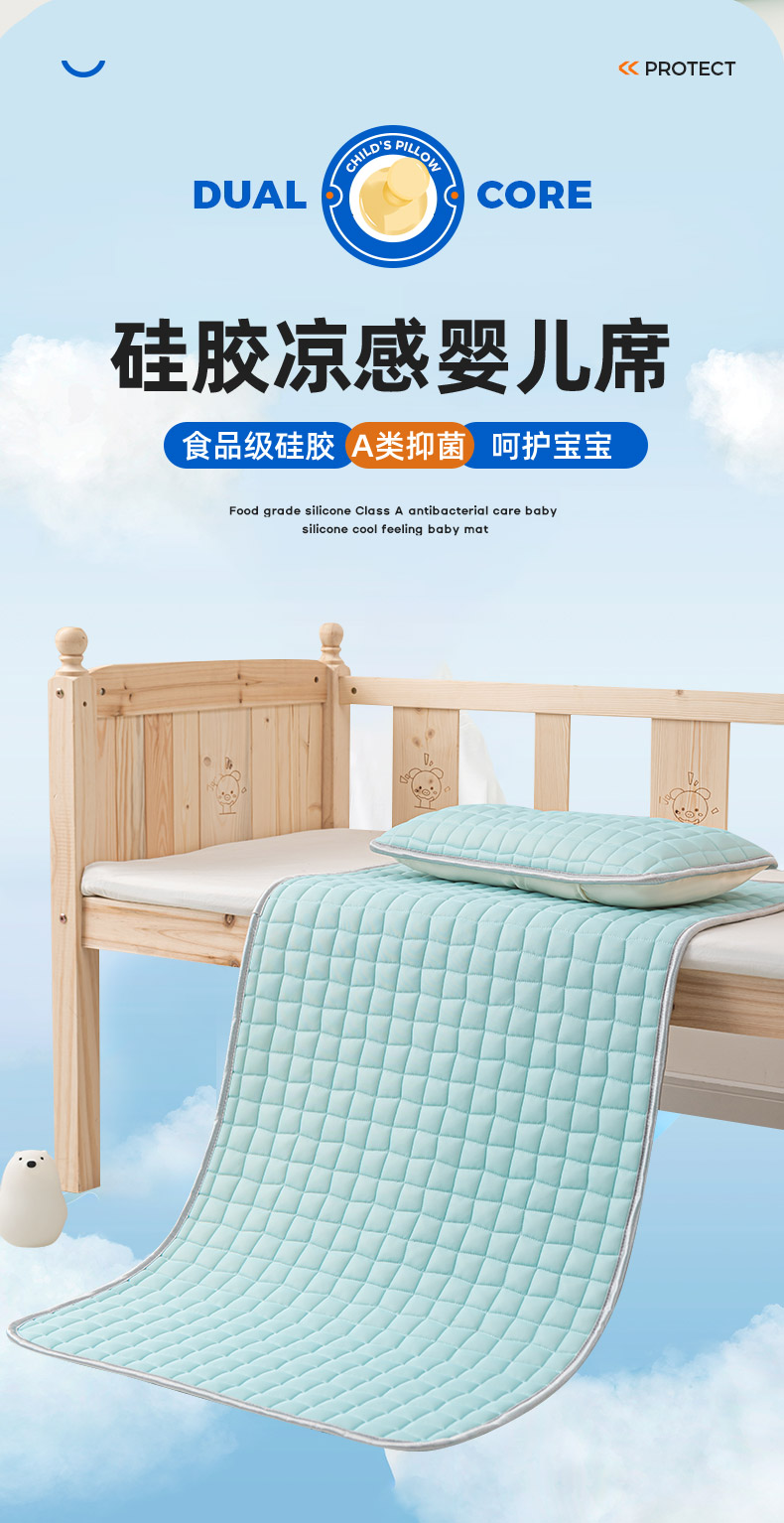 吾诺家居 2024新款冰嘟嘟儿童硅胶凉席 浅兰
