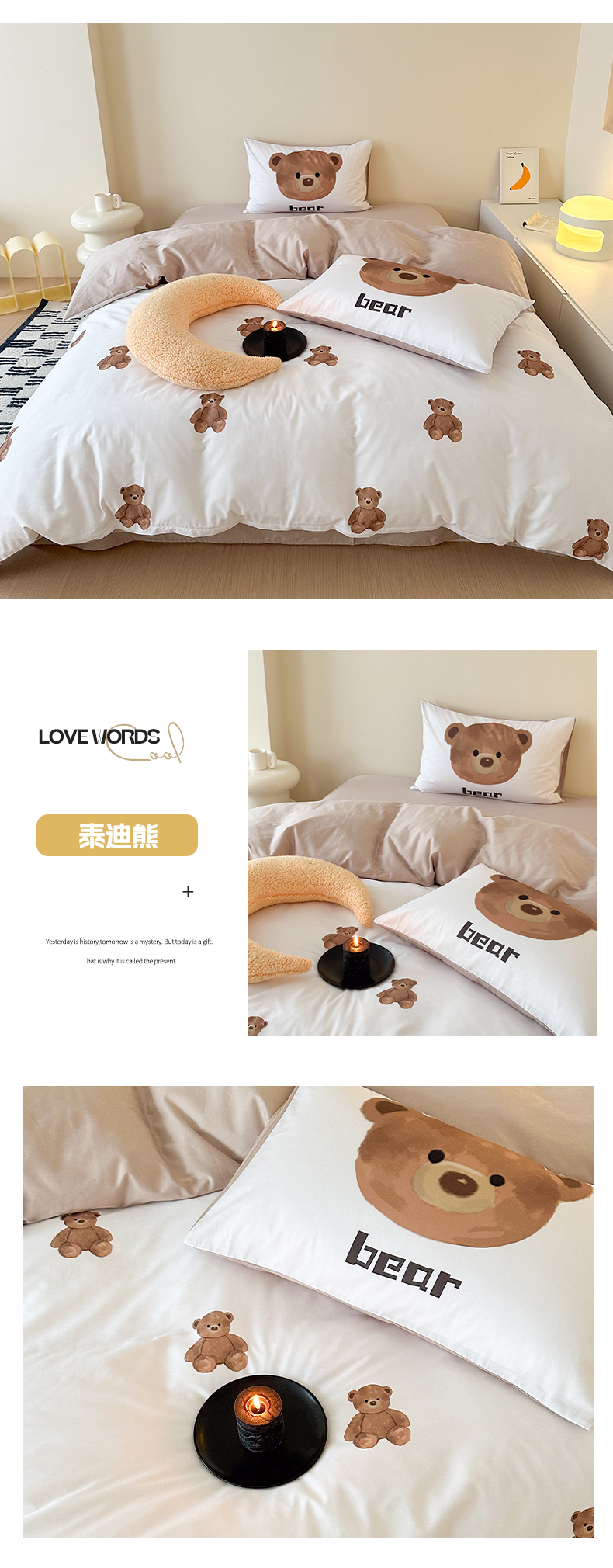 美乐迪家纺 2024ins韩风全棉四件套 泰迪熊