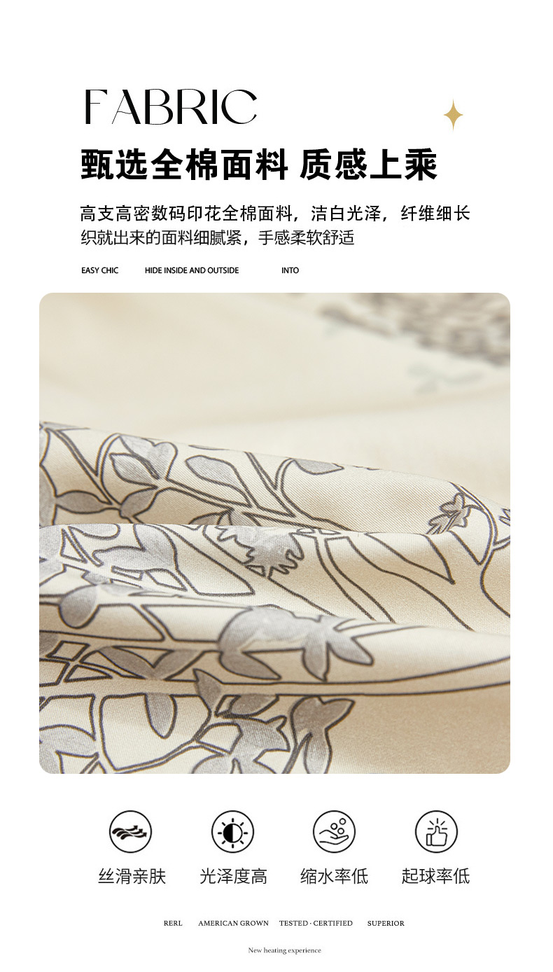 商品名称:雲归梦 2024新款全棉铂金棉数码印花四件套云思木想 灰