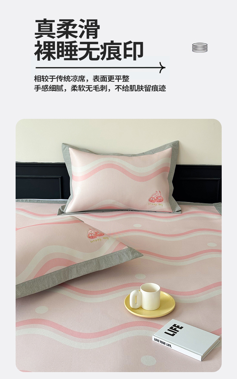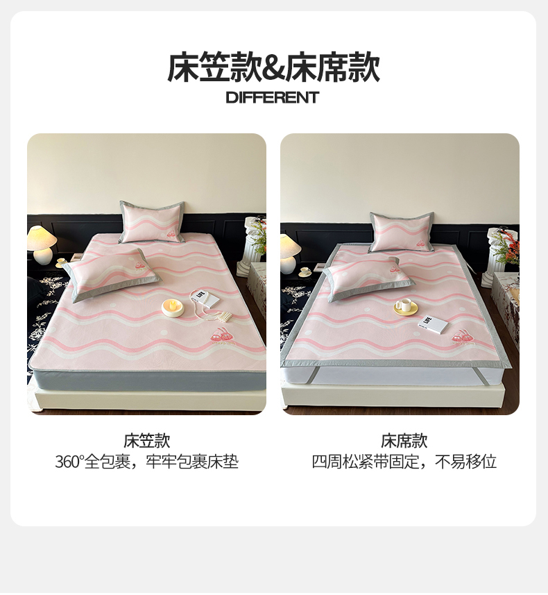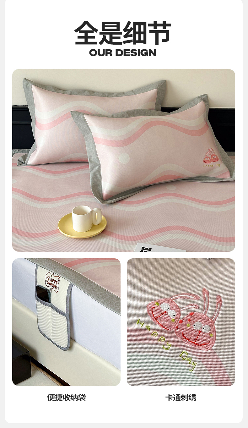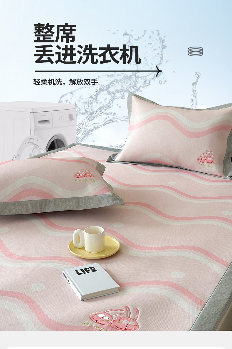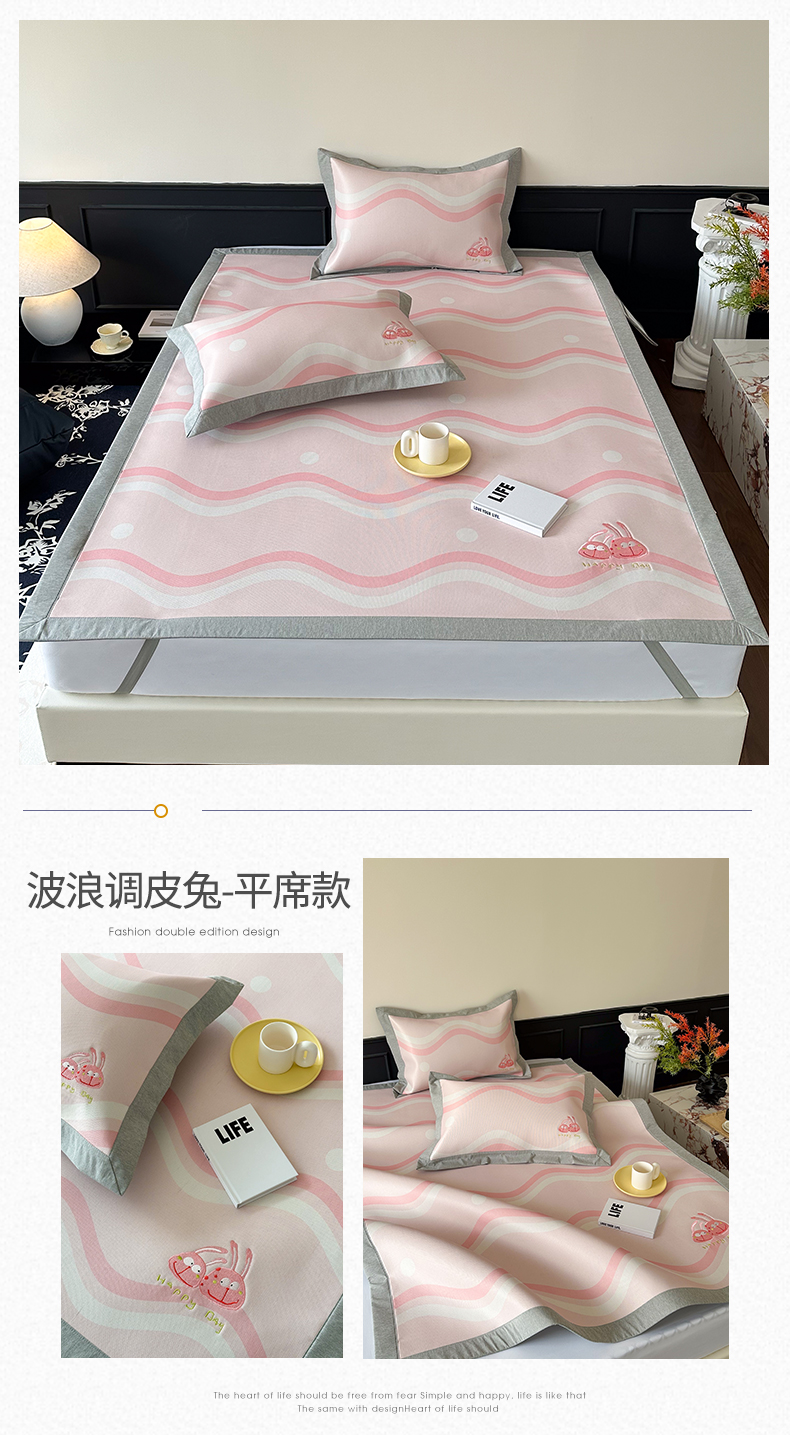 商品名称:甜梦 2024新款母婴级7A抗菌养生冰藤席影棚1—平席款 波浪调皮兔-平席款