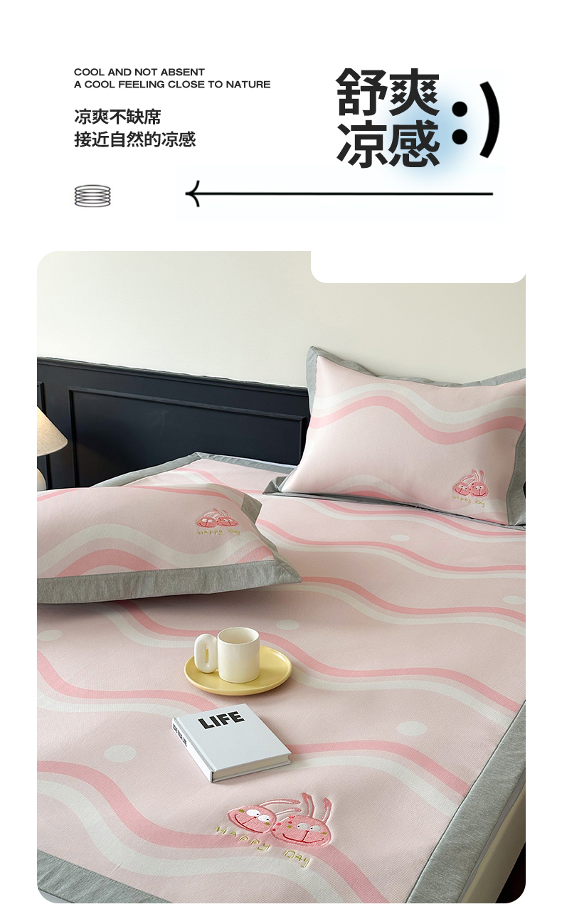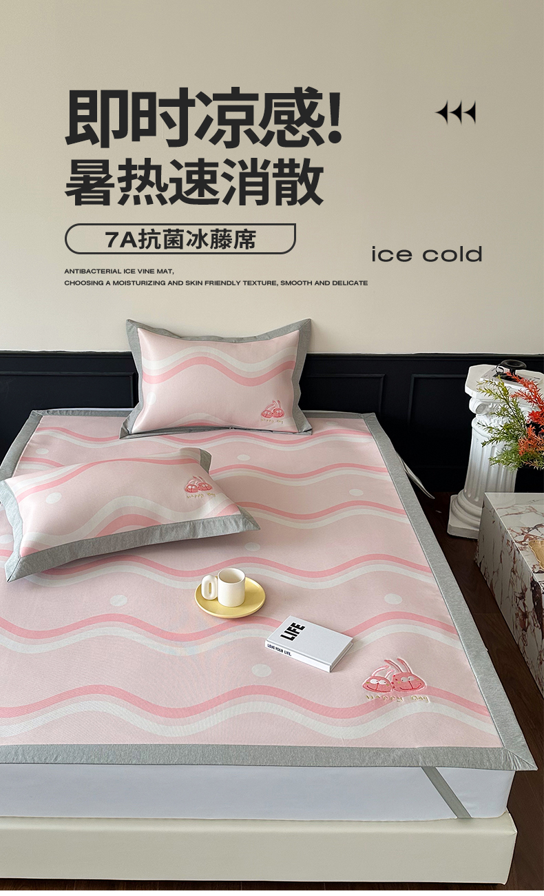 甜梦 2024新款母婴级7A抗菌养生冰藤席影棚1—平席款 波浪调皮兔-平席款