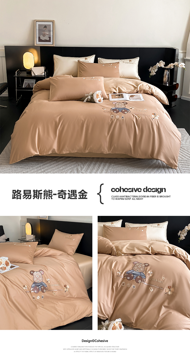 澳梵家居 2024新款60s全棉刺绣四件套--【路易斯熊】系列 路易斯熊-奇遇金