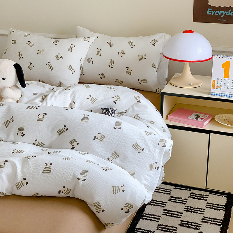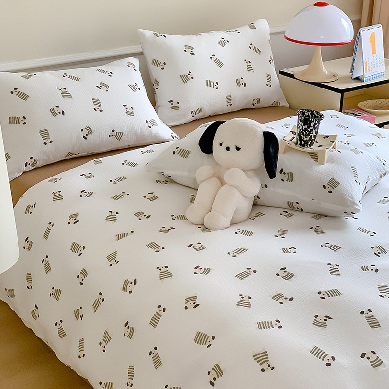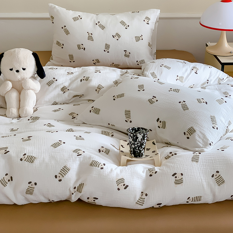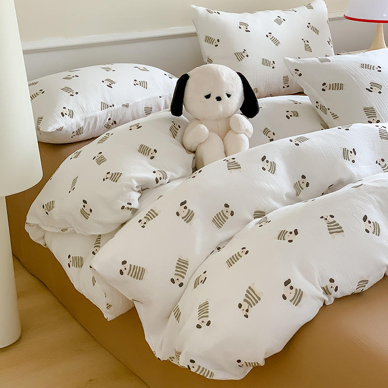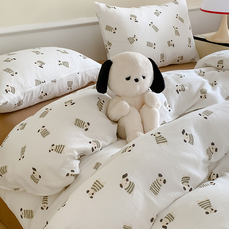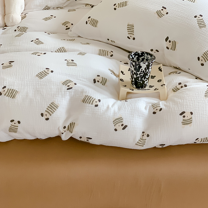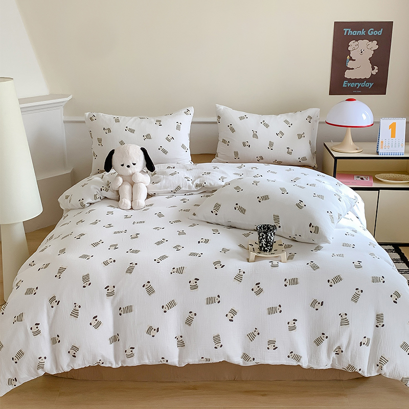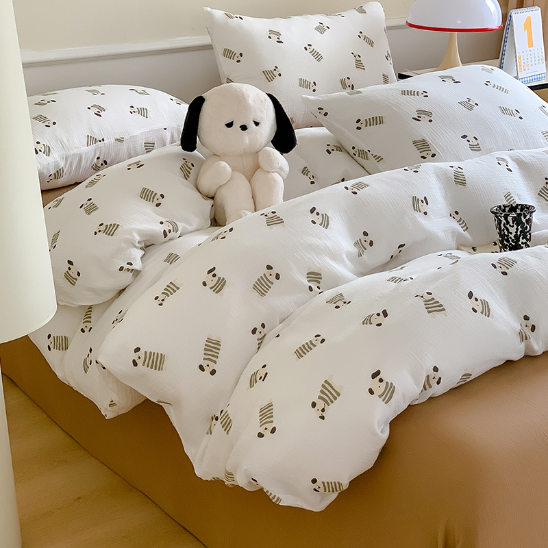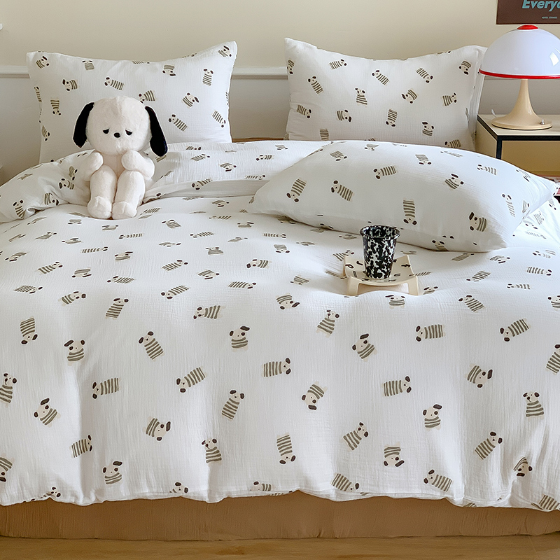 当前位置: 91家纺网 > 商品网购 > 床品套件 > 四件套 > 双层纱四件套 > 萝莉家纺2025新款全棉双层皱皱纱四件套 可爱狗