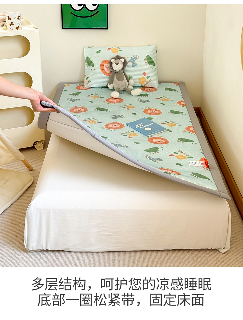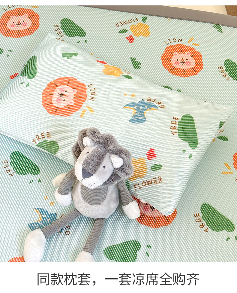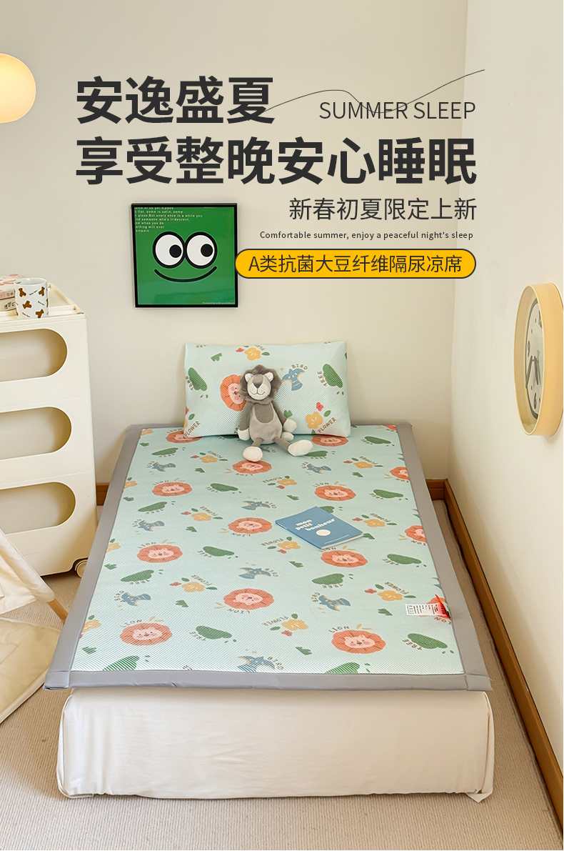 • 91家纺网 家纺一手货源 找家纺 喜多兔儿童家纺 2024新款抗菌大豆纤维隔尿凉席 蓝色狮子森林