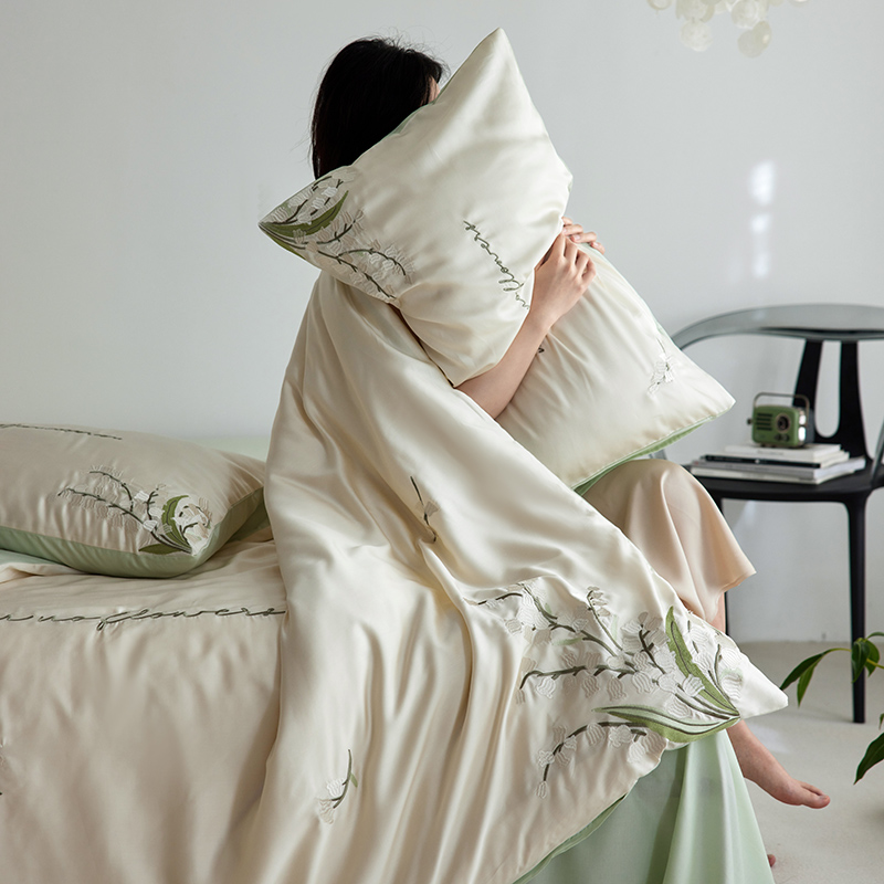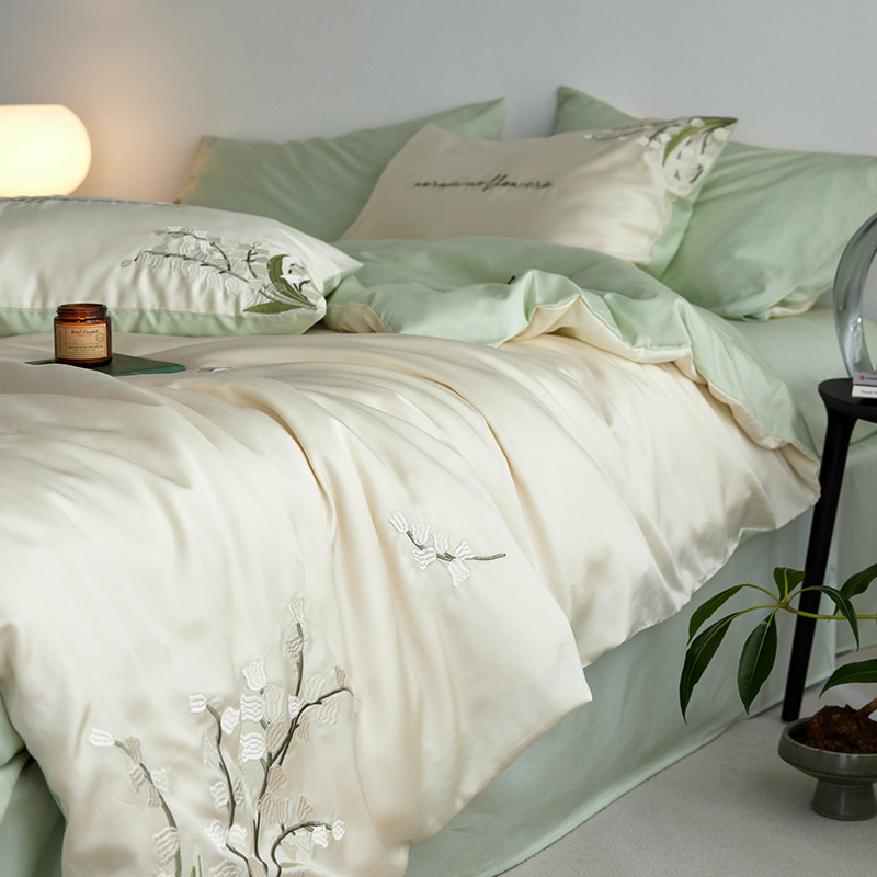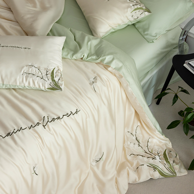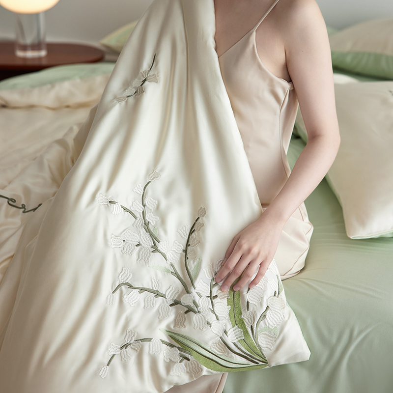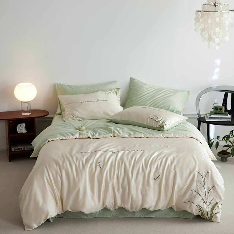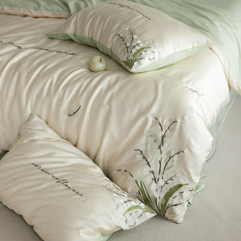 当前位置: 91家纺网 > 商品网购 > 床品套件 > 四件套 > 化纤普通四件套 > 初拾 2024新款A类天丝棉刺绣四件套-郁金香铃兰花场景二 铃兰花
