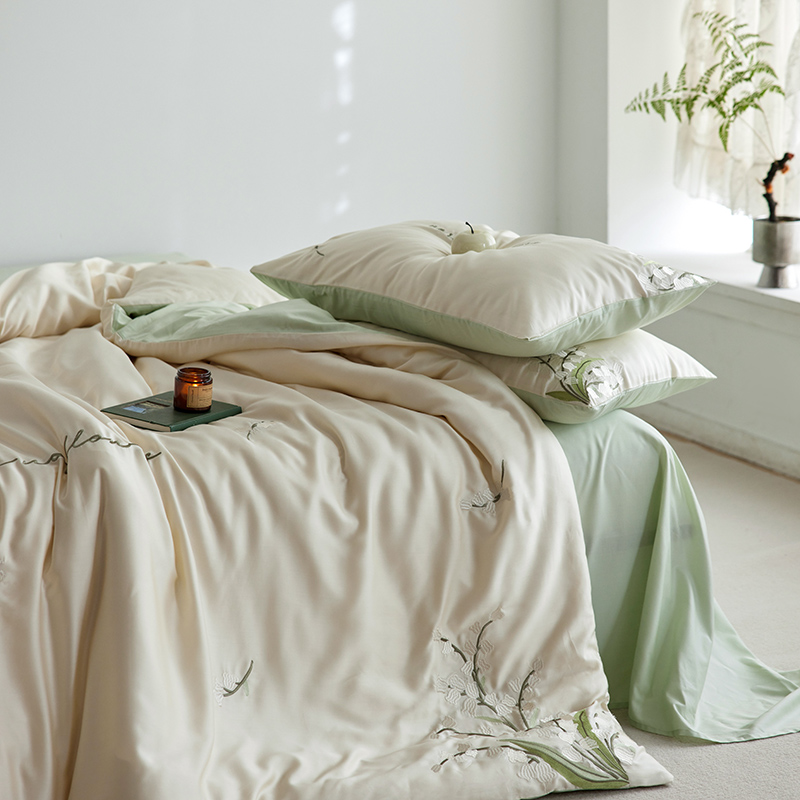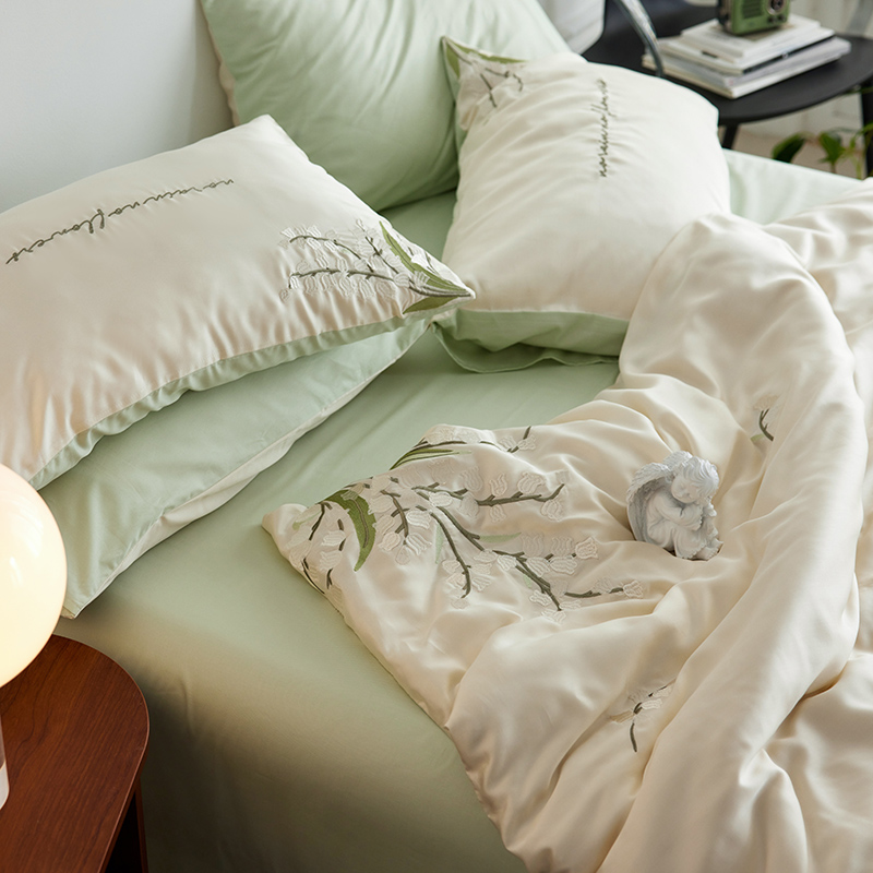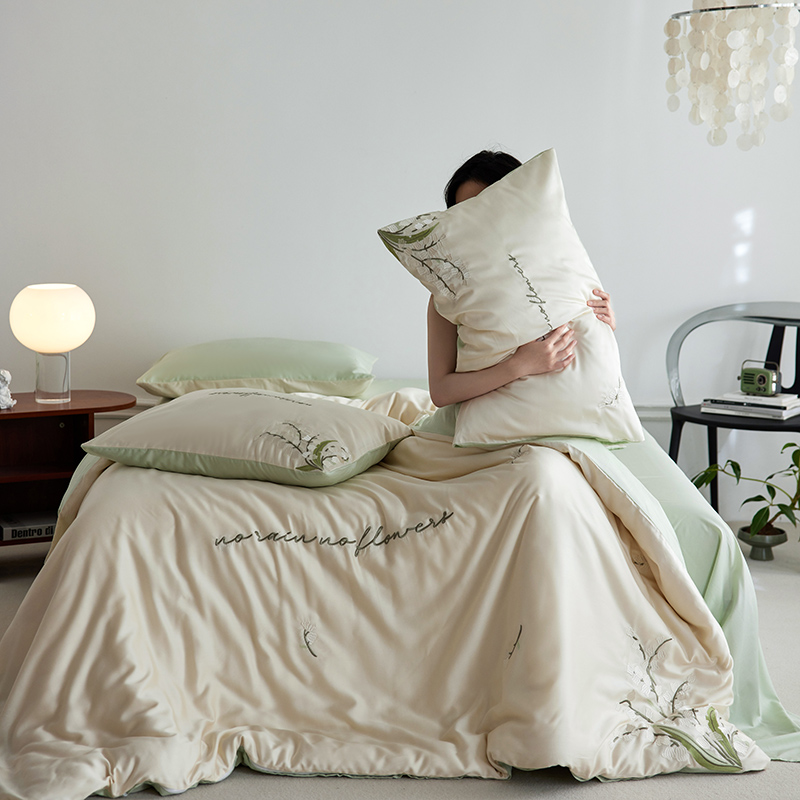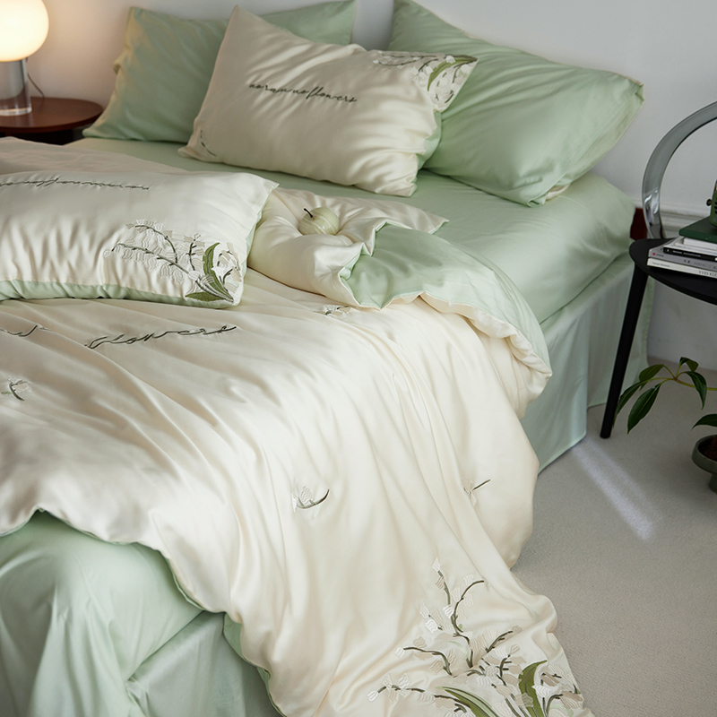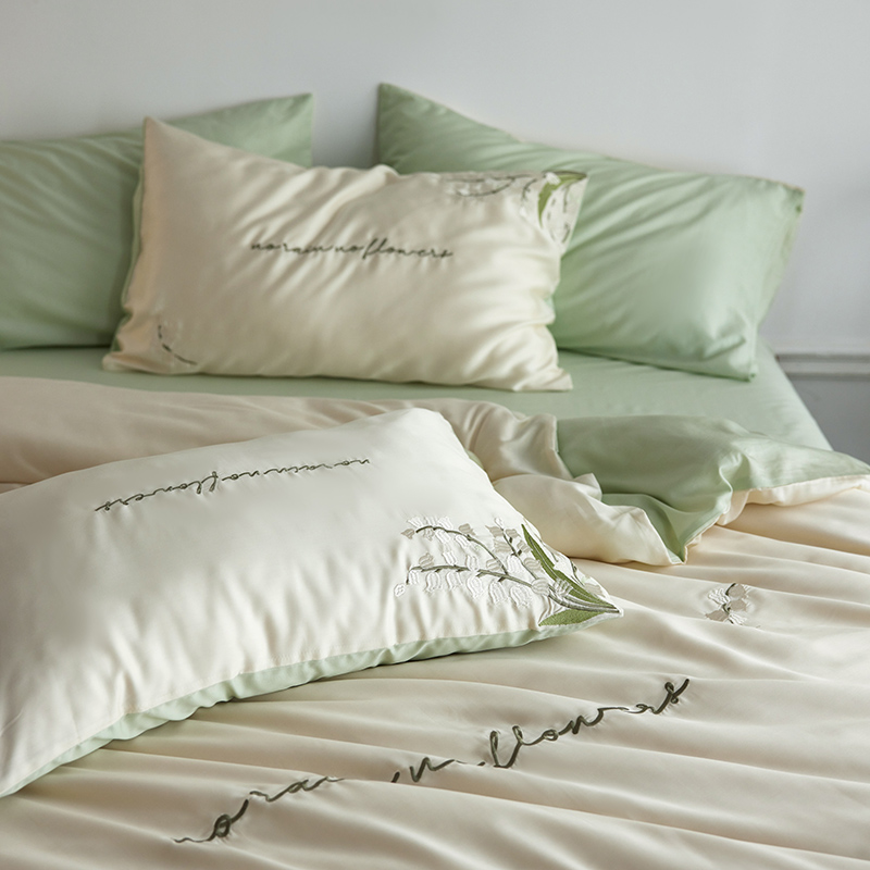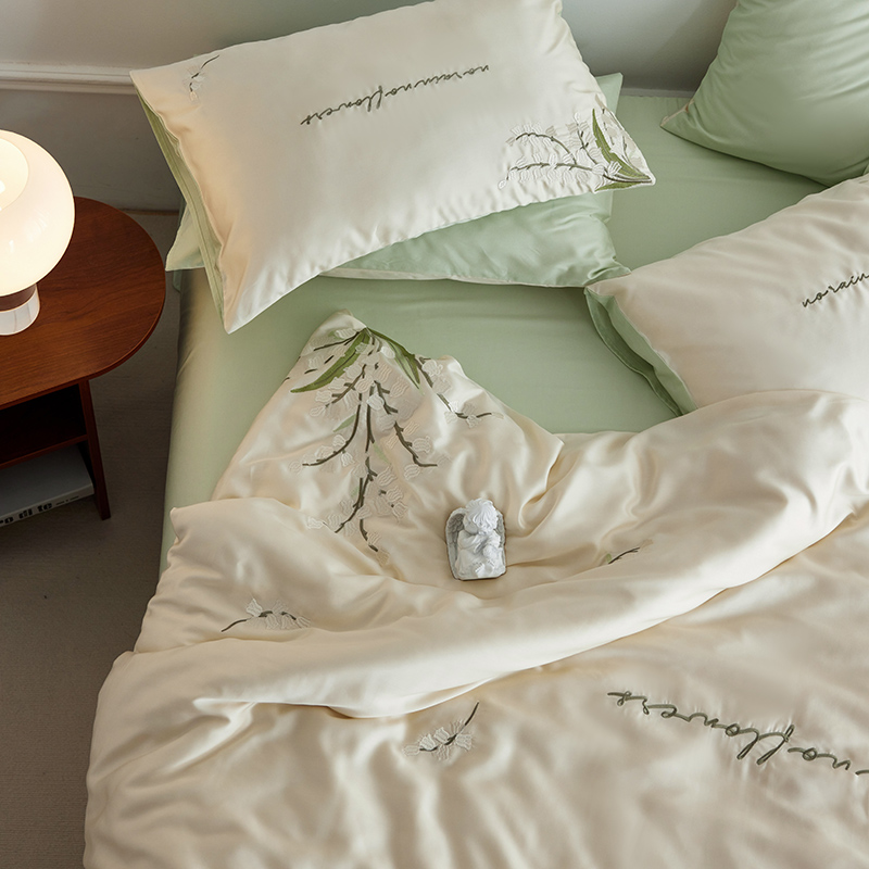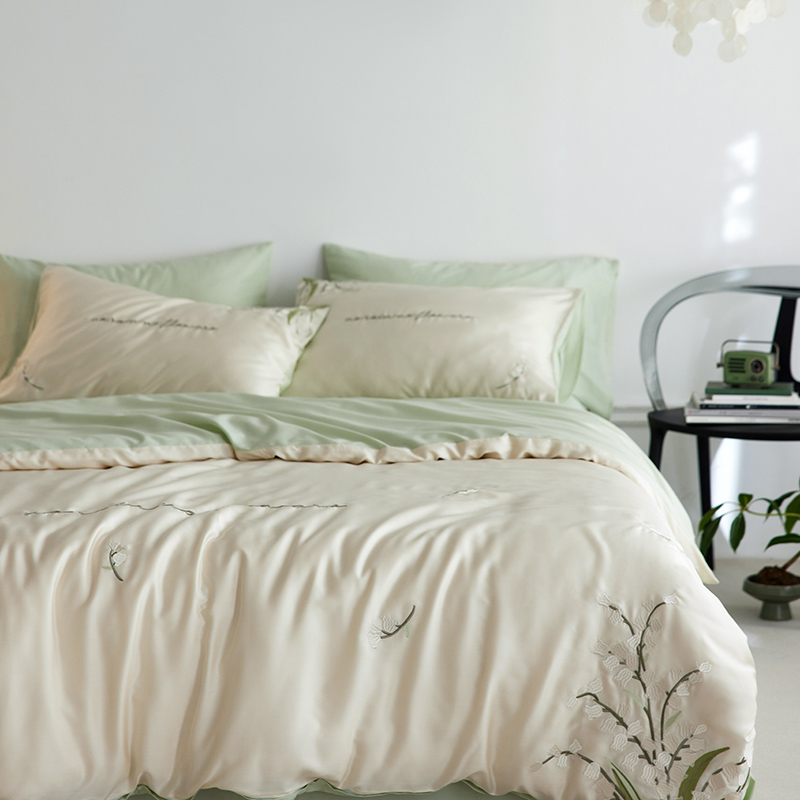 当前位置: 91家纺网 > 商品网购 > 床品套件 > 四件套 > 化纤普通四件套 > 初拾 2024新款A类天丝棉刺绣四件套-郁金香铃兰花场景二 铃兰花