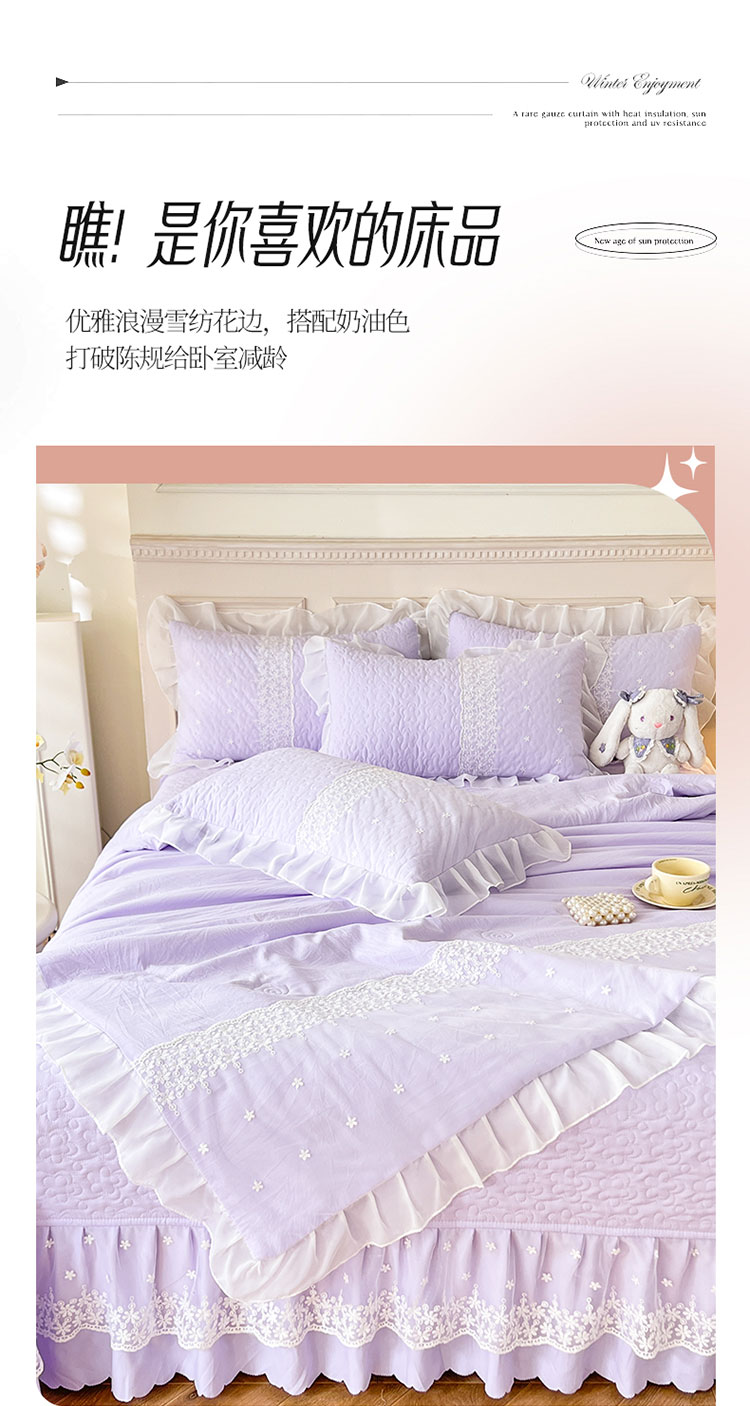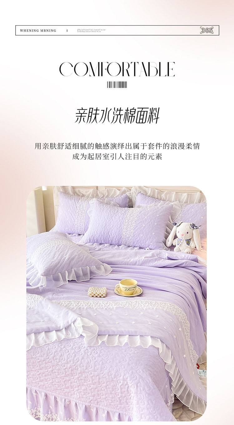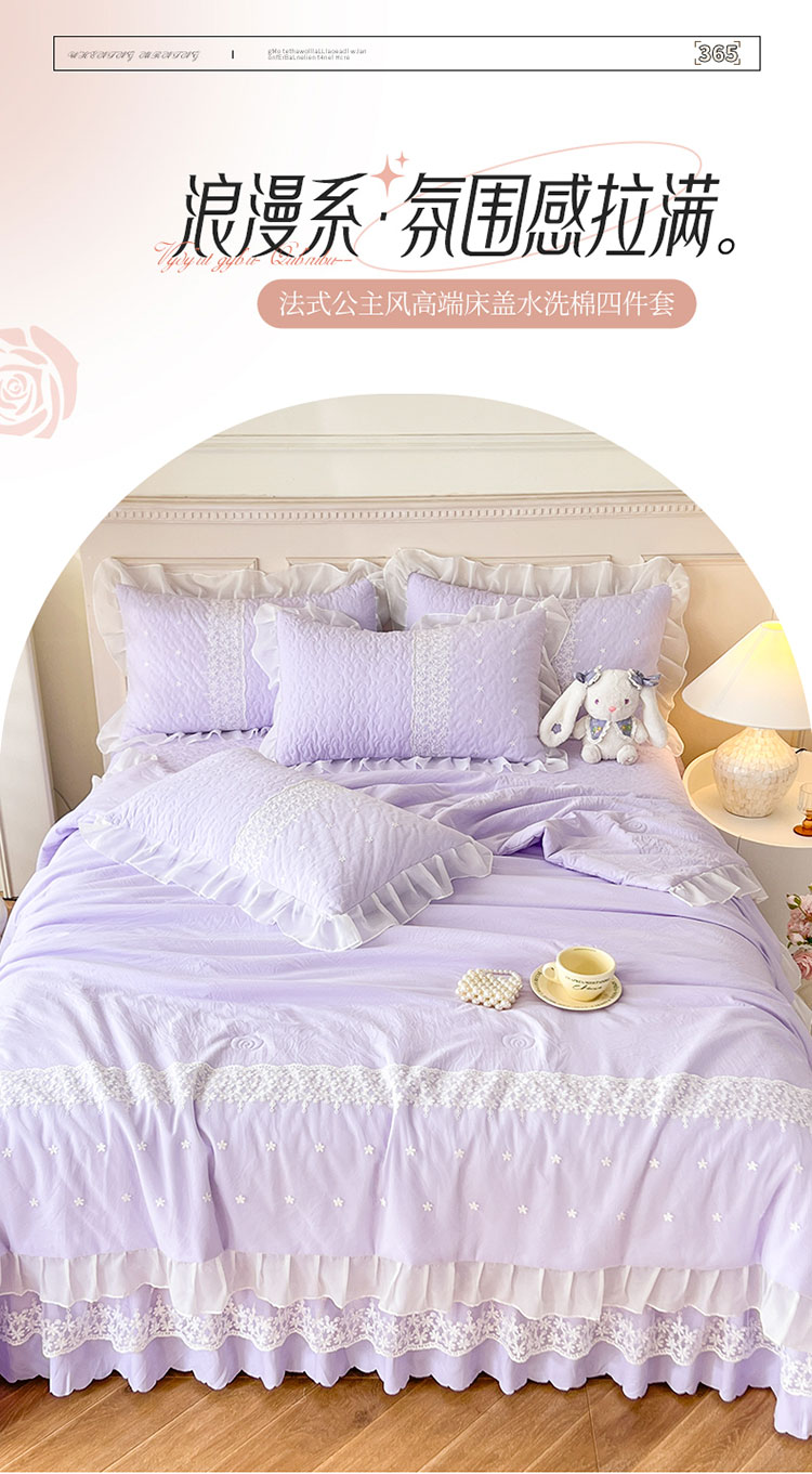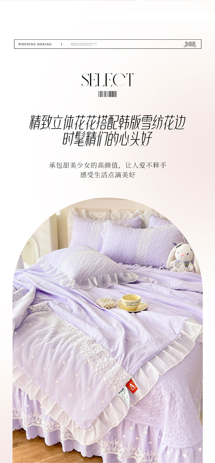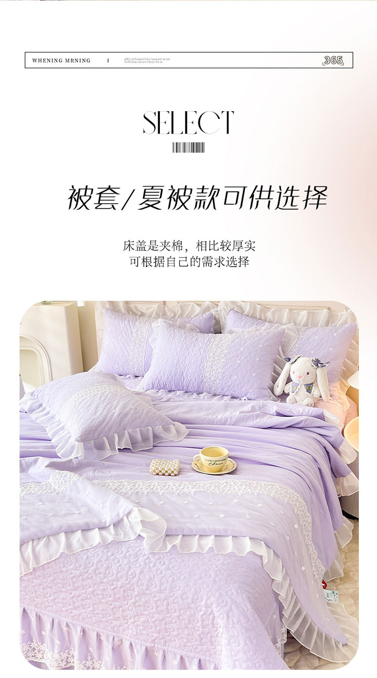 (总)2025韩版少女心法式公主风水洗棉蕾丝花边绣花夏被床盖款四件套泡泡棉小竺棉凉感丝夏被床盖款四件套