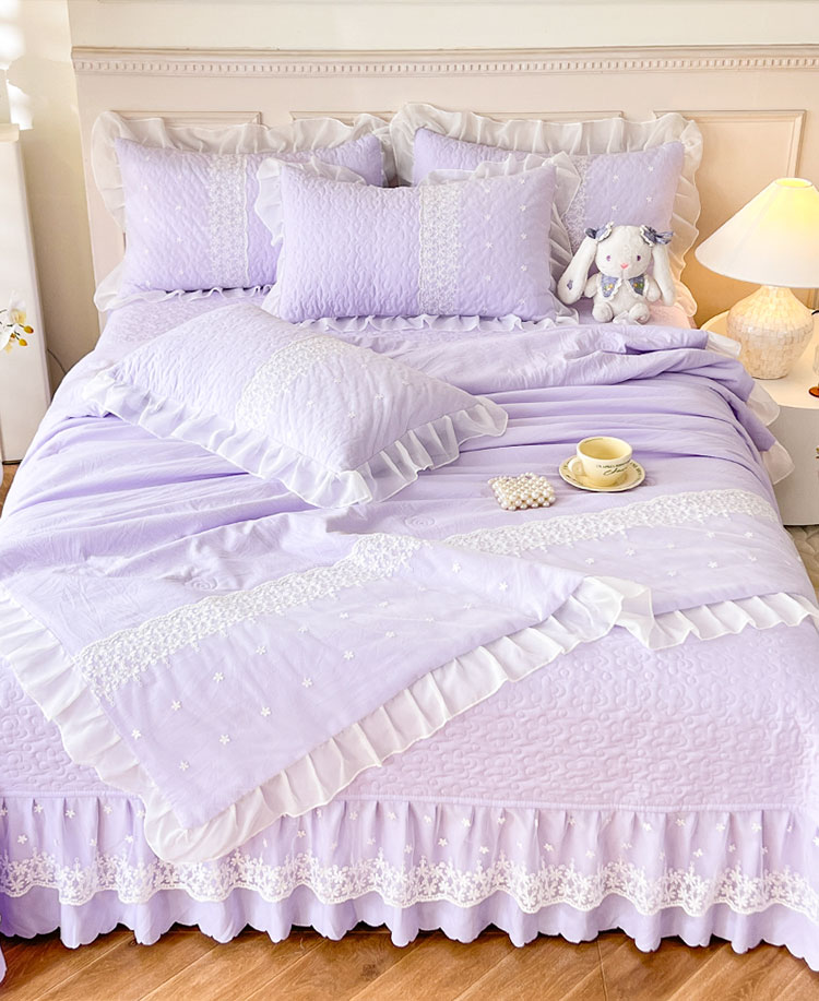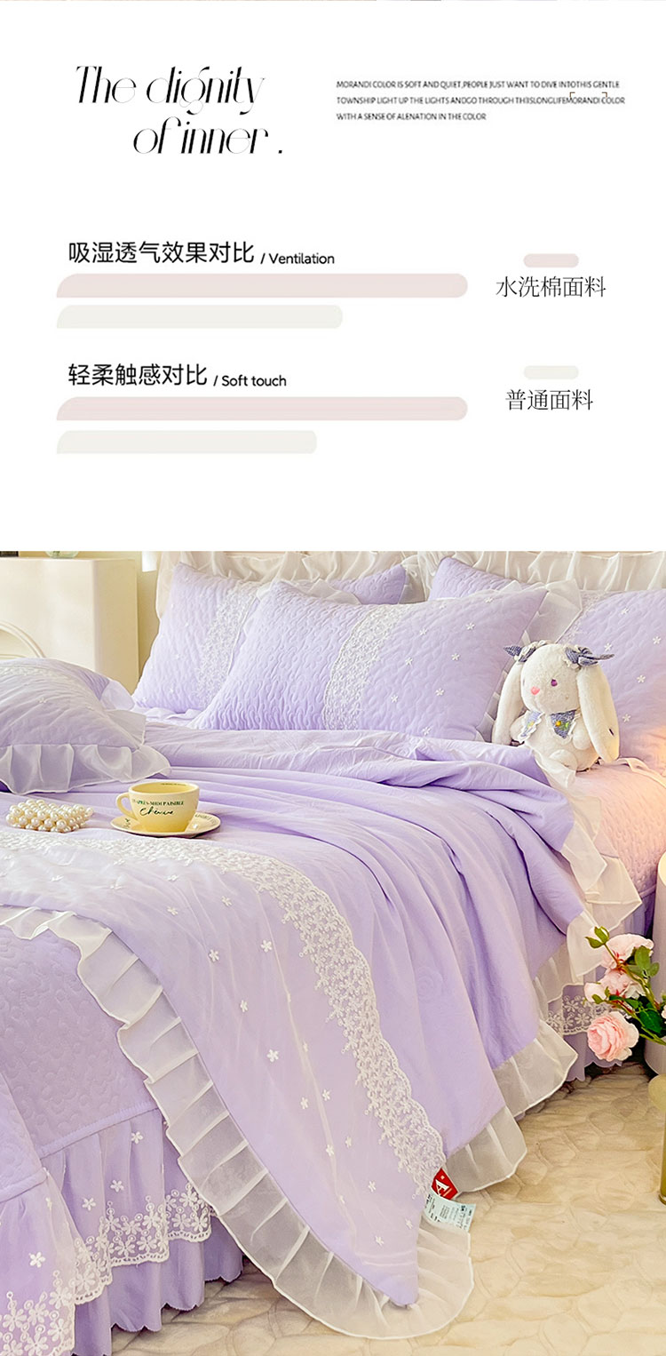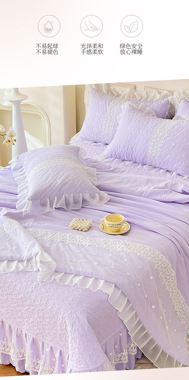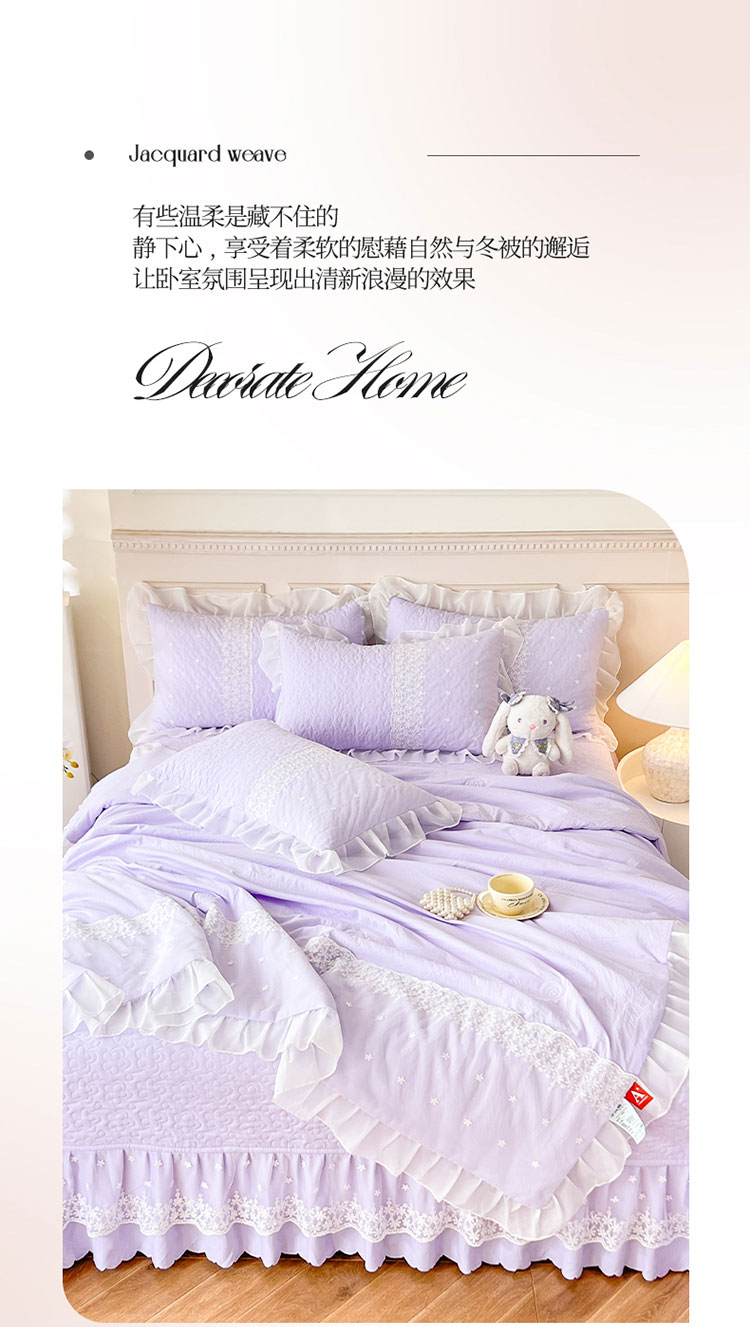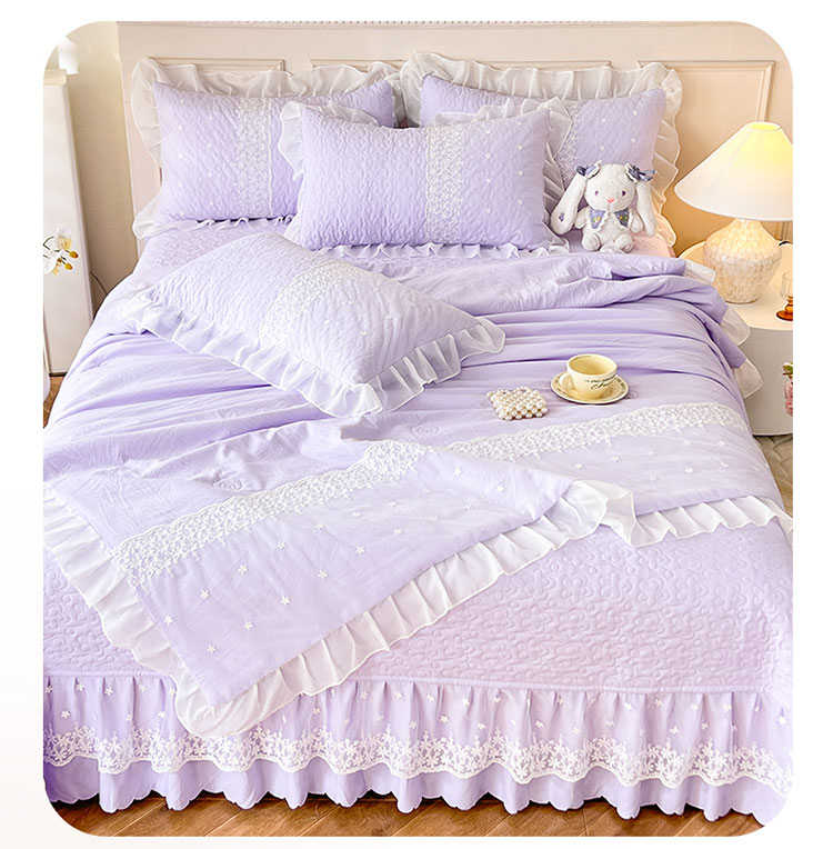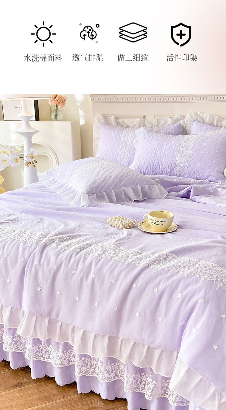 (总)2025韩版少女心法式公主风水洗棉蕾丝花边绣花夏被床盖款四件套泡泡棉小竺棉凉感丝夏被床盖款四件套