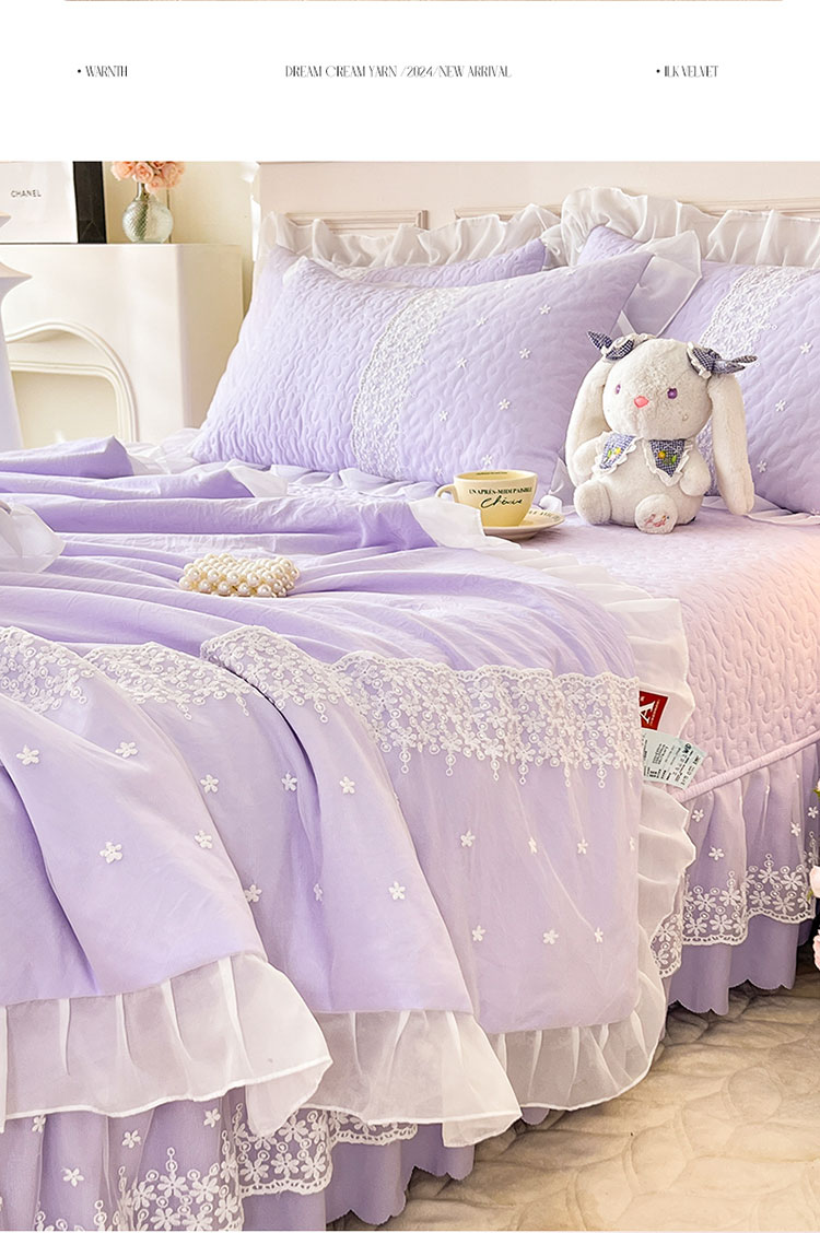 漫布云2025秋冬新款11斤230g全消光牛奶绒夹棉床盖款四件套纯色蕾丝花边刺绣床裙款床盖,蝶恋花-梦幻紫, 蝶恋花-嫩黄, 蝶恋花-新芽绿 ,蝶恋花-婴儿蓝 ,蝶恋花-樱花粉