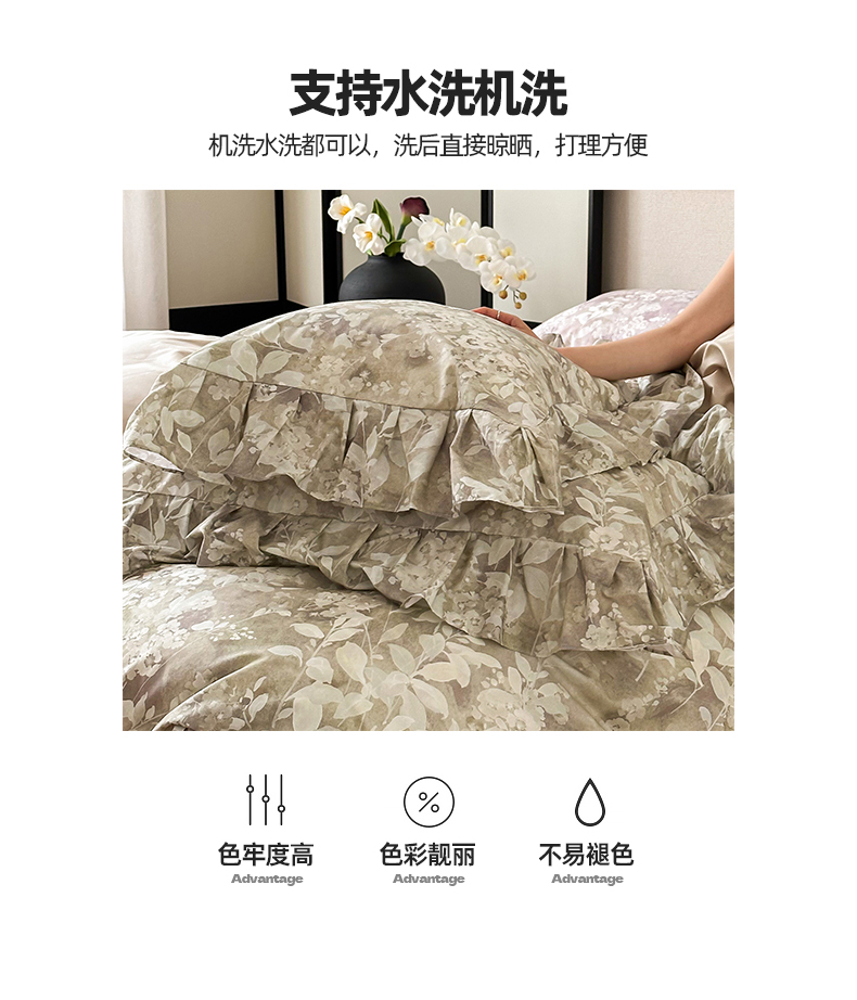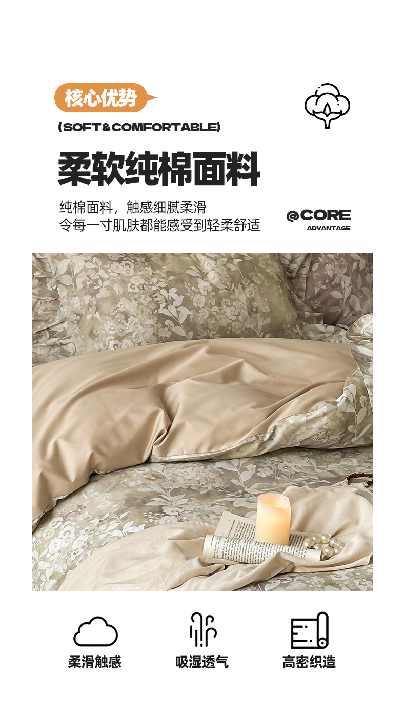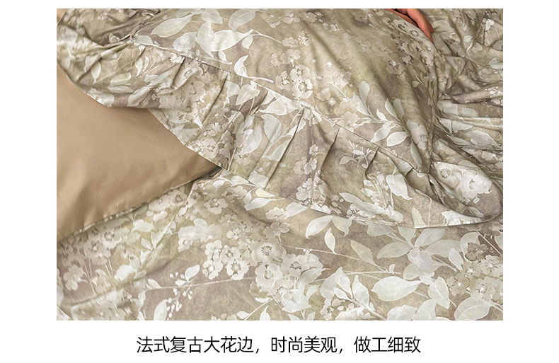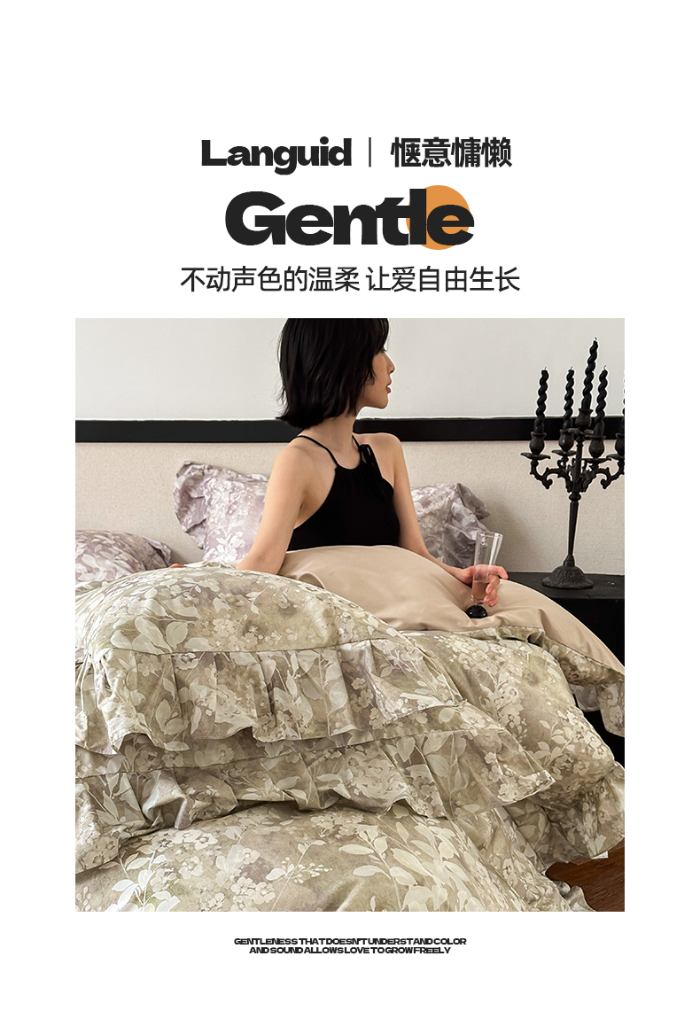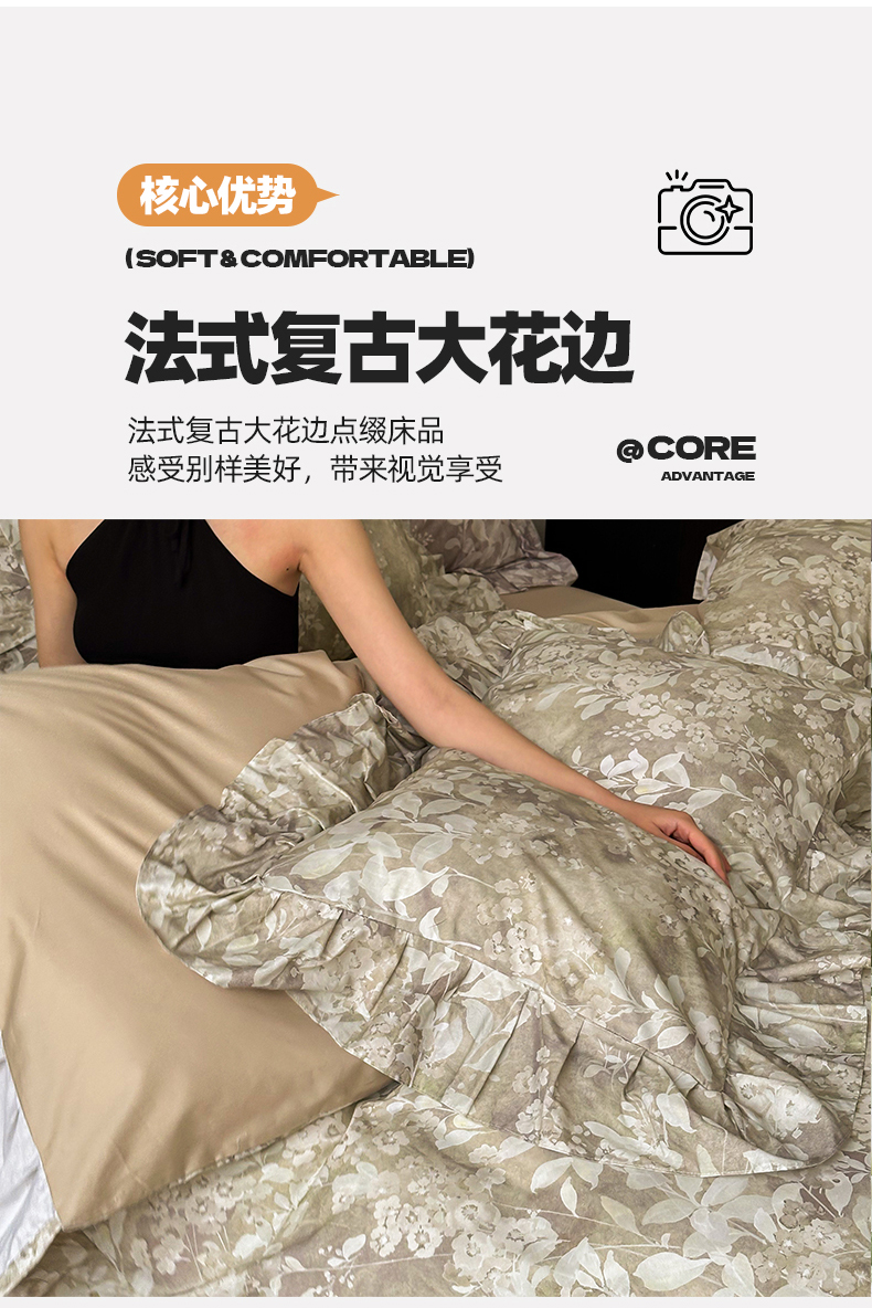 (总)窝米 2025新款数码印花100支长绒棉纯棉工艺花边款四件套-晚意,晚意