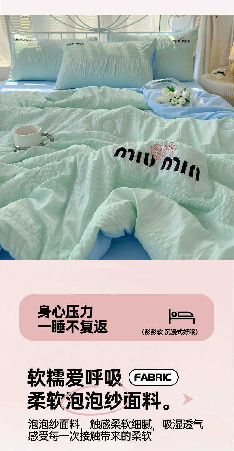 当前位置: 91家纺网 > 商品网购 > 床品套件 > 四件套 > 夏被四件套 > 灰鲸 2025新款泡泡纱miumin四叶草刺绣夏被四件套 miumin四叶草-薄荷绿拼天空蓝