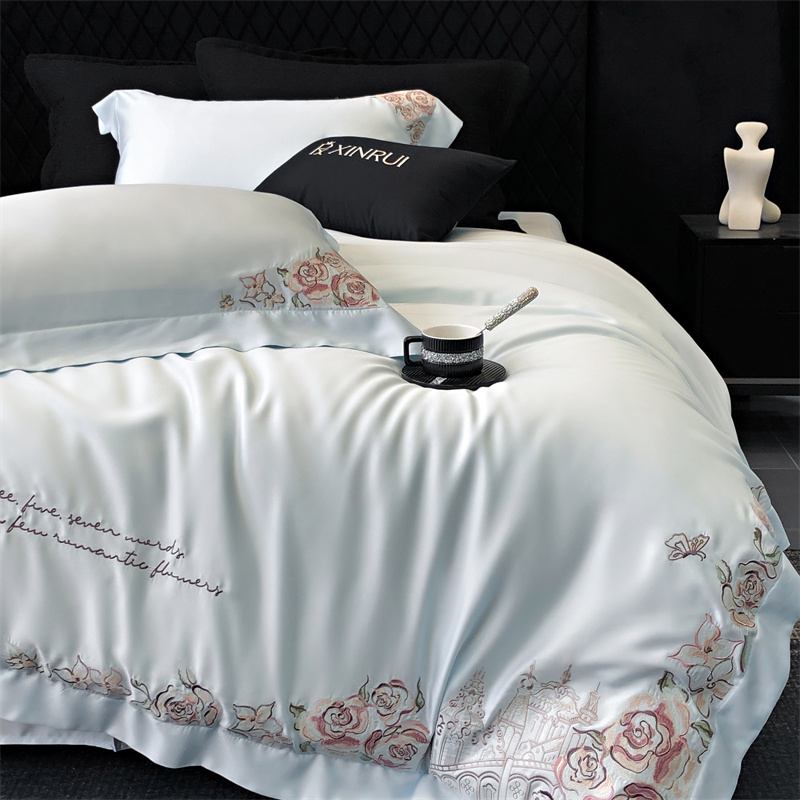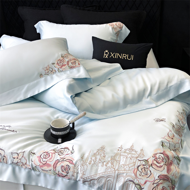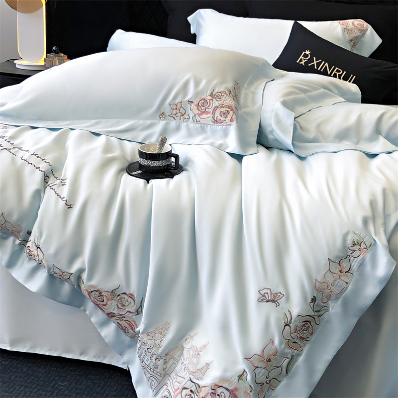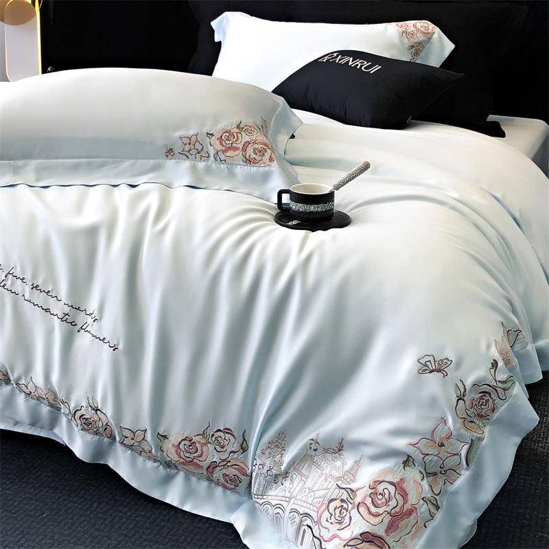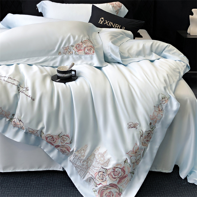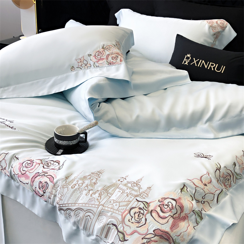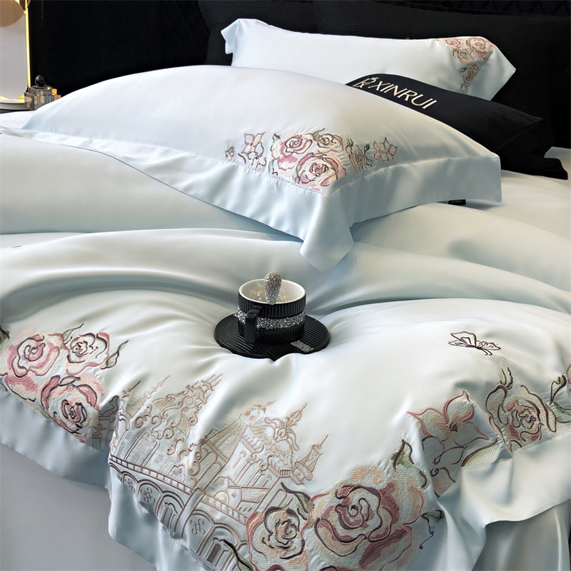 当前位置: 91家纺网 > 商品网购 > 床品套件 > 四件套 > 莱赛尔四件套 > 馨蕊家居 2024新款80s兰精天丝刺绣四件套-洛克庄园 天丝洛克庄园-北卡蓝