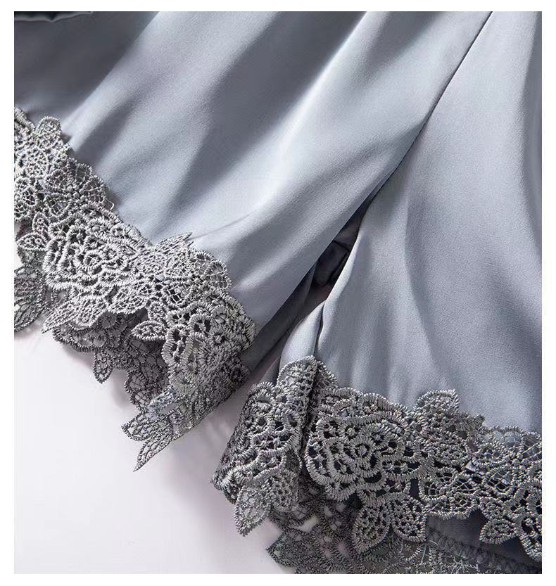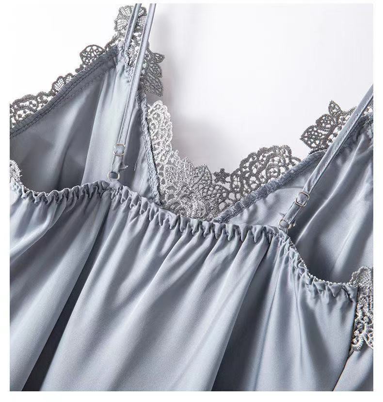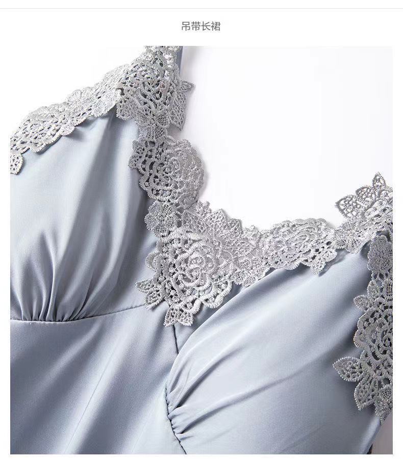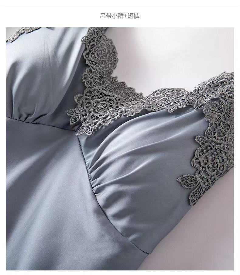 商品名称:(总)2024新款睡衣睡裙女夏季冰丝薄款性感带胸垫吊带短裤长裤春夏家居服软蕾丝五件套包邮