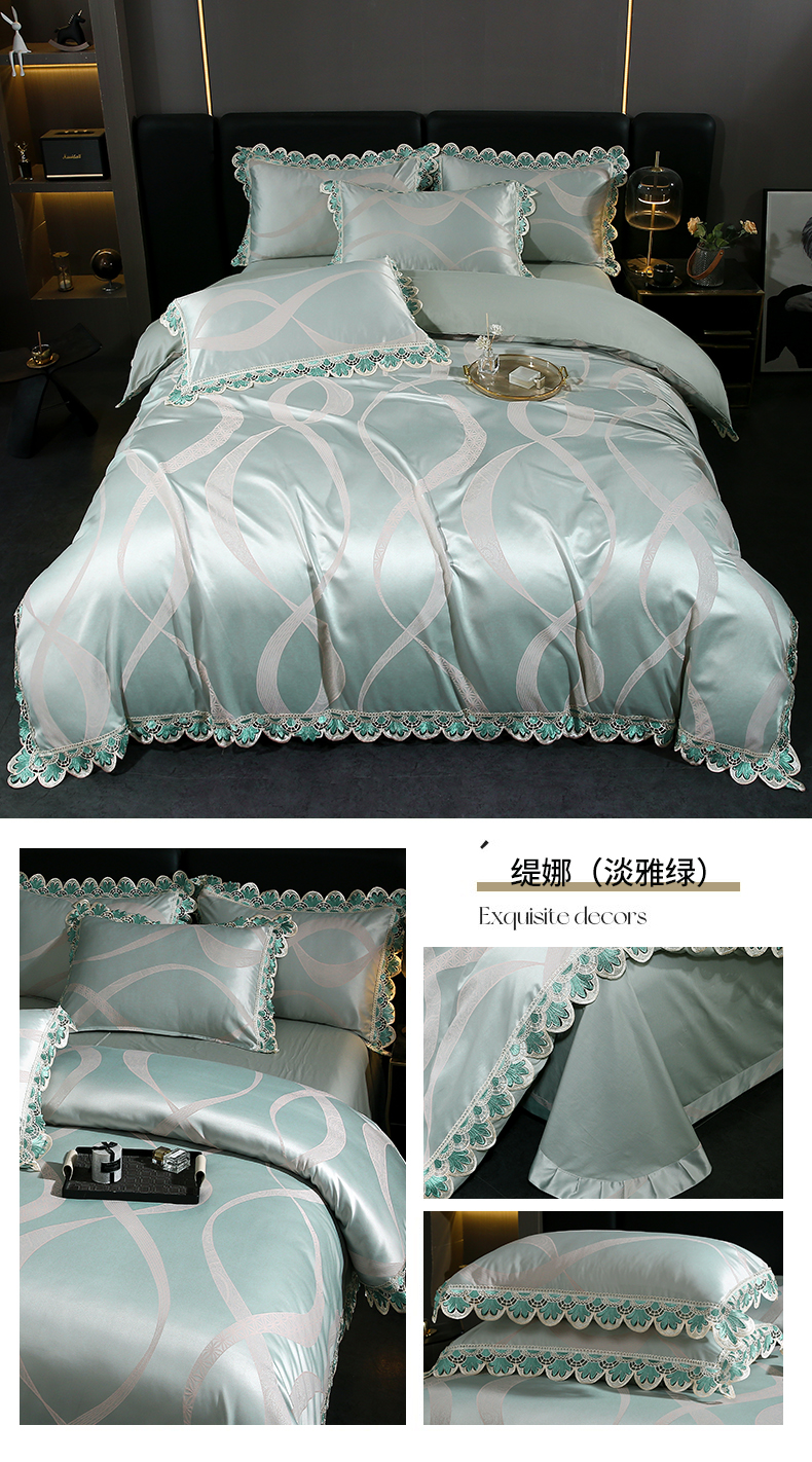 提花大世界 2025新款全棉贡缎水溶天丝提花四件套 缇娜(淡雅绿)