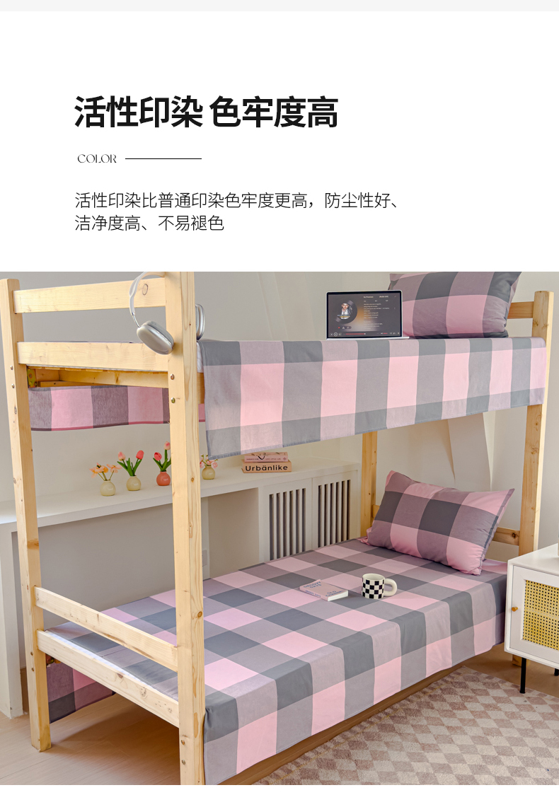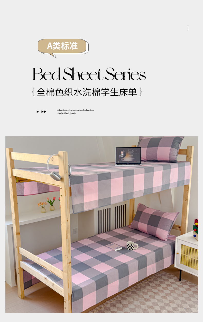 • 91家纺网 家纺一手货源 找家纺 金丝鸟家纺 2024新款A类全棉色织水洗棉单床单系列(学生床) 粉大格
