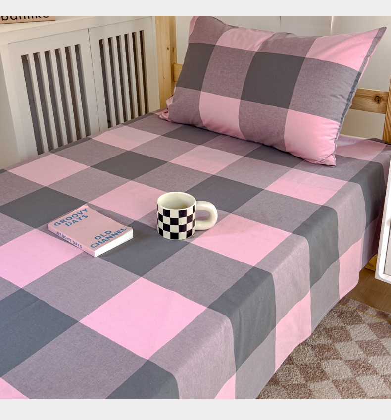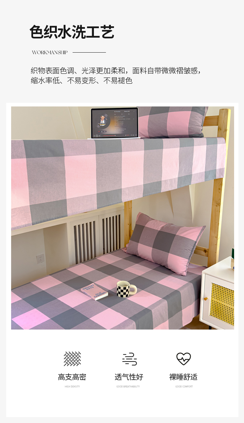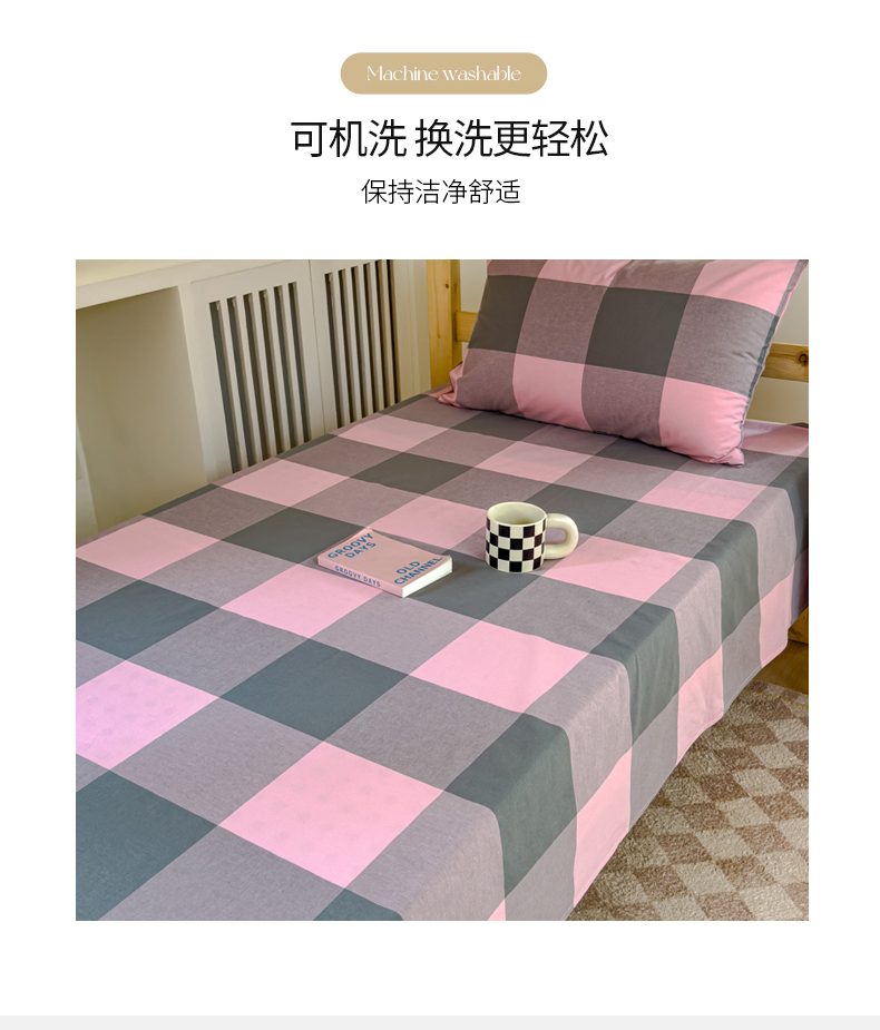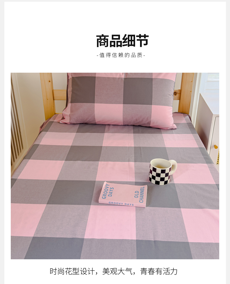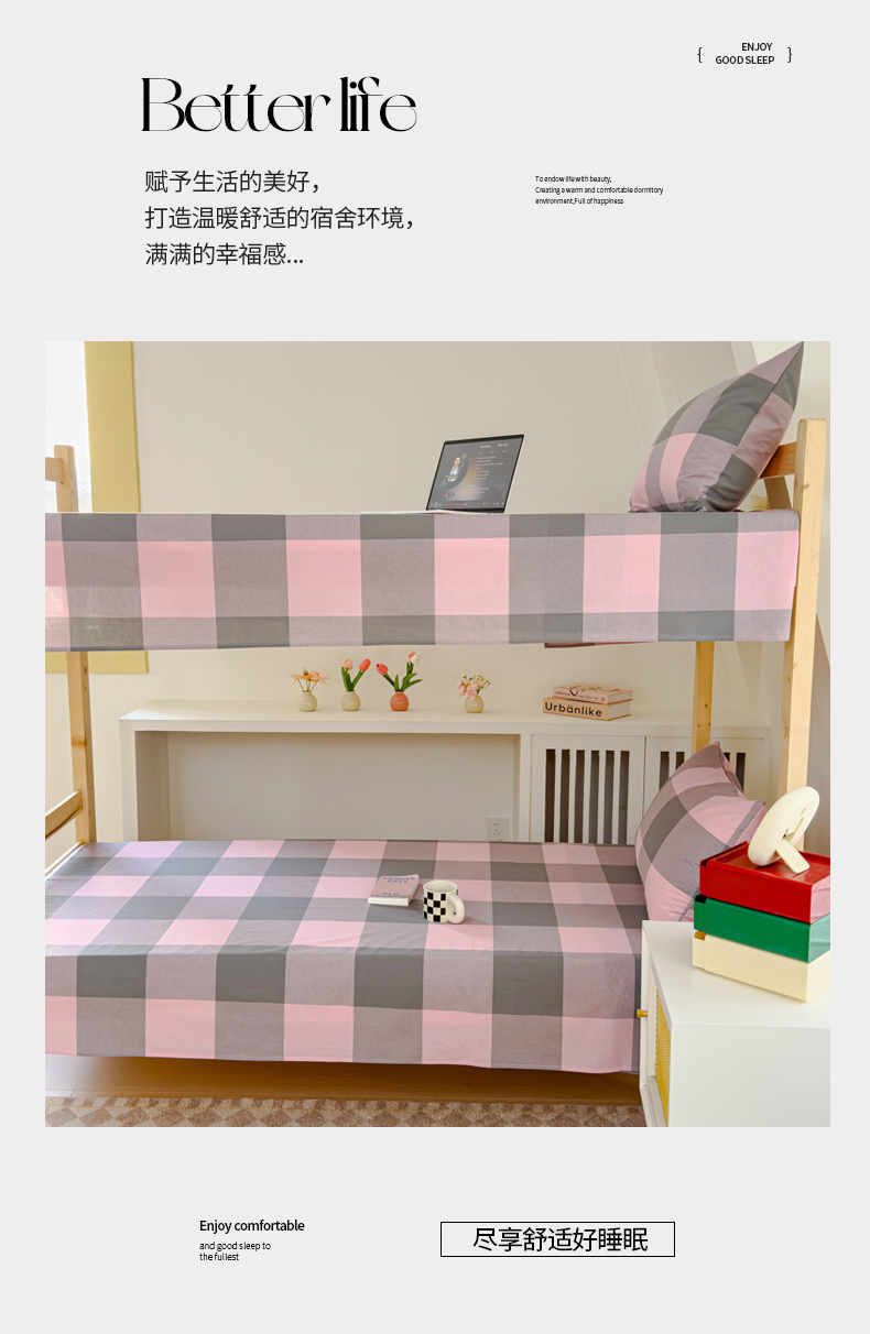 金丝鸟家纺 2024新款A类全棉色织水洗棉单床单系列(学生床) 粉大格