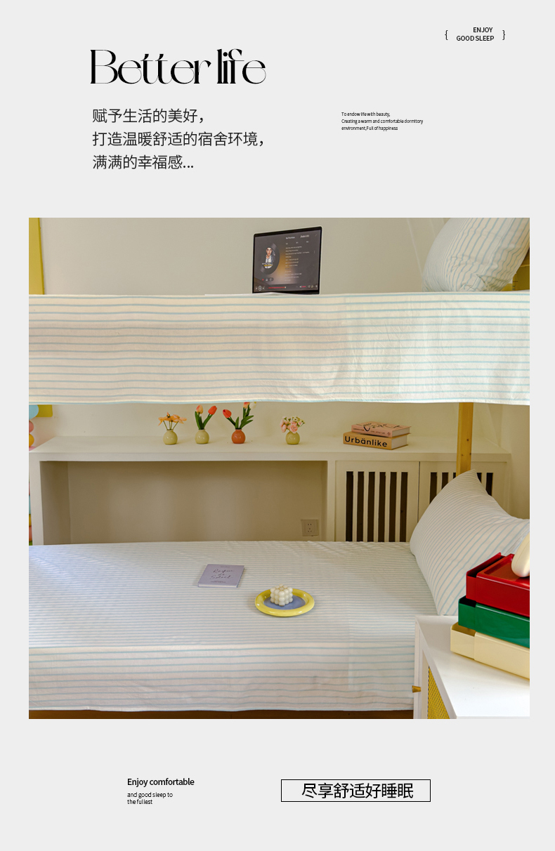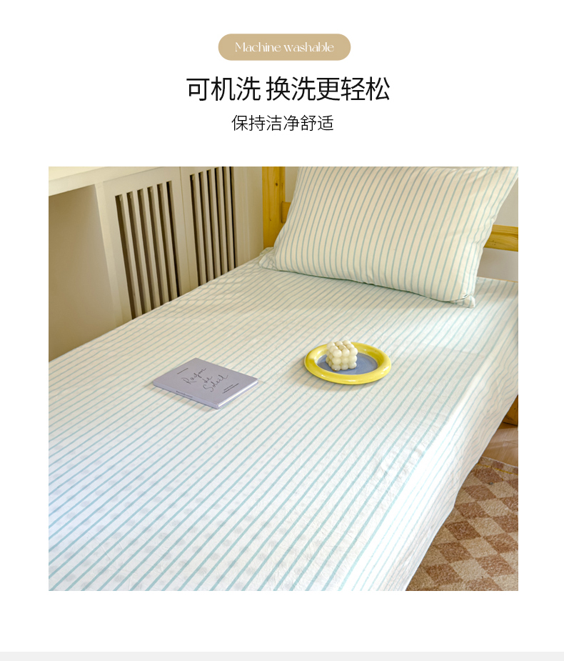 金丝鸟家纺 2024新款A类全棉色织水洗棉单床单系列(学生床) 浅绿中条