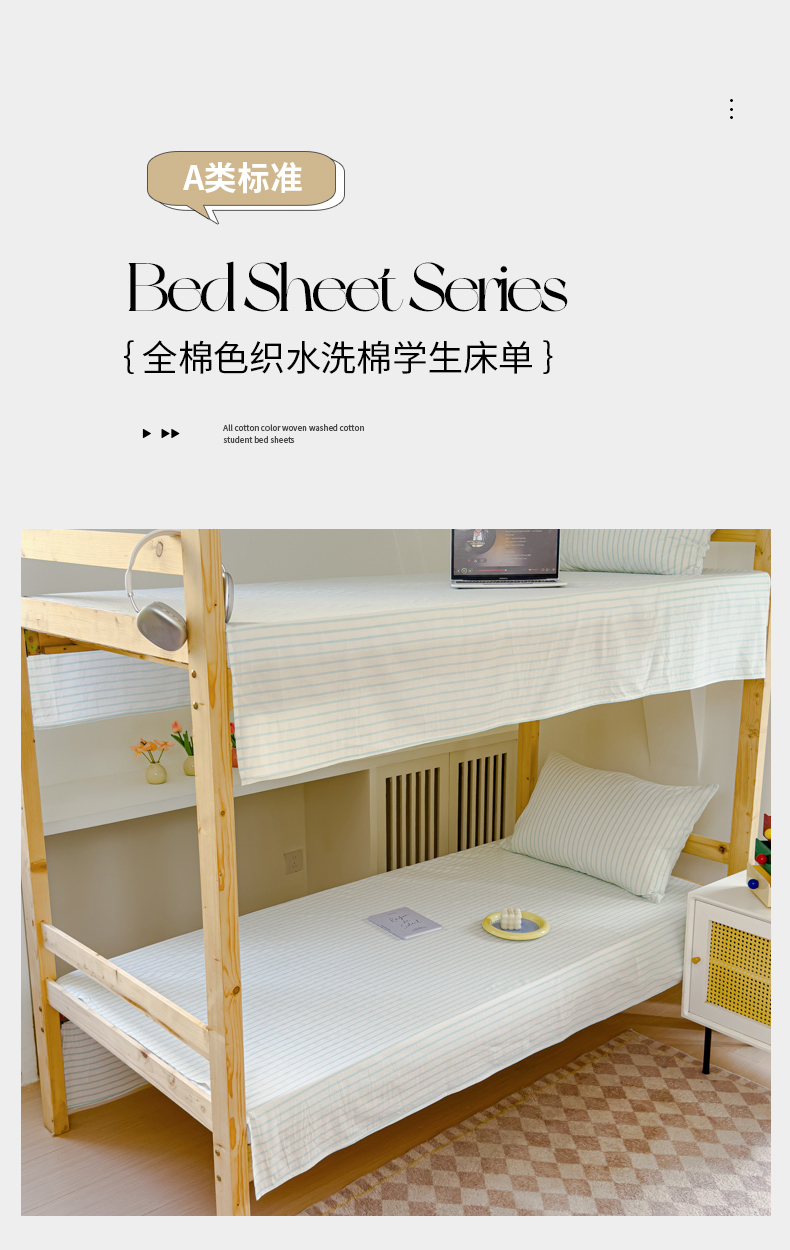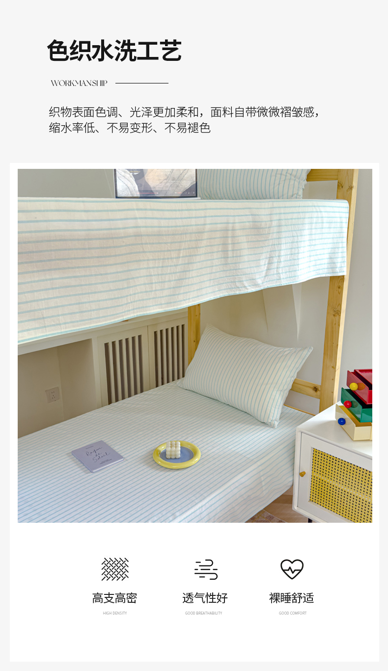 • 91家纺网 家纺一手货源 找家纺 金丝鸟家纺 2024新款A类全棉色织水洗棉单床单系列(学生床) 浅绿中条