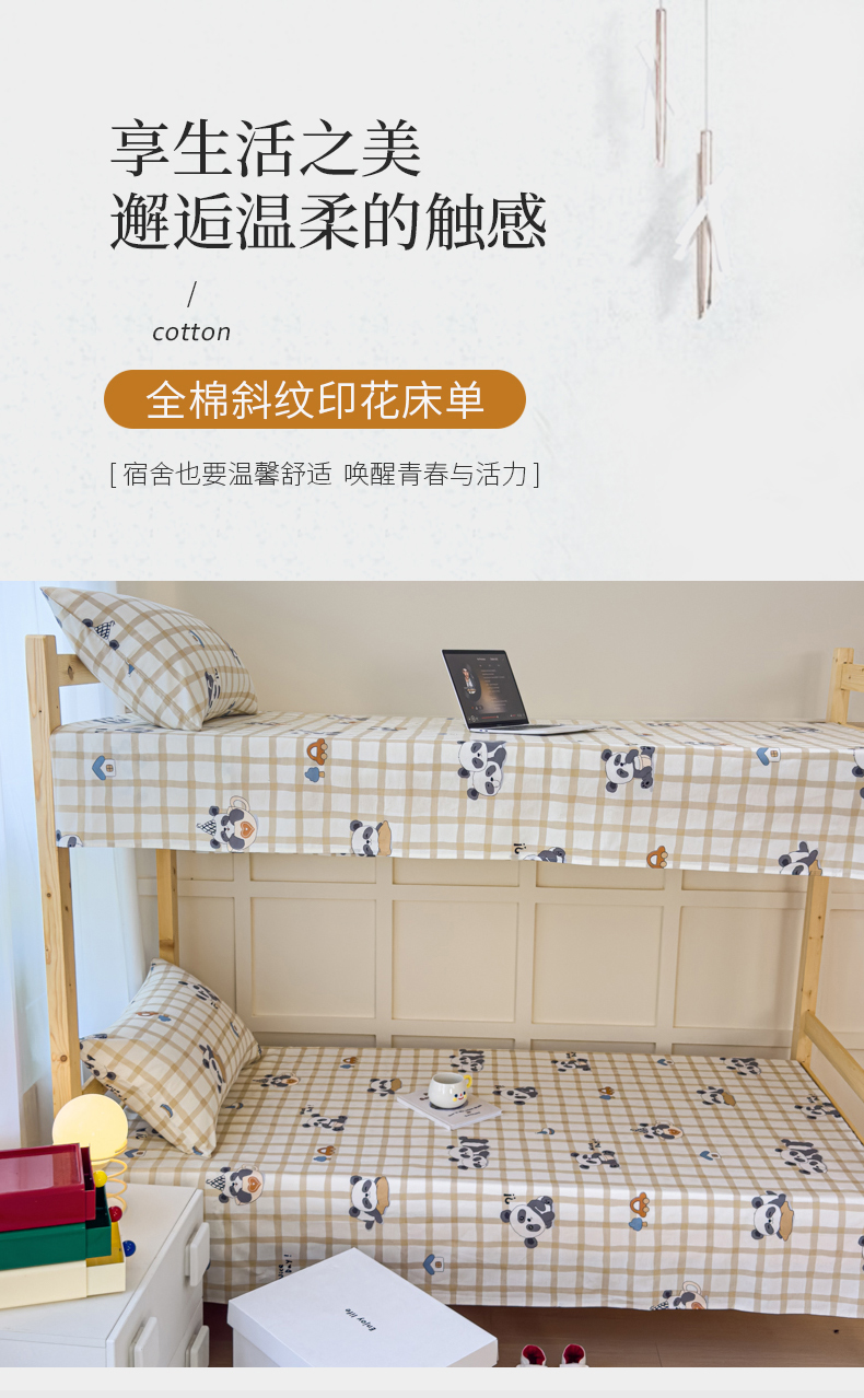 金丝鸟家纺 2024新款全棉小清新印花单床单系列(学生床) 格子米兜