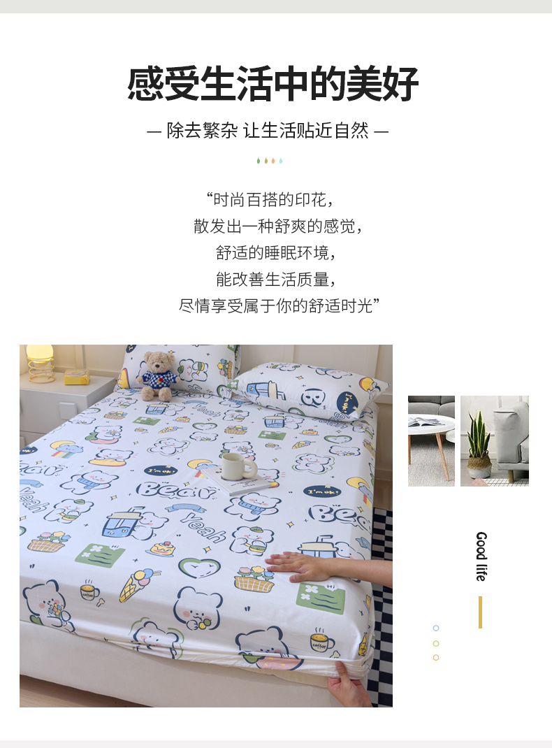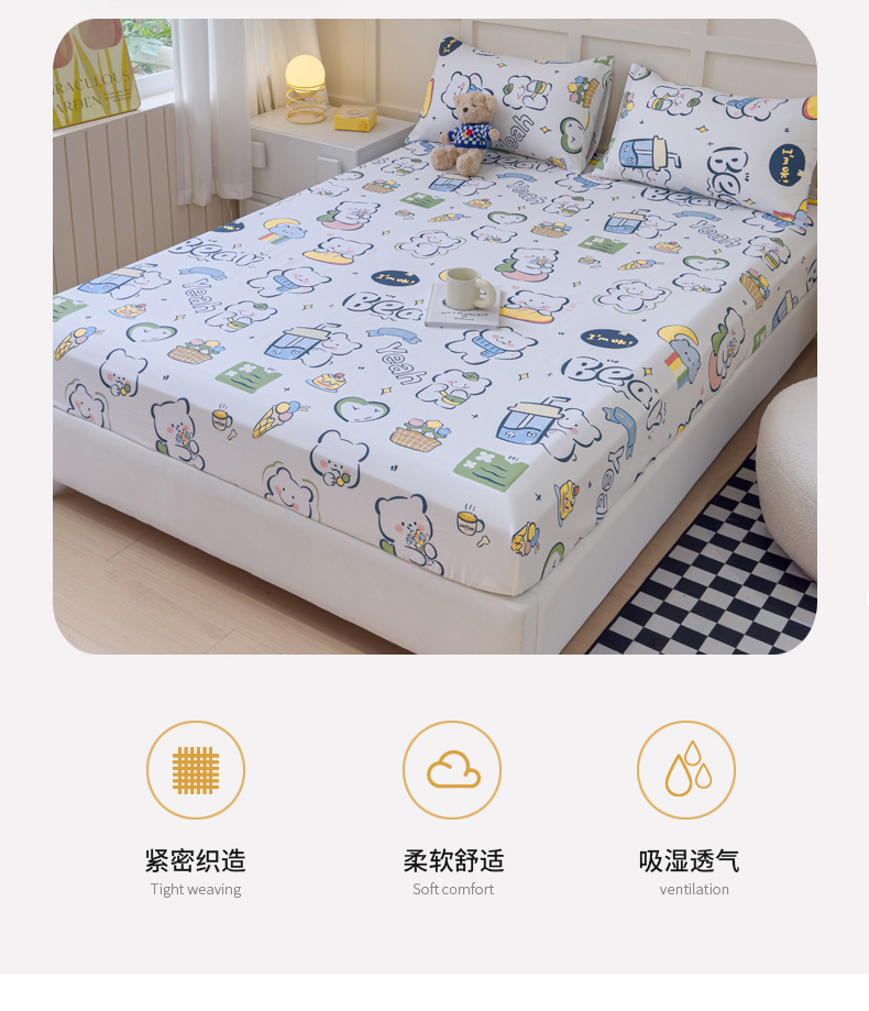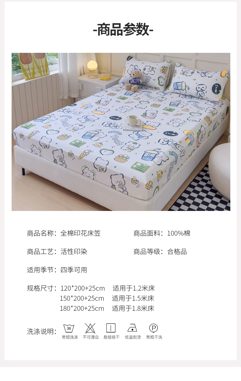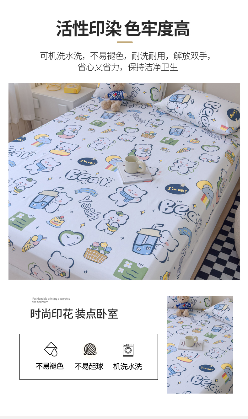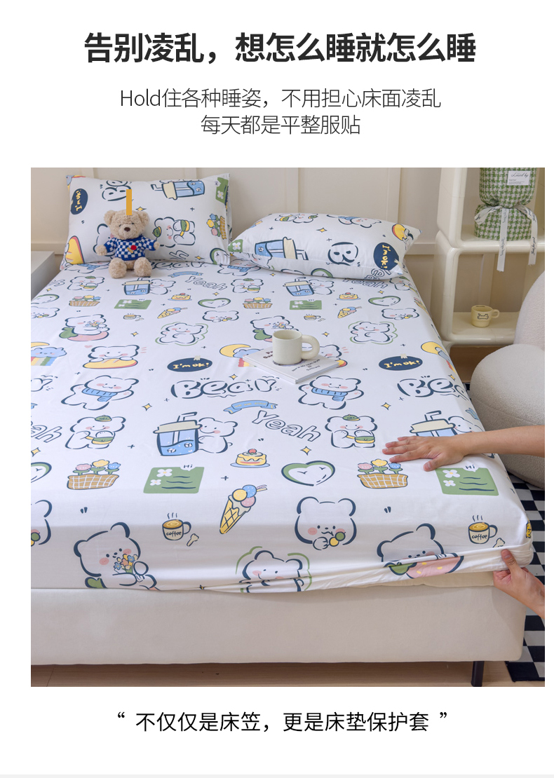 • 91家纺网 家纺一手货源 找家纺 金丝鸟家纺 2024新款全棉小清新印花单床笠系列 快乐小熊