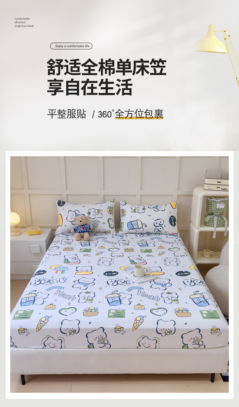 金丝鸟家纺 2024新款全棉小清新印花单床笠系列 快乐小熊