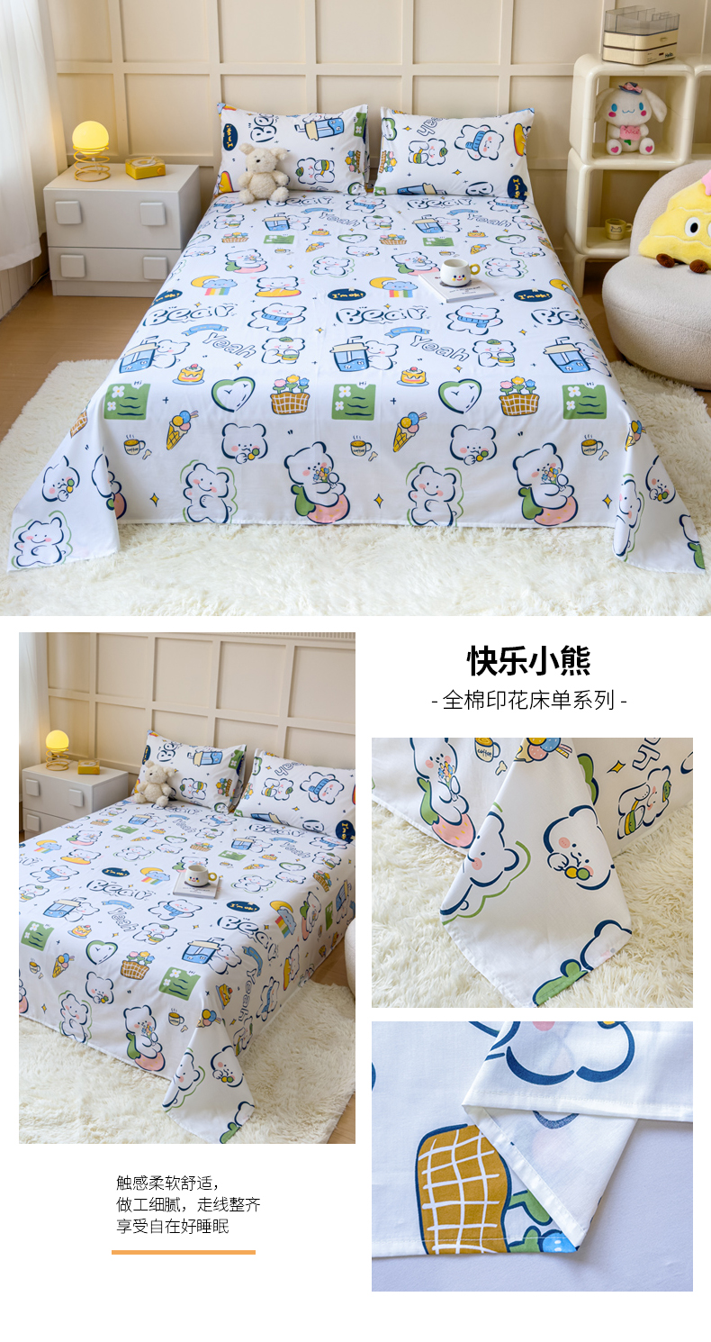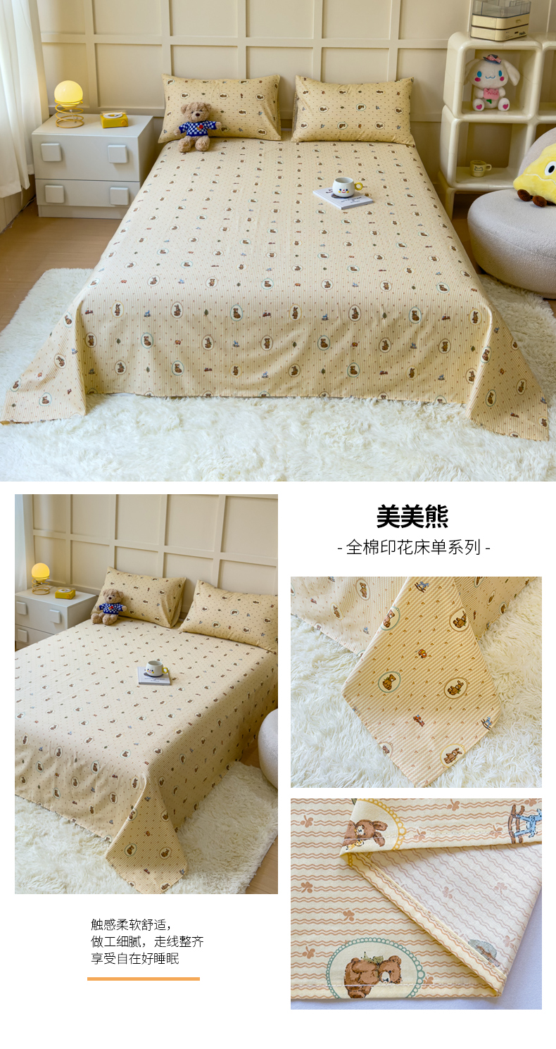 商品名称:(总)金丝鸟家纺 2024新款全棉小清新印花单床单系列