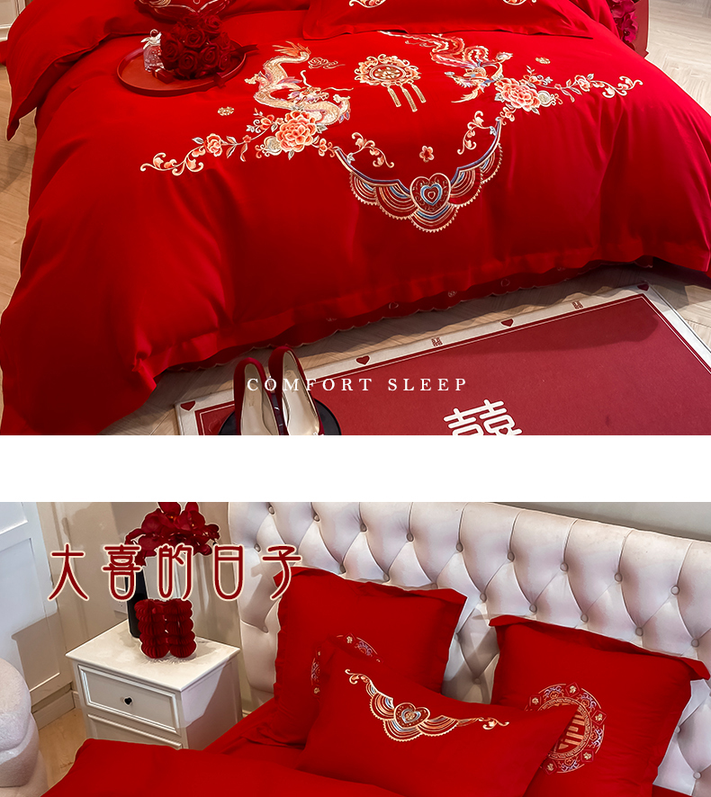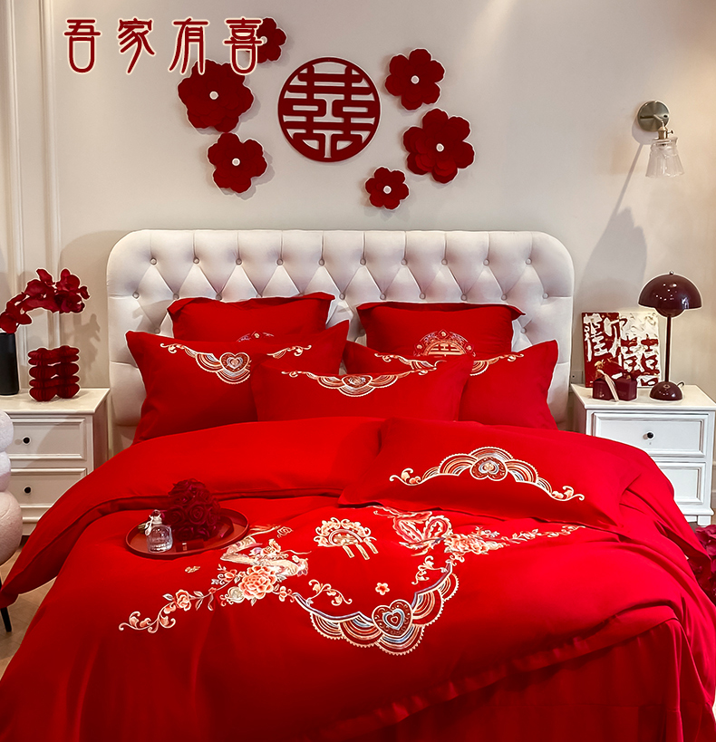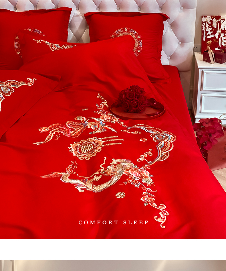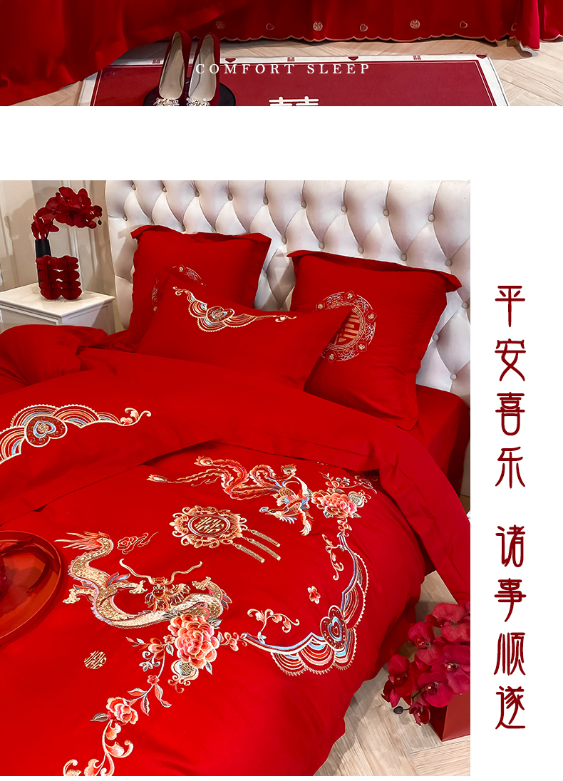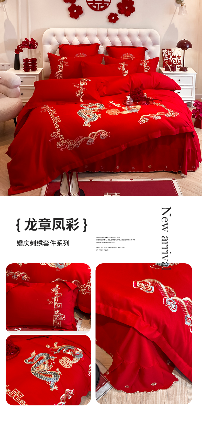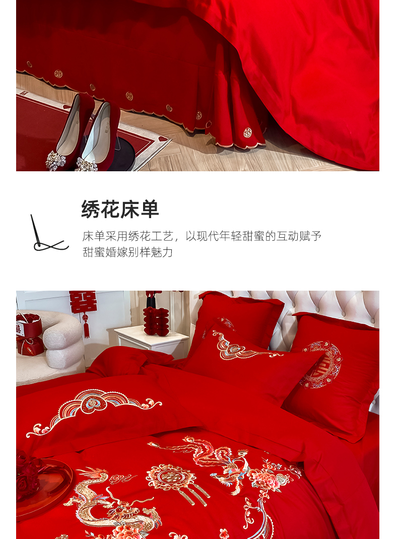 当前位置: 91家纺网 > 商品网购 > 床品套件 > 四件套 > 婚庆四件套 > 玉雅家纺 2025新款玉雅时尚磨毛刺绣床单款系列婚庆套件 床单绣花款-喜乐龙凤